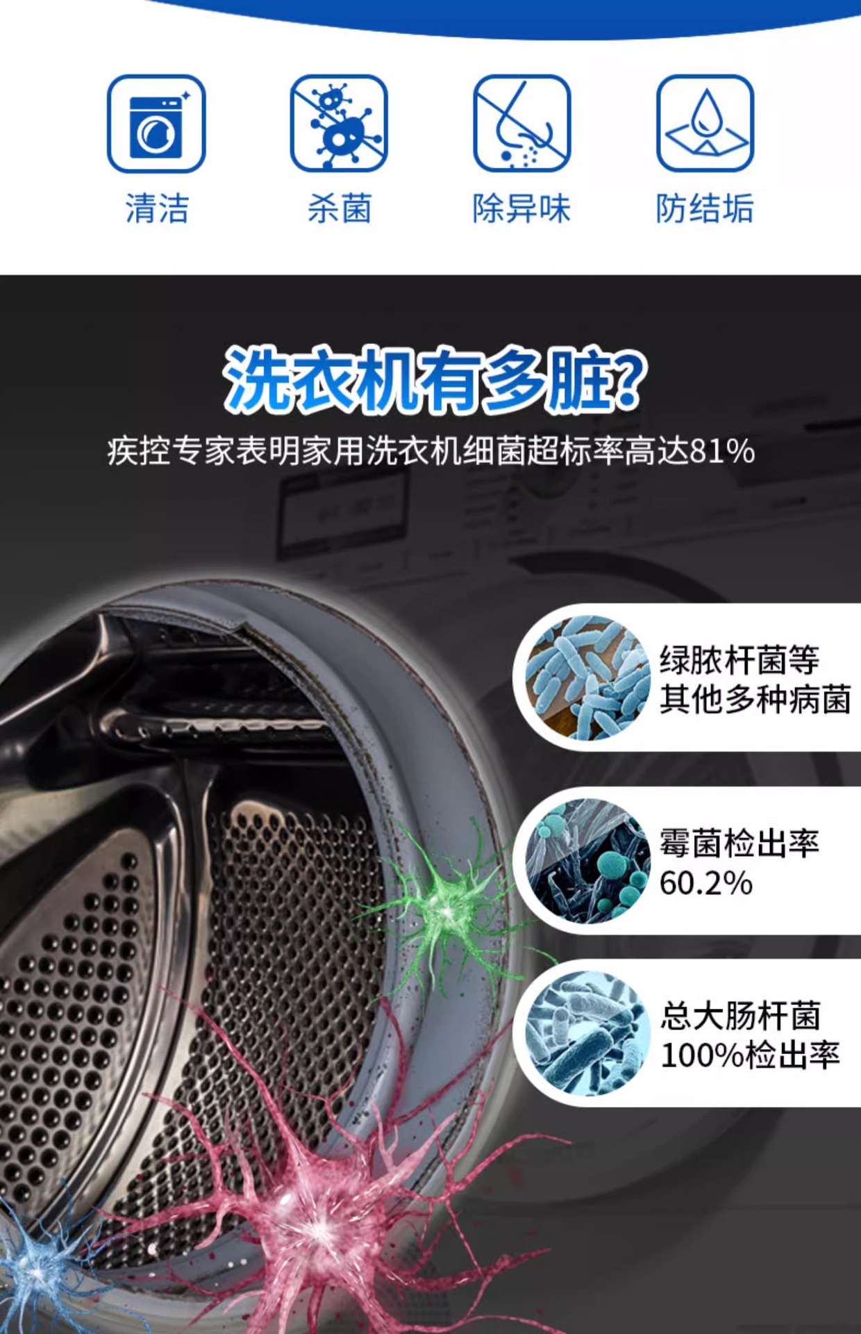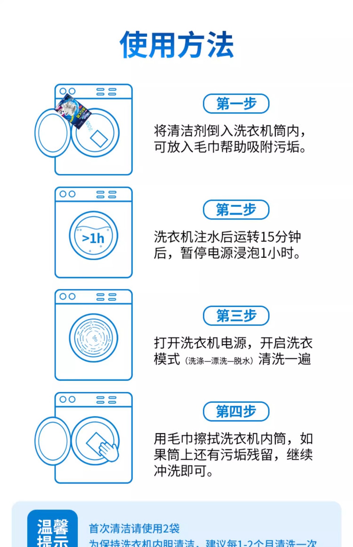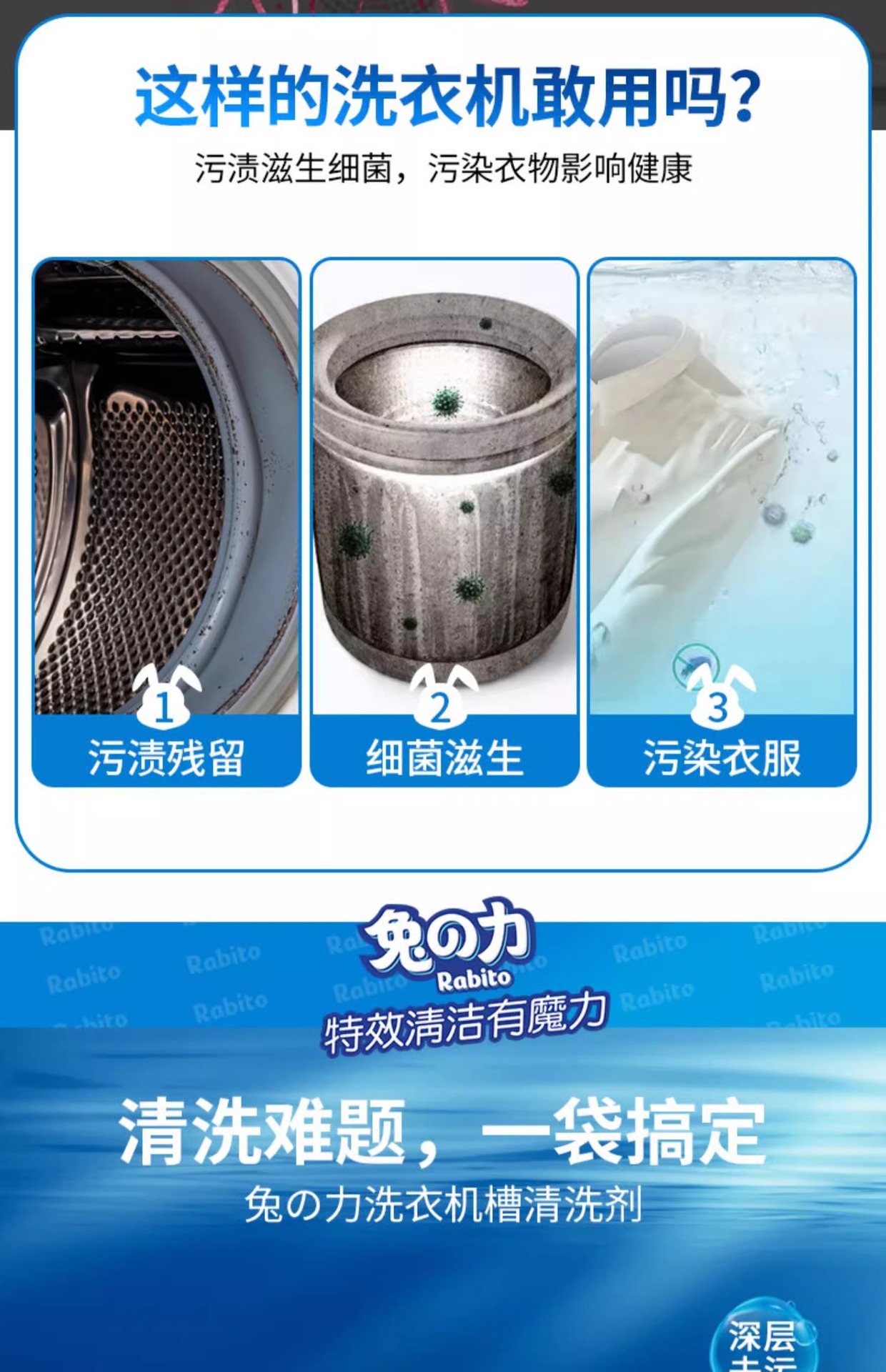 토끼의 세탁기 클리너, 살균, 냄새 제거, 스케일 제거, 세탁기 탱크, 분해 및 세척 특수 세척 용액 250g