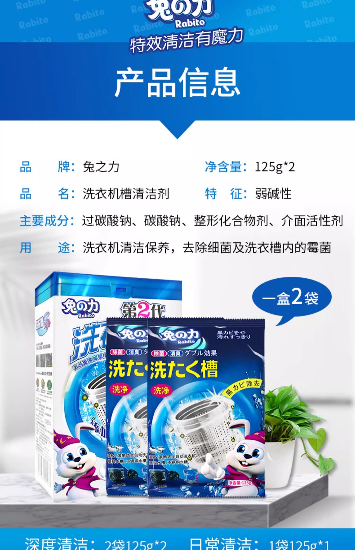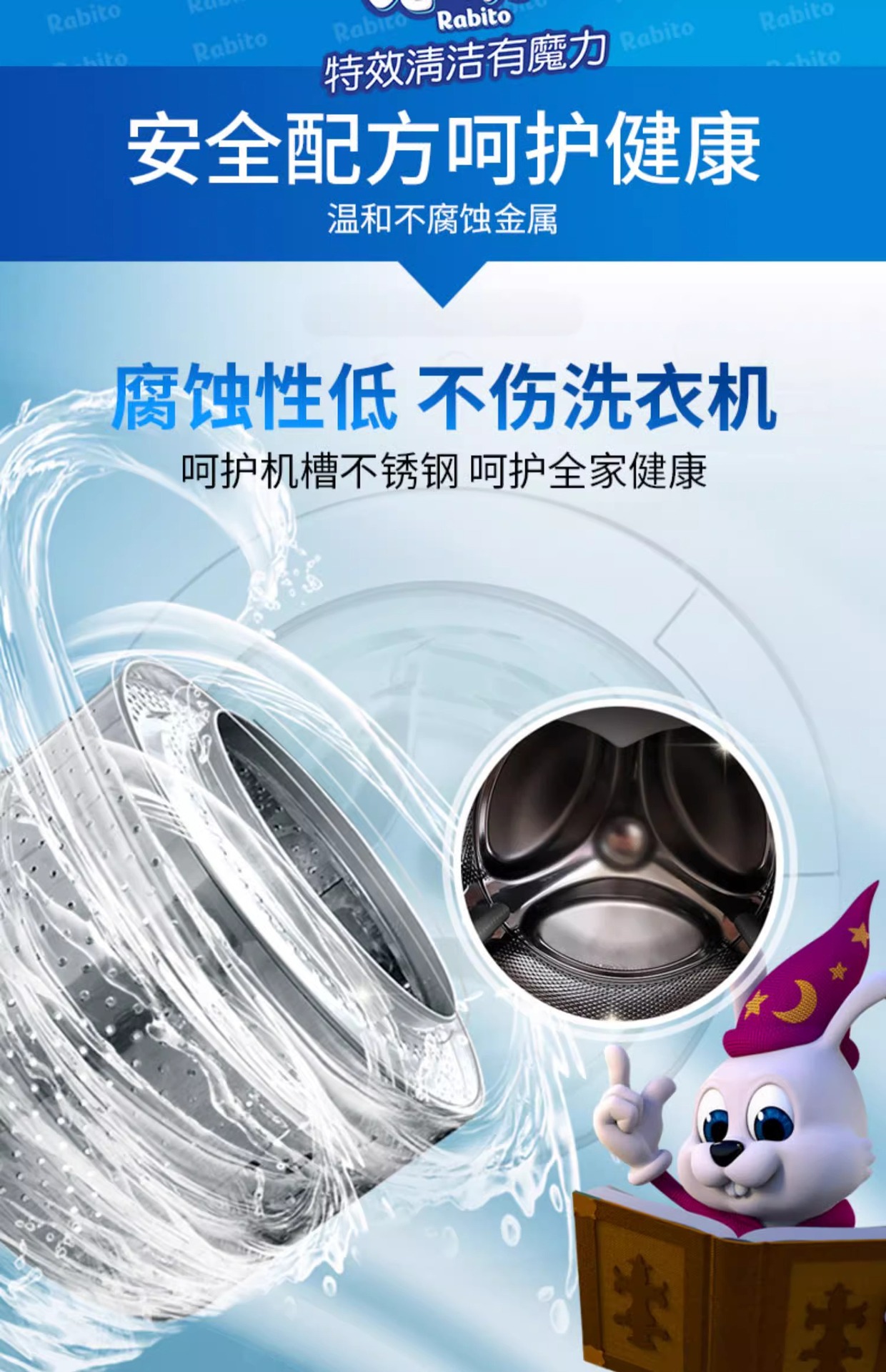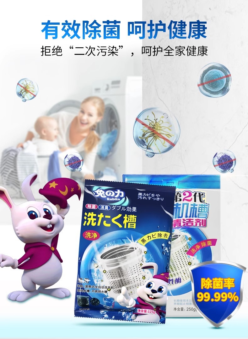 토끼의 세탁기 클리너, 살균, 냄새 제거, 스케일 제거, 세탁기 탱크, 분해 및 세척 특수 세척 용액 250g스토어 가기
