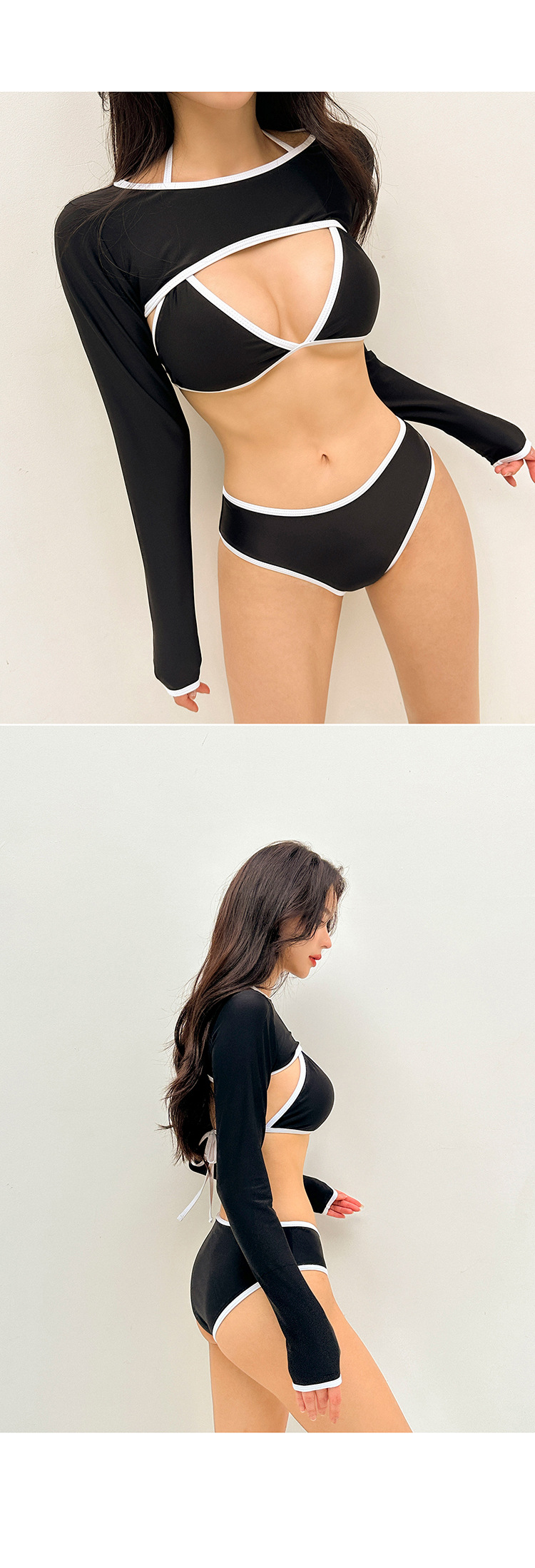 공장 직접 비키니 3 피스 세트 긴 소매 섹시한 백리스 레이스 업 핫 소녀 작은 가슴 해변 휴가 한국식 수영복스토어 가기