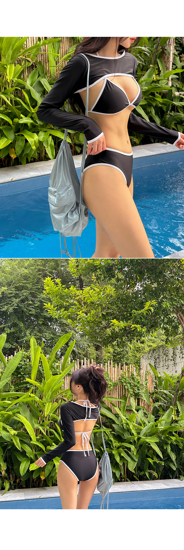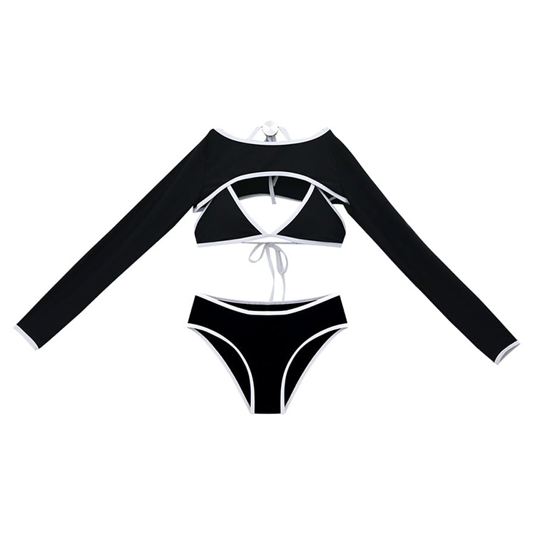 공장 직접 비키니 3 피스 세트 긴 소매 섹시한 백리스 레이스 업 핫 소녀 작은 가슴 해변 휴가 한국식 수영복