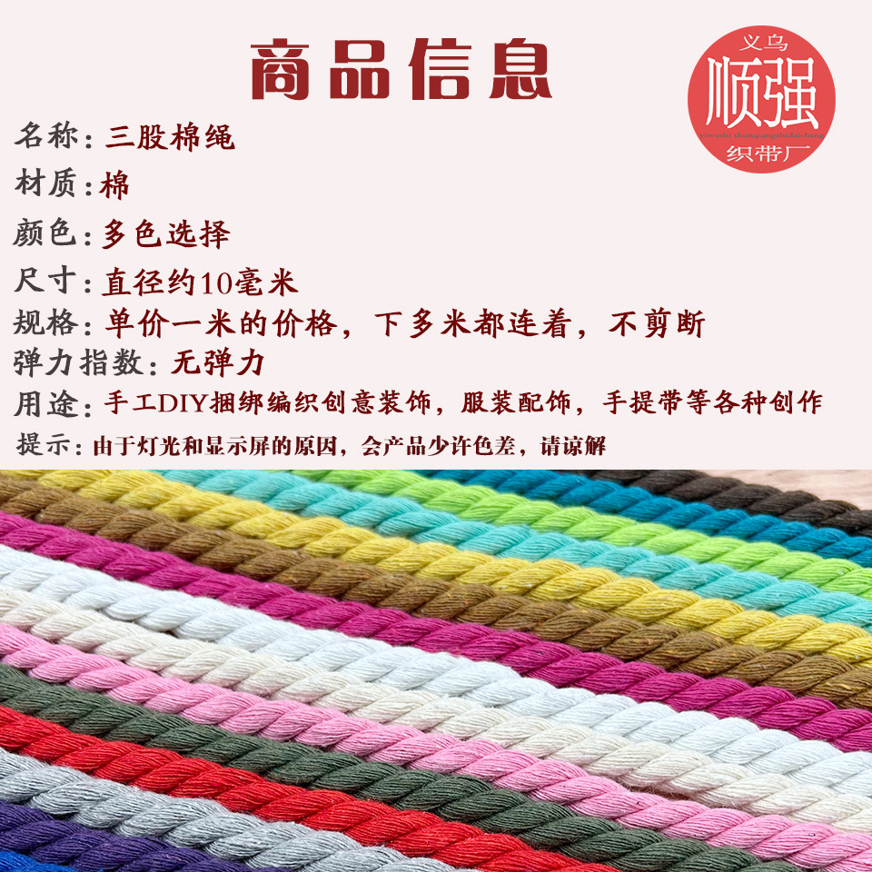 재고 다채로운 면 로프 10mm 3 가닥면 로프 선물 상자 휴대용 로프 트위스트 로프 수제 DIY 꼰 로프스토어 가기
