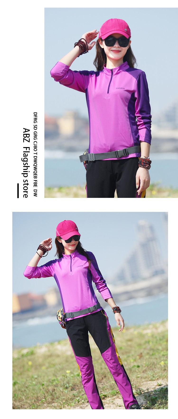한국 스타일의 빠른 건조 새로운 여성의 긴팔 야외 스웨트 셔츠 슬림 핏 통기성 등산 달리기 빠른 건조 의류 플러스 사이즈 여름스토어 가기