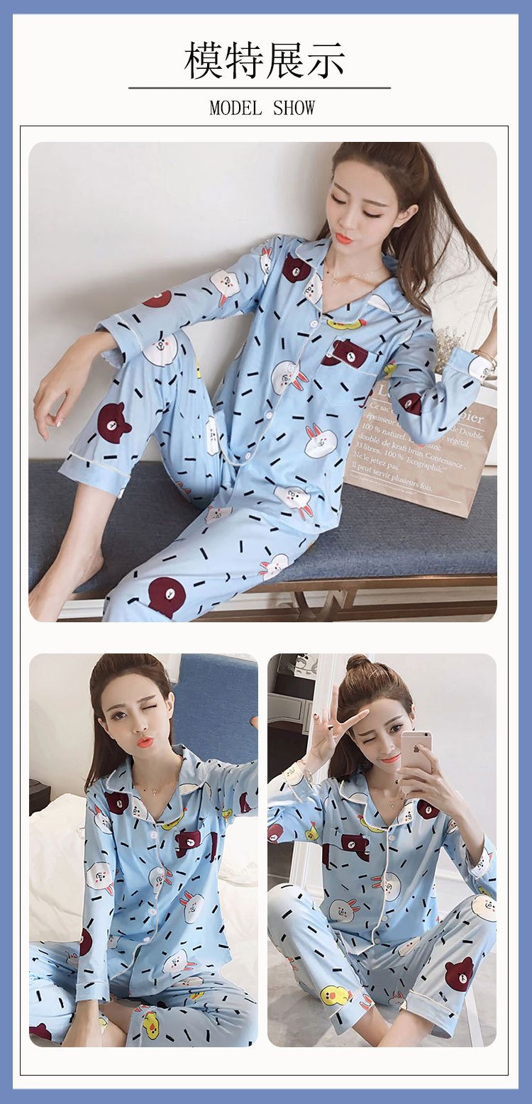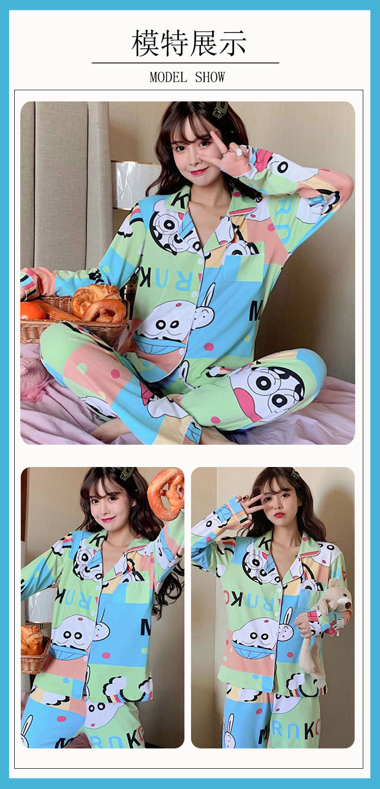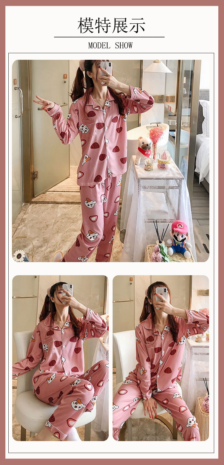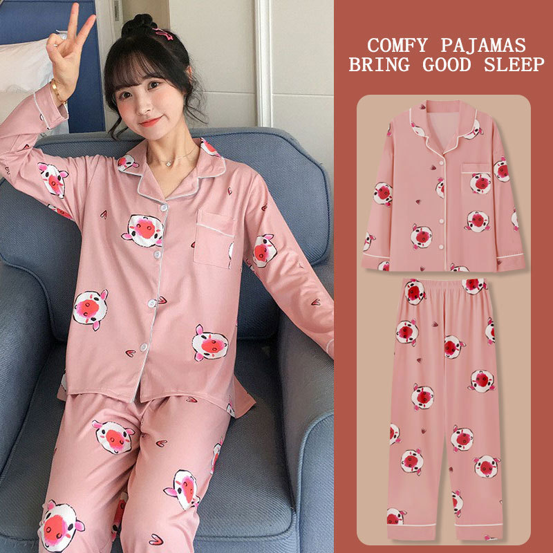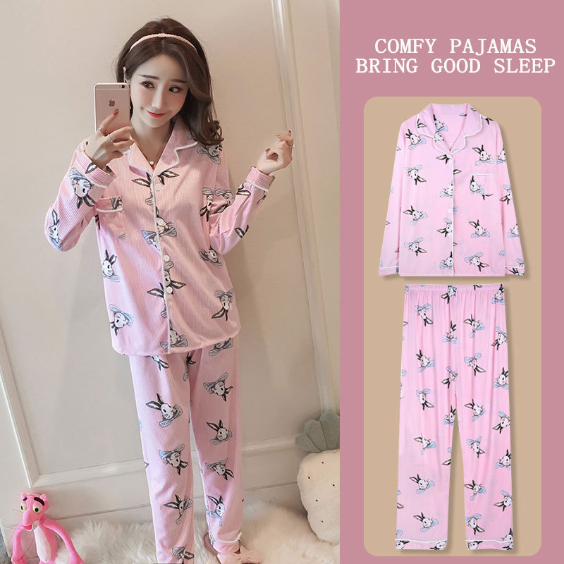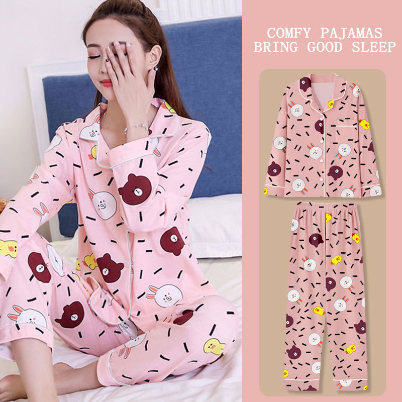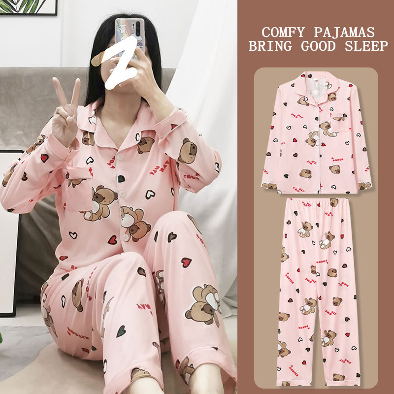 봄과 가을 잠옷 여성의 둥근 목 풀오버 학생 소녀 스타일 긴 소매 만화 귀여운 홈 착용 투피스 세트스토어 가기
