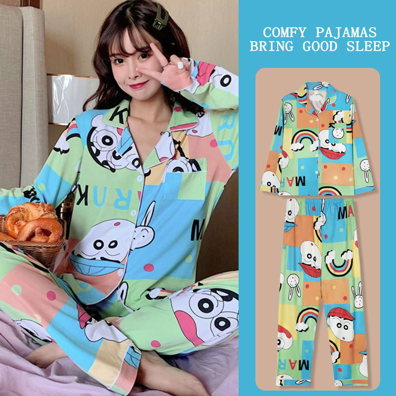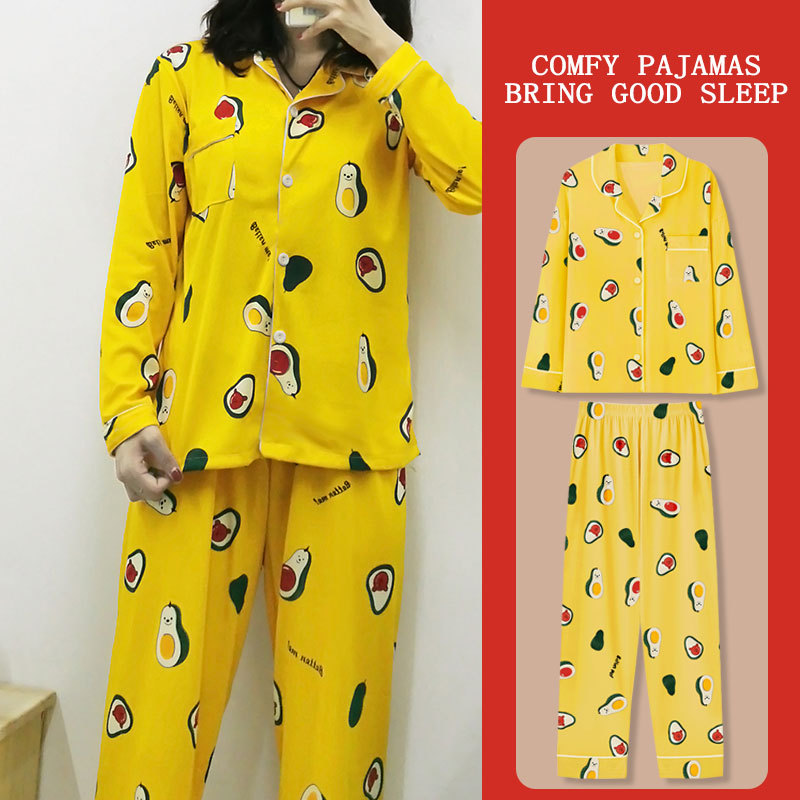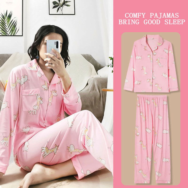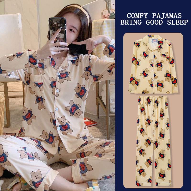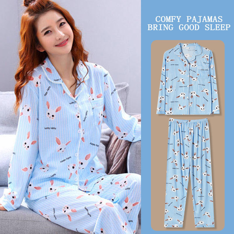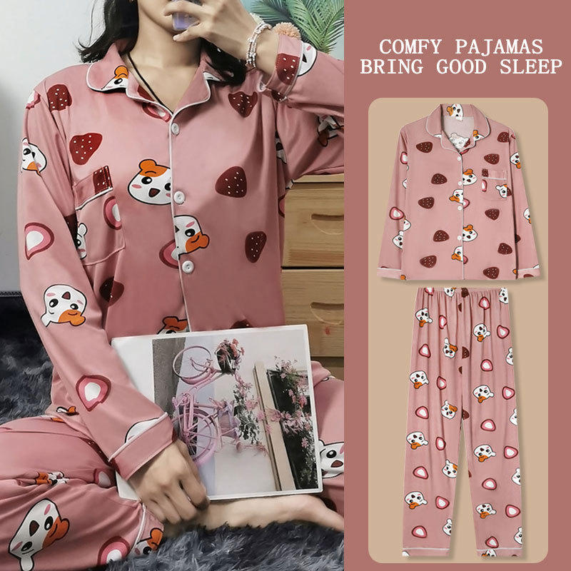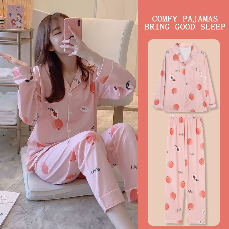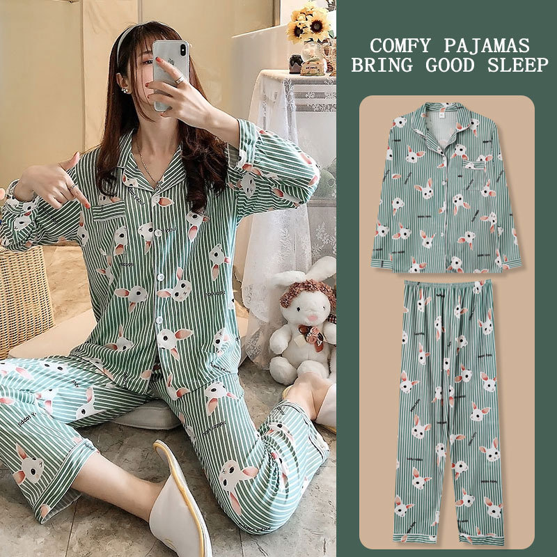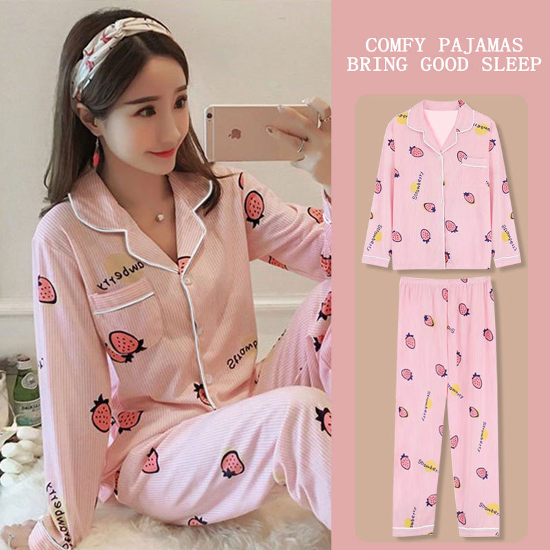 봄과 가을 잠옷 여성의 둥근 목 풀오버 학생 소녀 스타일 긴 소매 만화 귀여운 홈 착용 투피스 세트스토어 가기