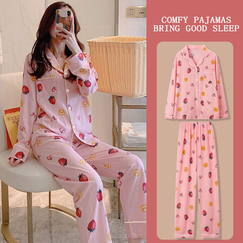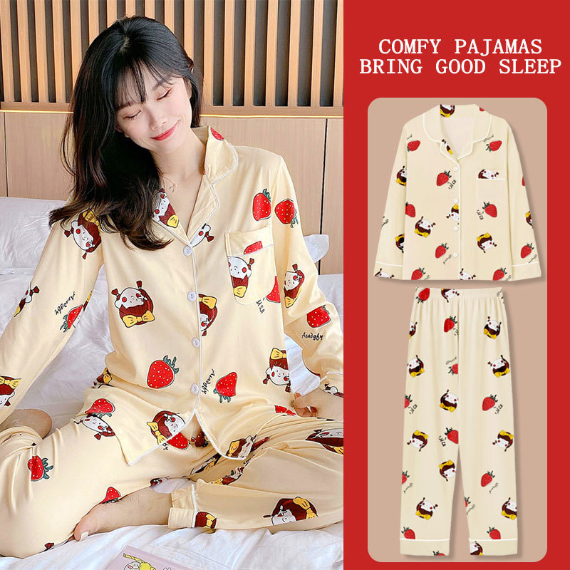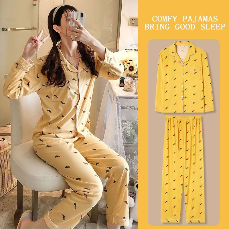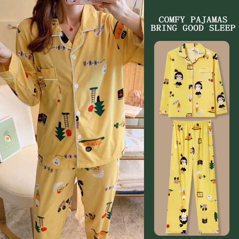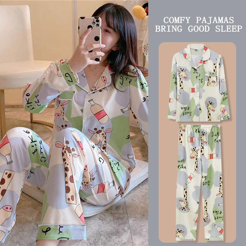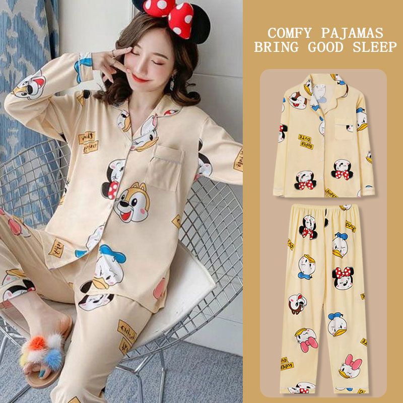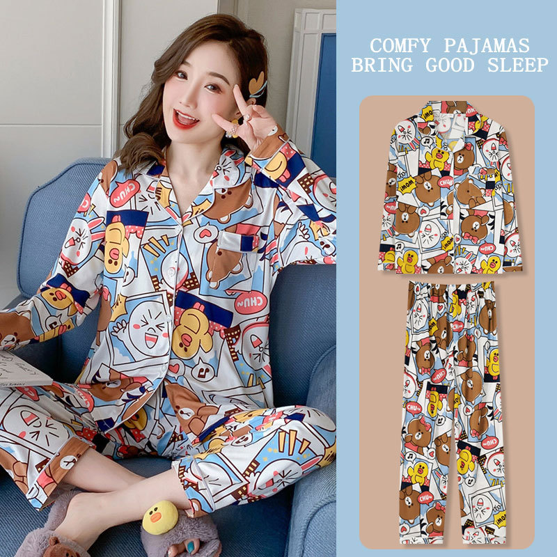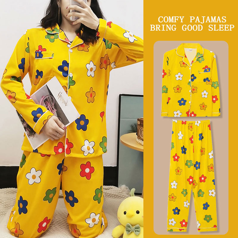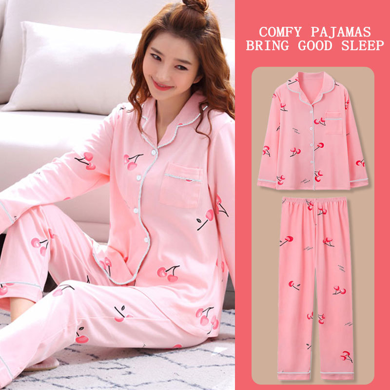 봄과 가을 잠옷 여성의 둥근 목 풀오버 학생 소녀 스타일 긴 소매 만화 귀여운 홈 착용 투피스 세트스토어 가기
