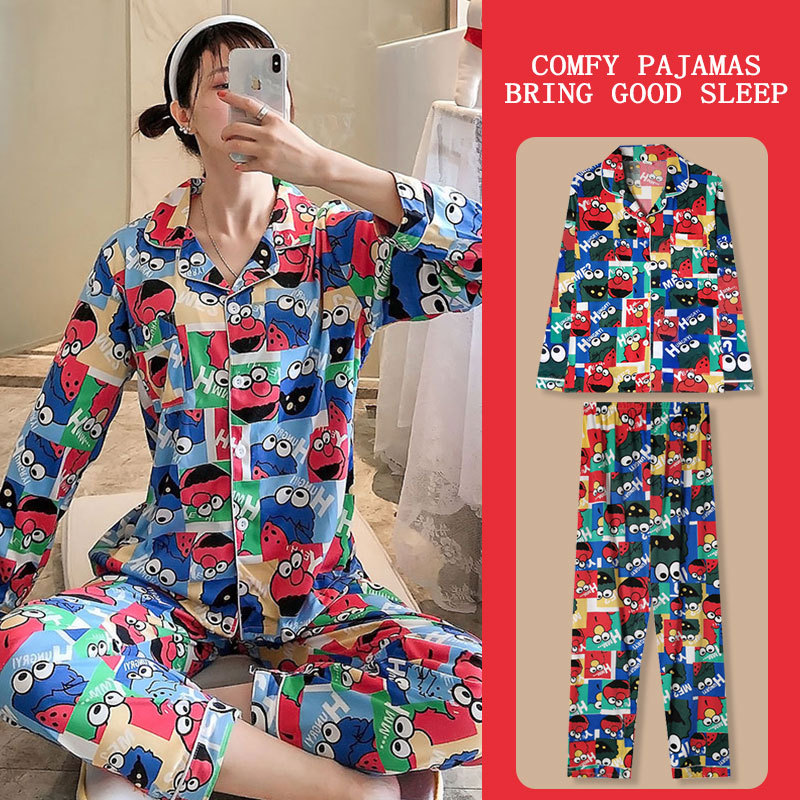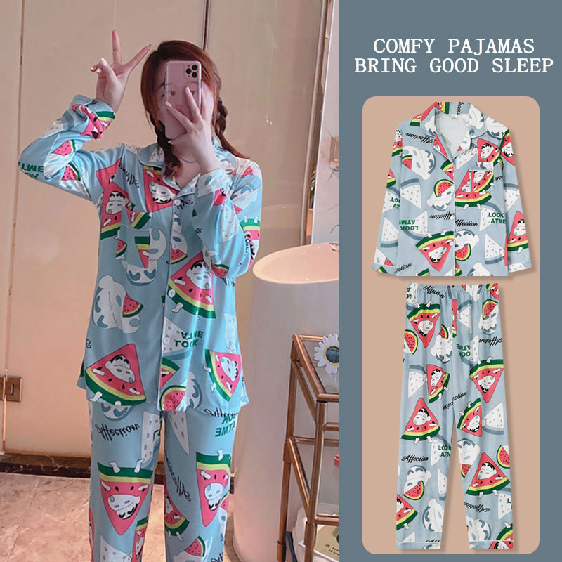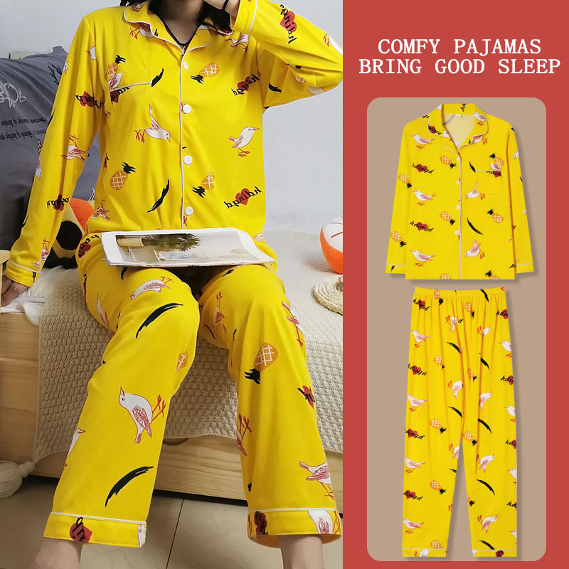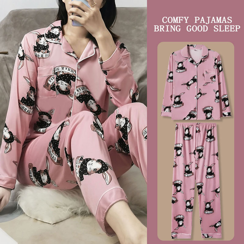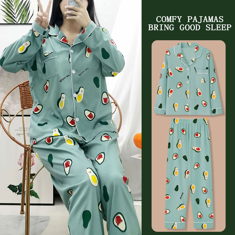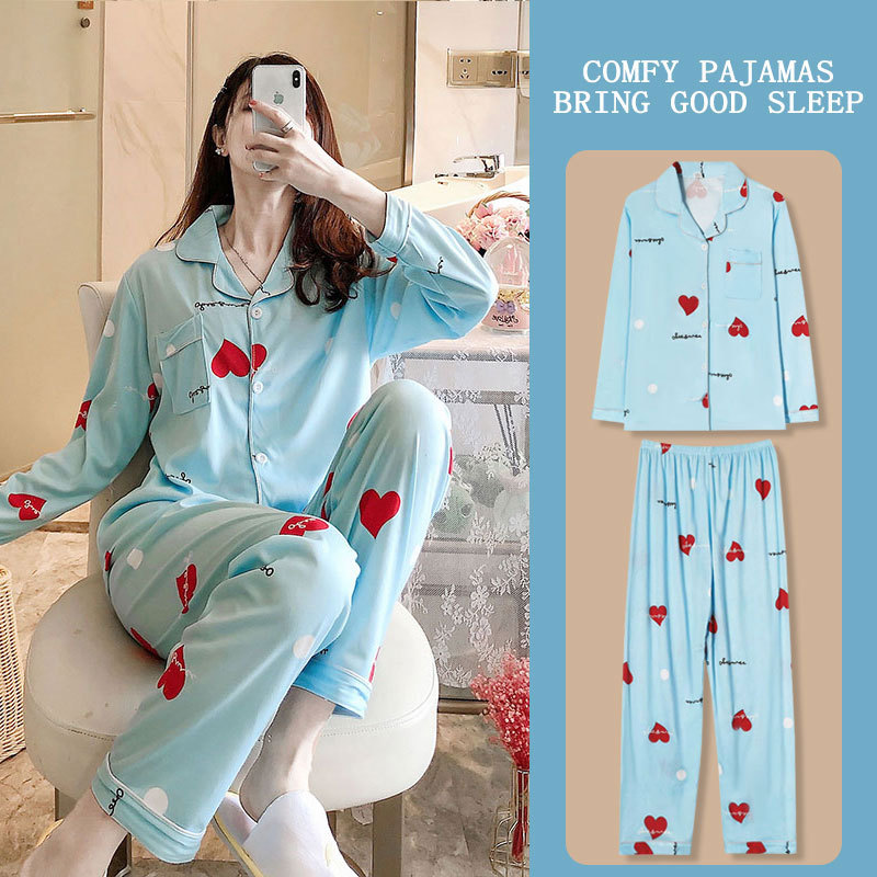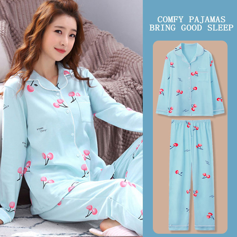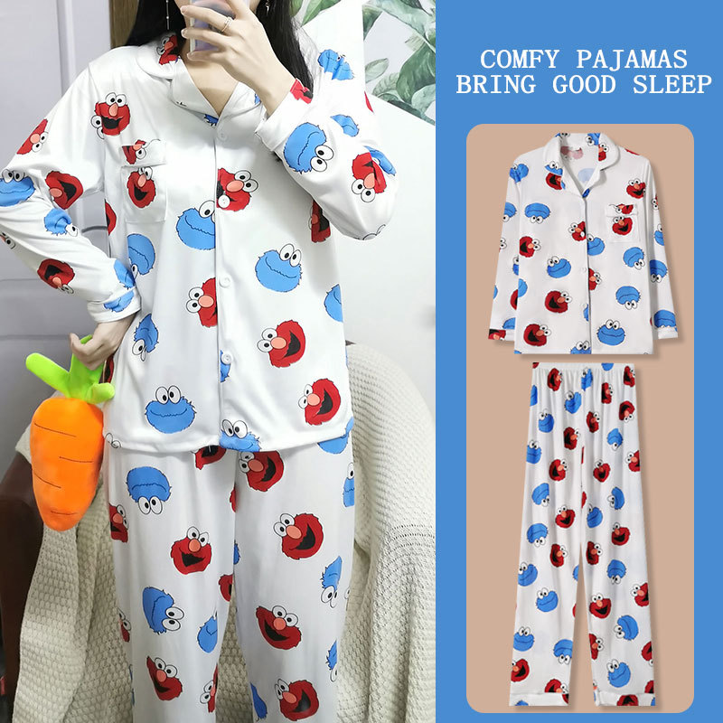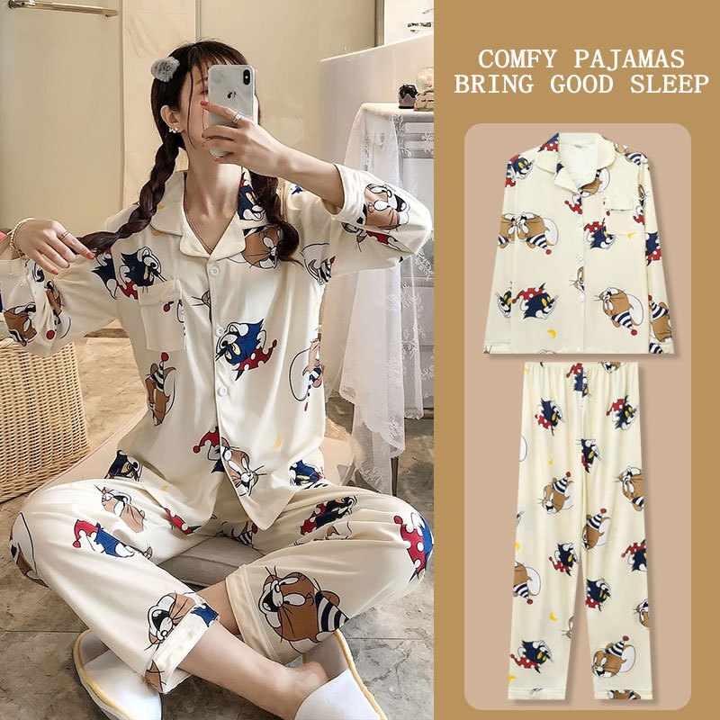 봄과 가을 잠옷 여성의 둥근 목 풀오버 학생 소녀 스타일 긴 소매 만화 귀여운 홈 착용 투피스 세트스토어 가기