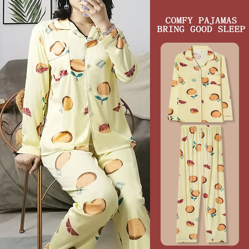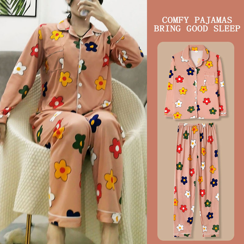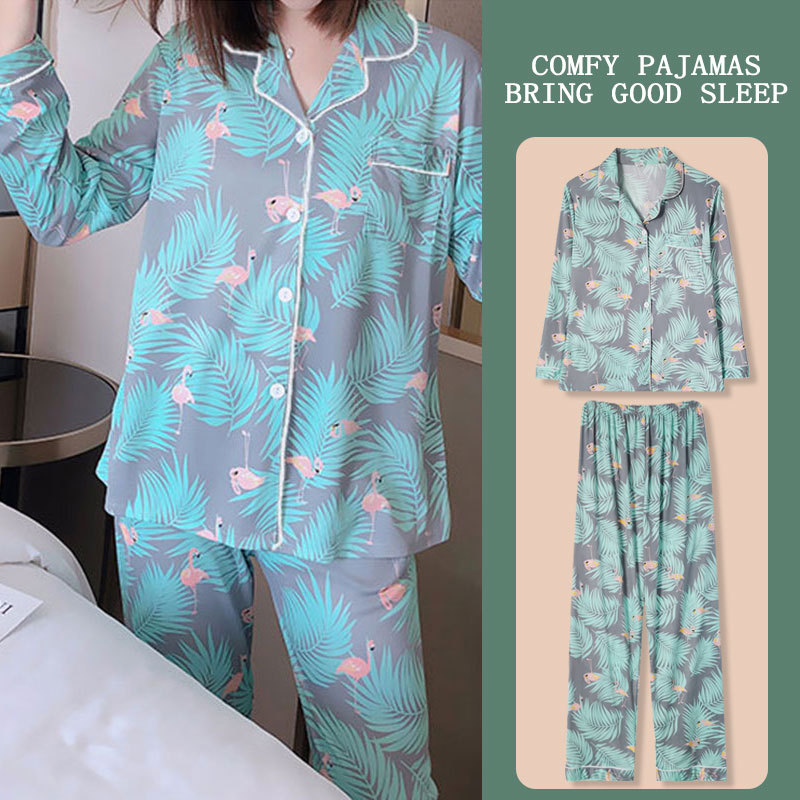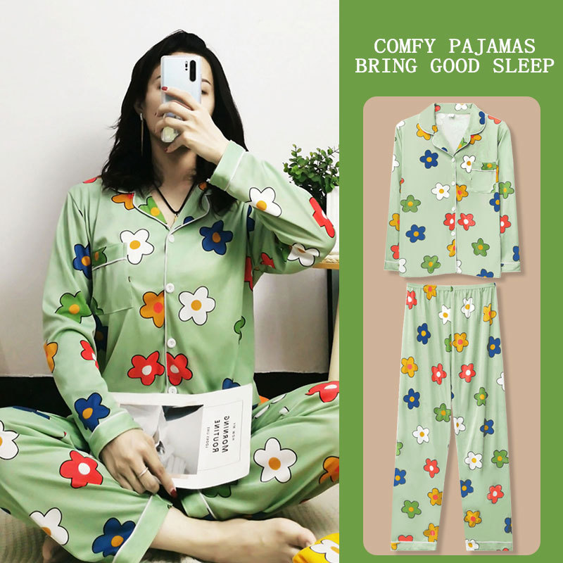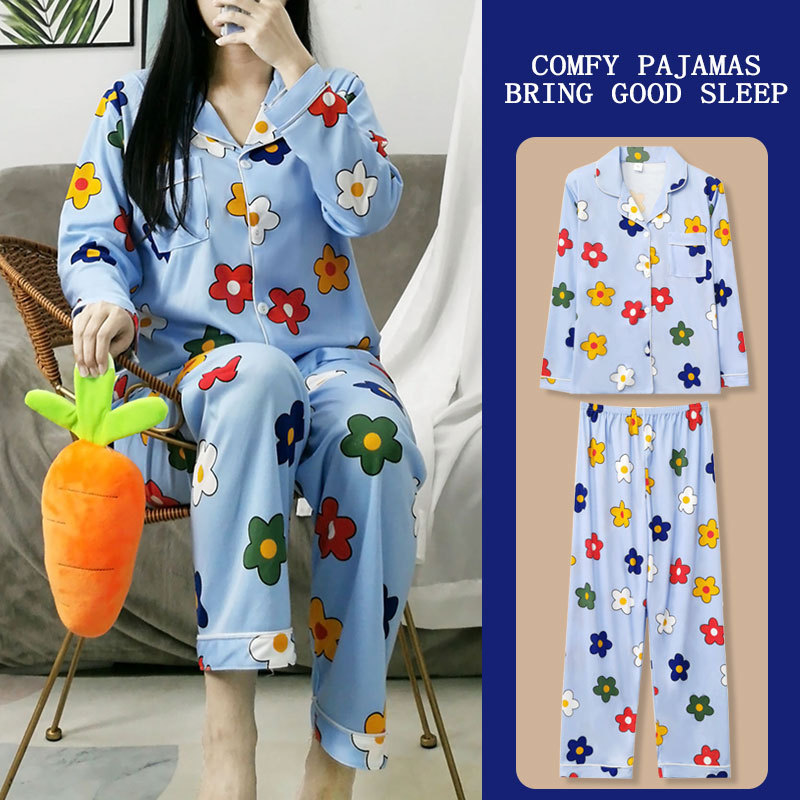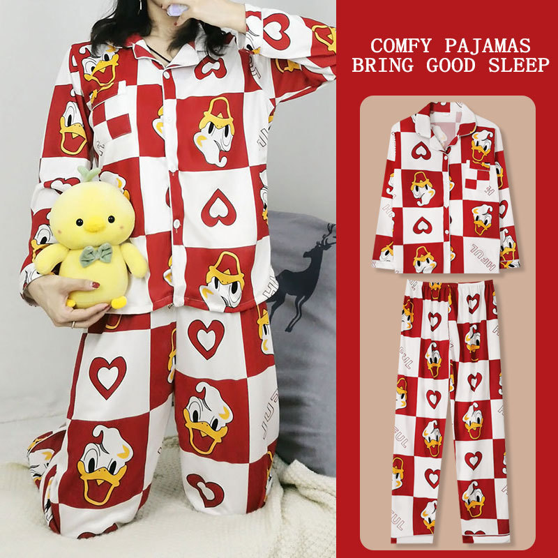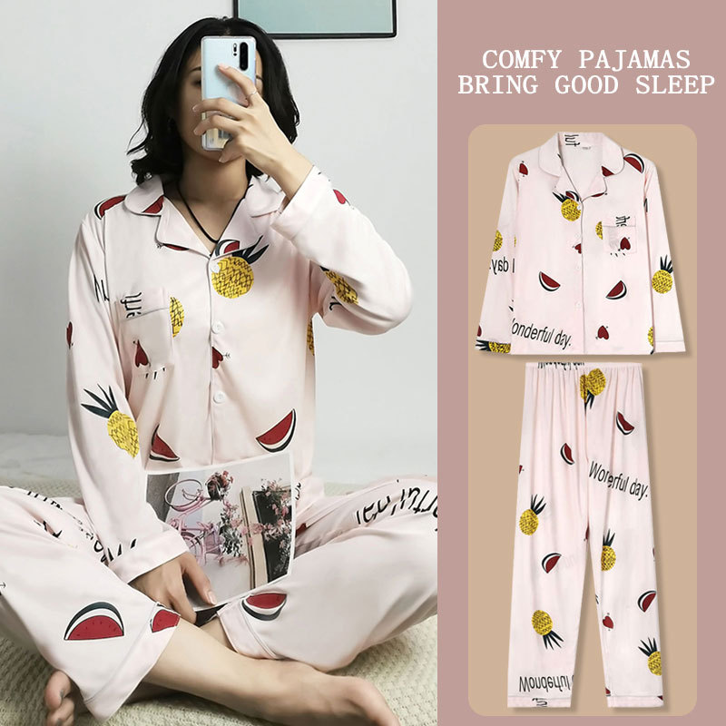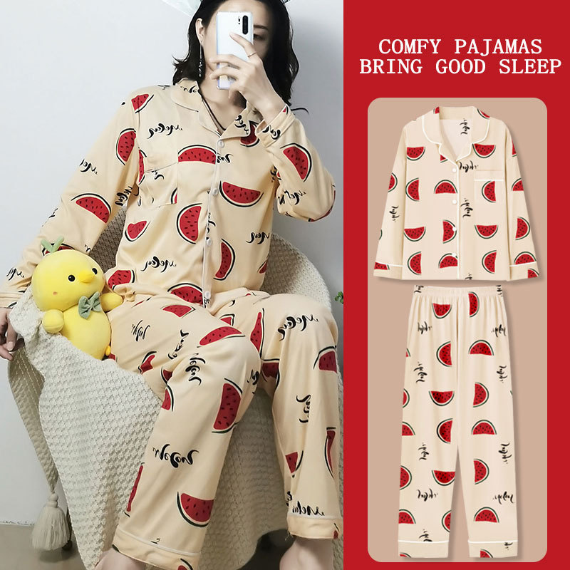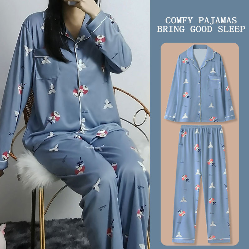 봄과 가을 잠옷 여성의 둥근 목 풀오버 학생 소녀 스타일 긴 소매 만화 귀여운 홈 착용 투피스 세트스토어 가기