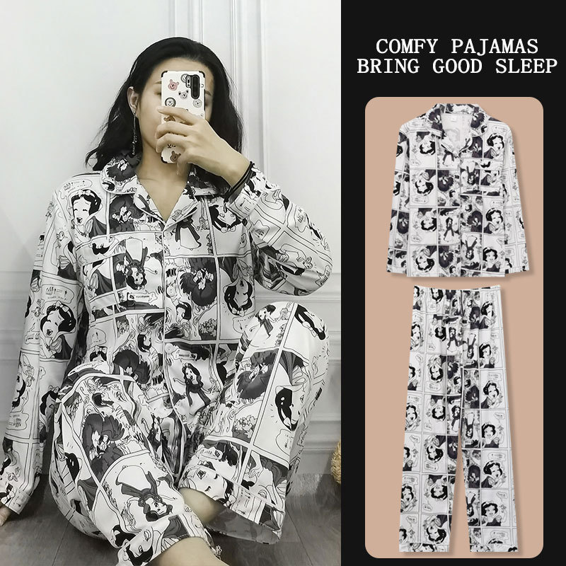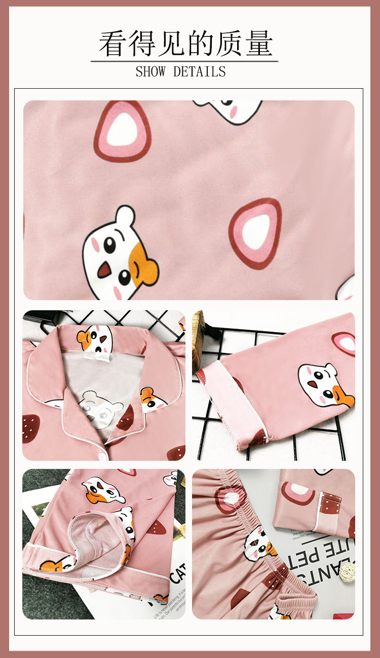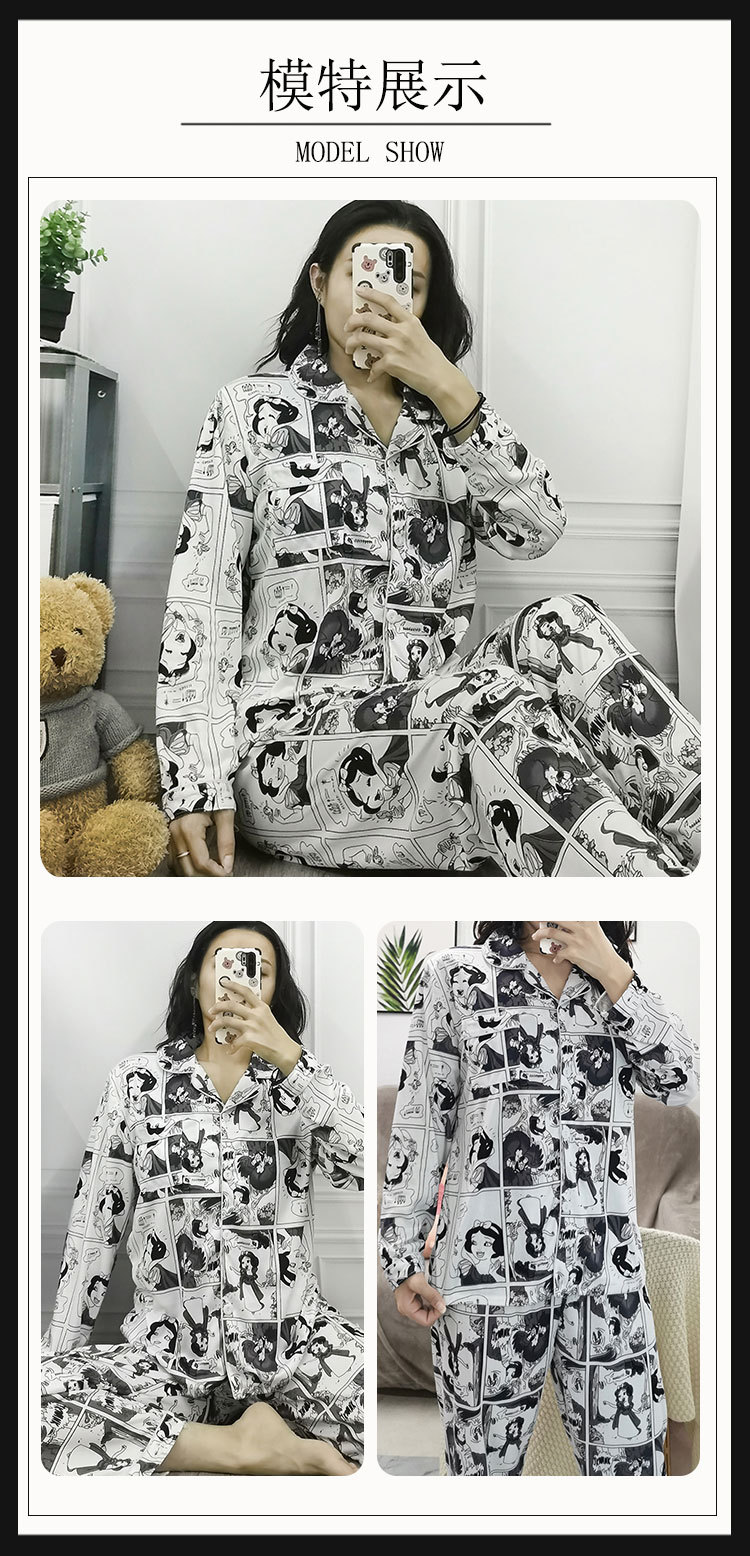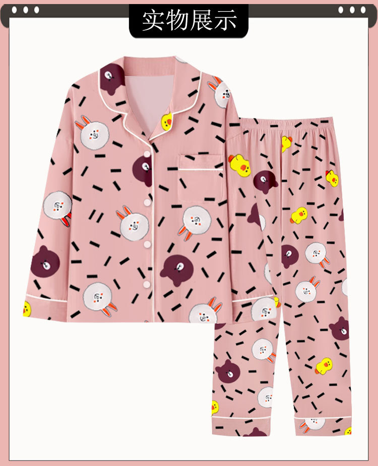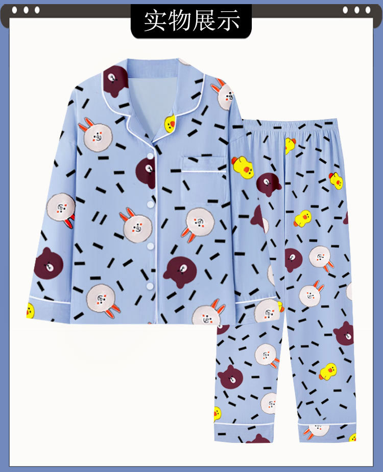 봄과 가을 잠옷 여성의 둥근 목 풀오버 학생 소녀 스타일 긴 소매 만화 귀여운 홈 착용 투피스 세트