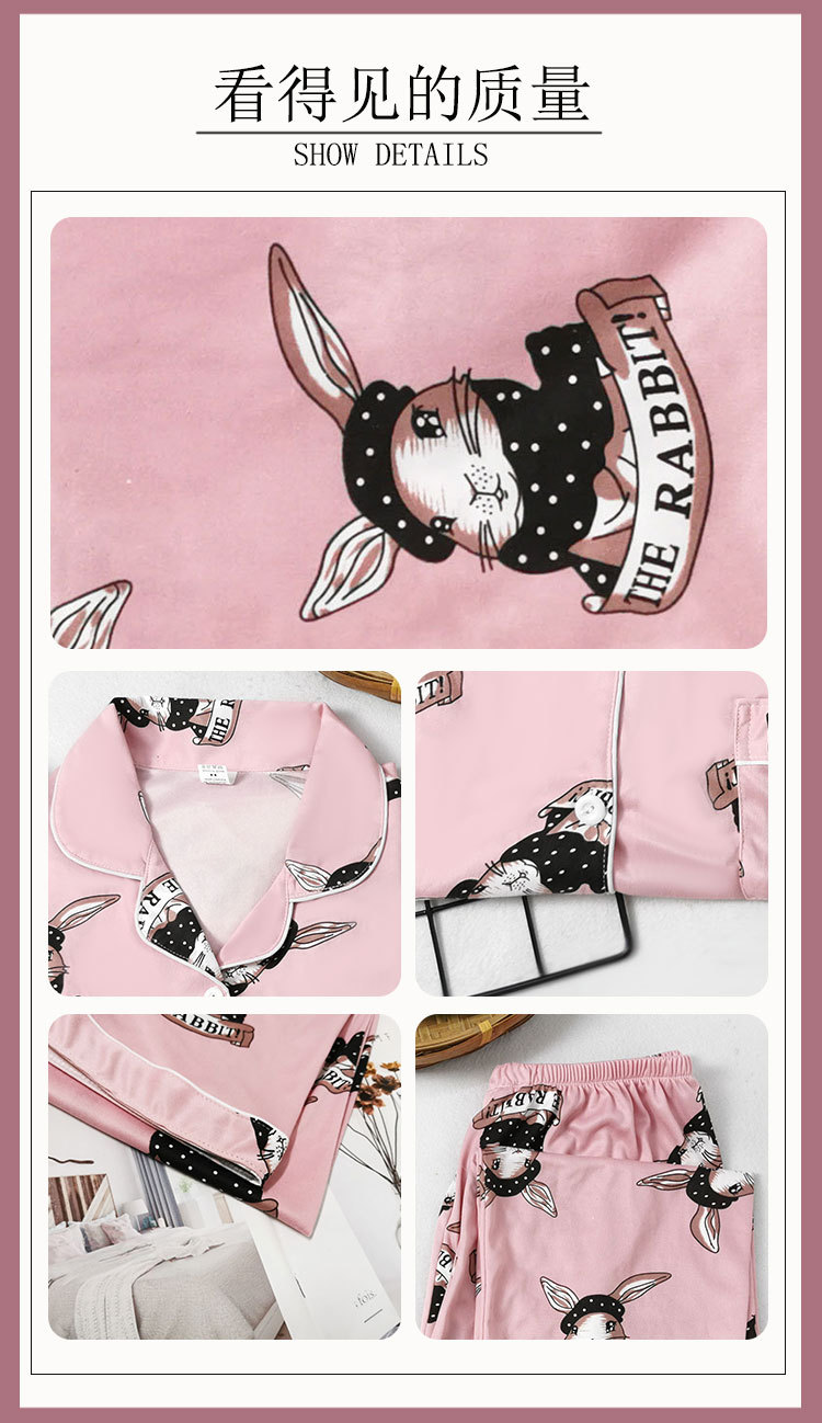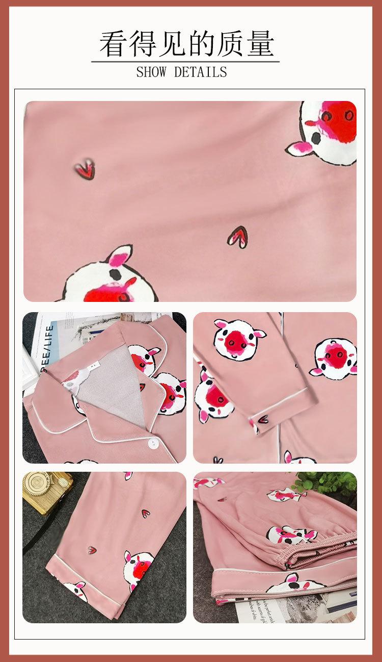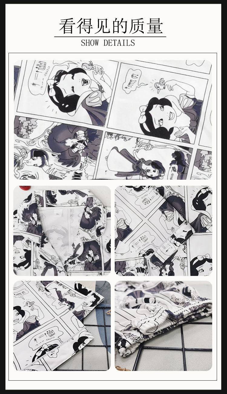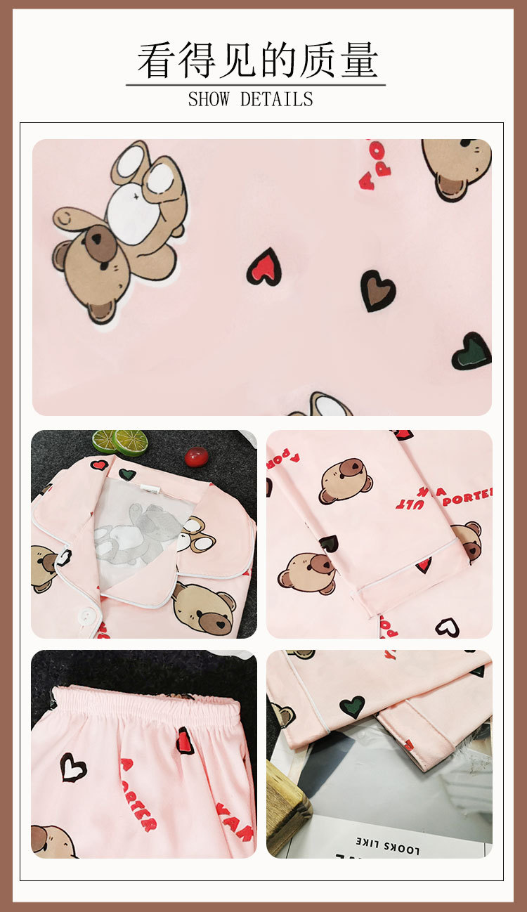 봄과 가을 잠옷 여성의 둥근 목 풀오버 학생 소녀 스타일 긴 소매 만화 귀여운 홈 착용 투피스 세트