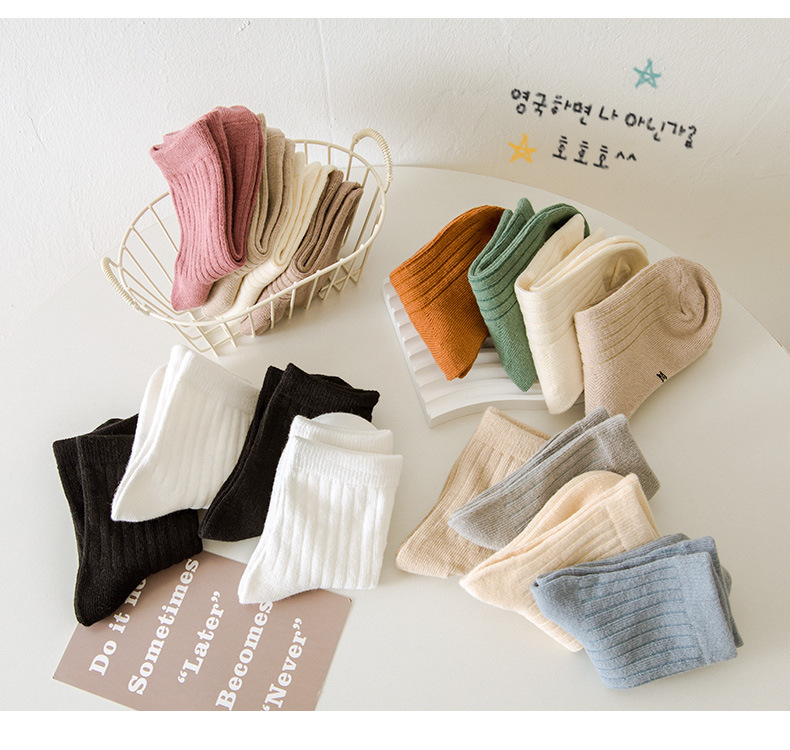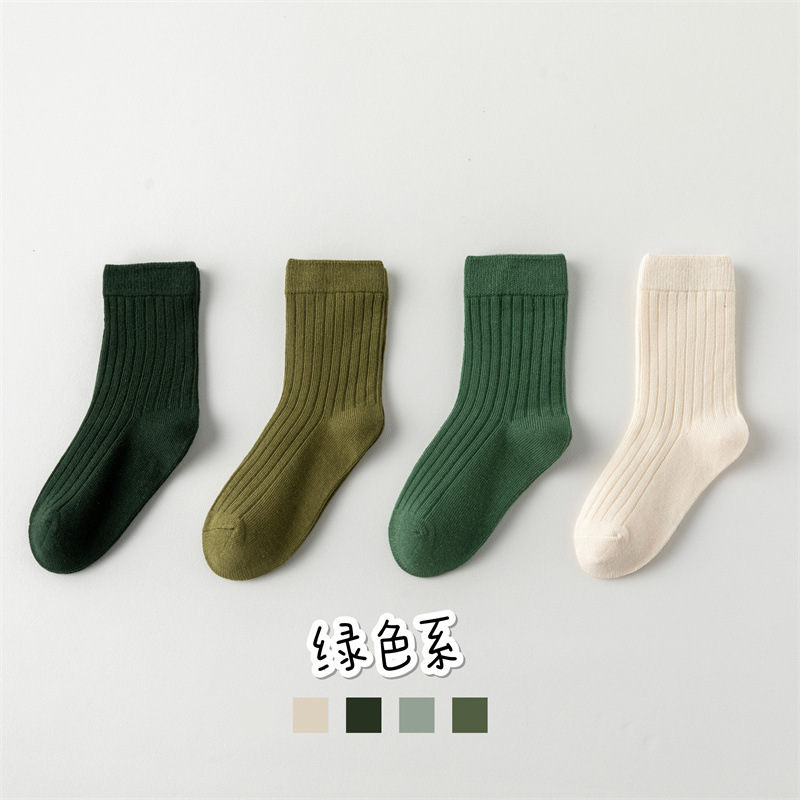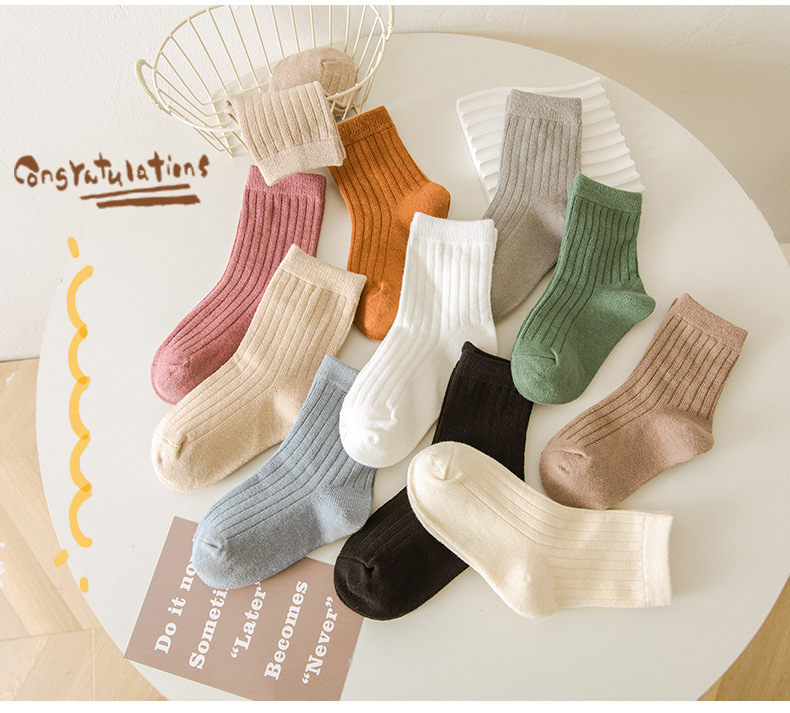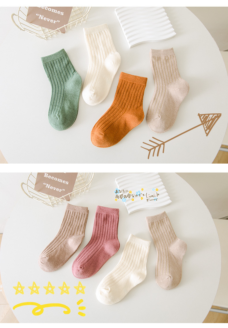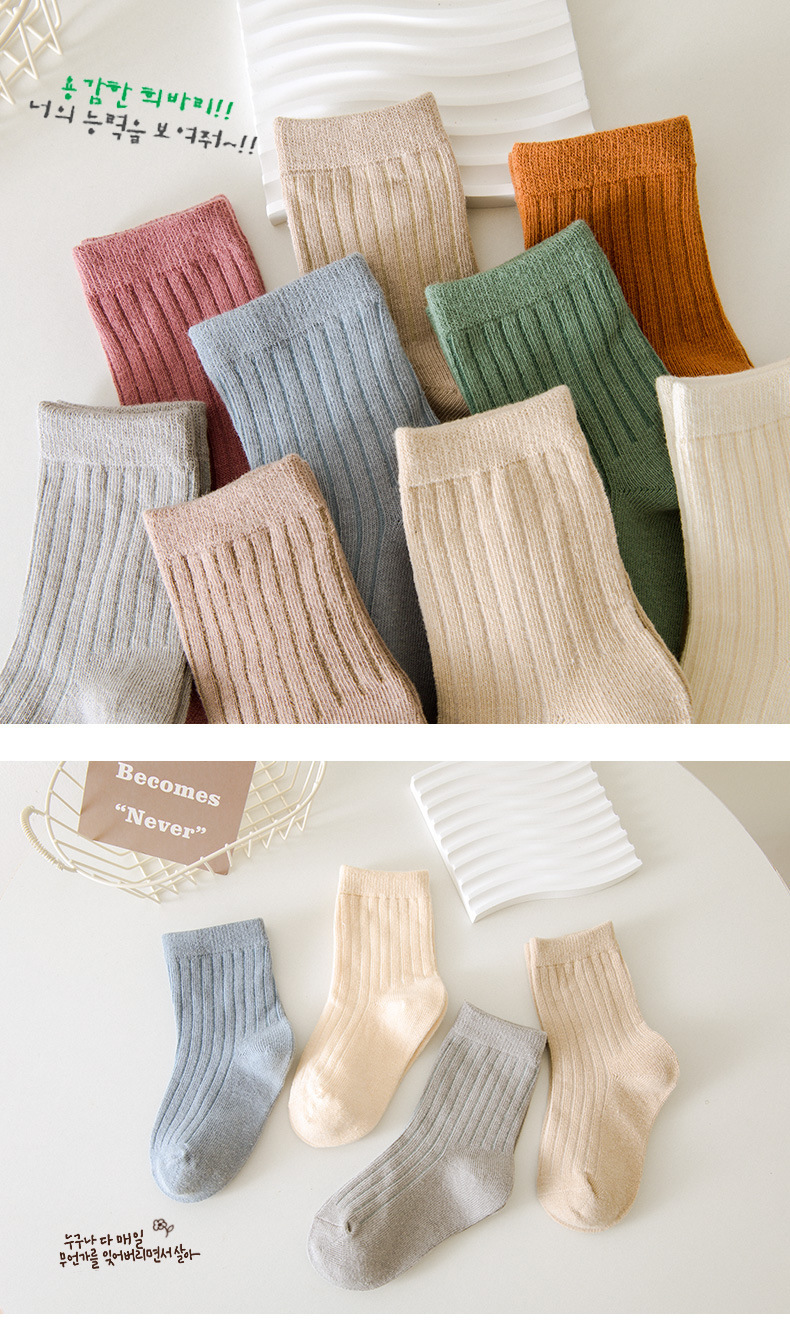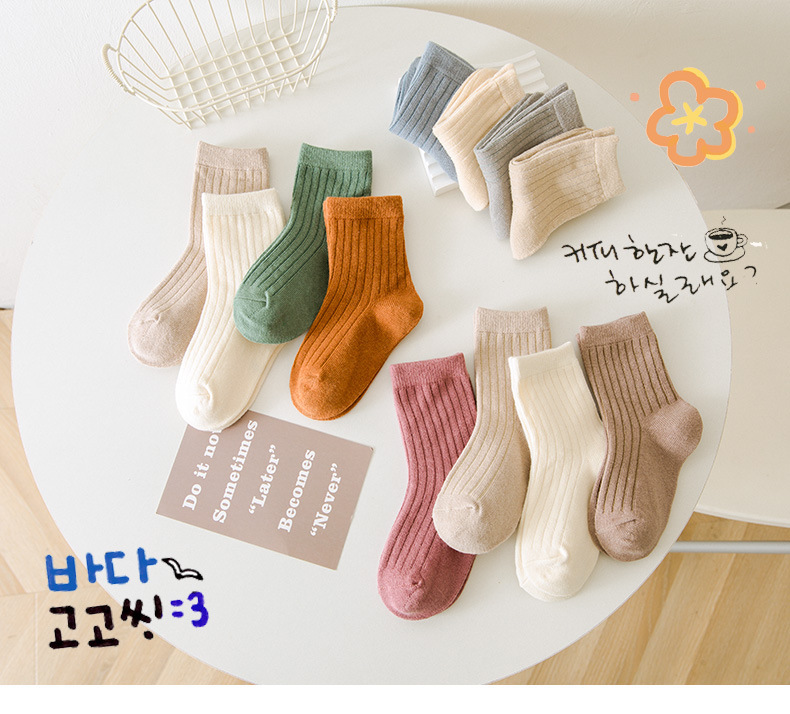 가을 새로운 어린이 양말 단색 Morandi 컬러 스트립 아기 양말 다목적 소년 및 소녀 양말 면화스토어 가기