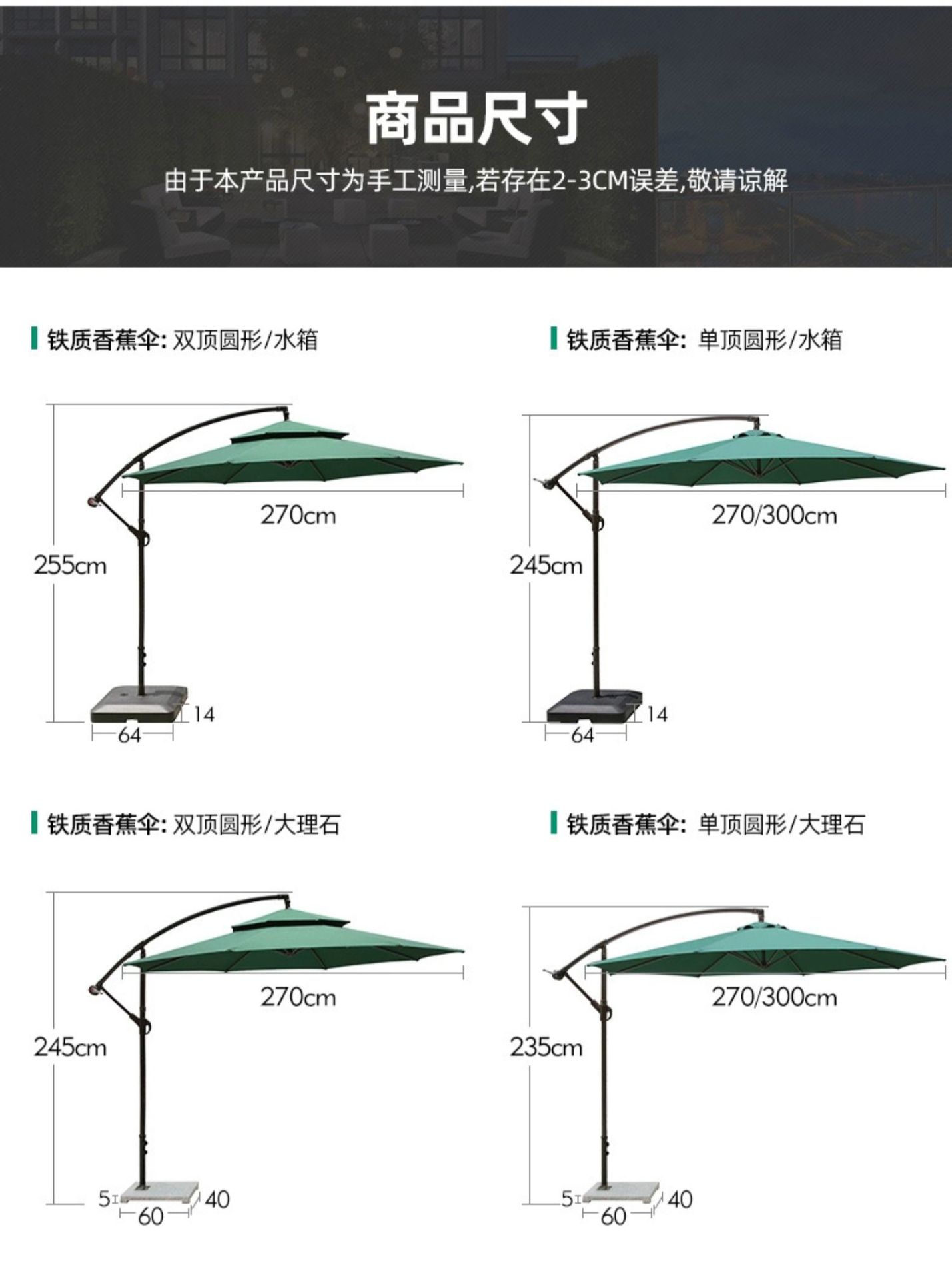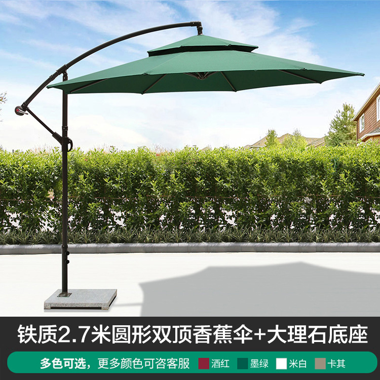 • 대리석베이스가있는 아이언 라운드 2.7m 더블 탑 바나나 우산 (다크 그린)