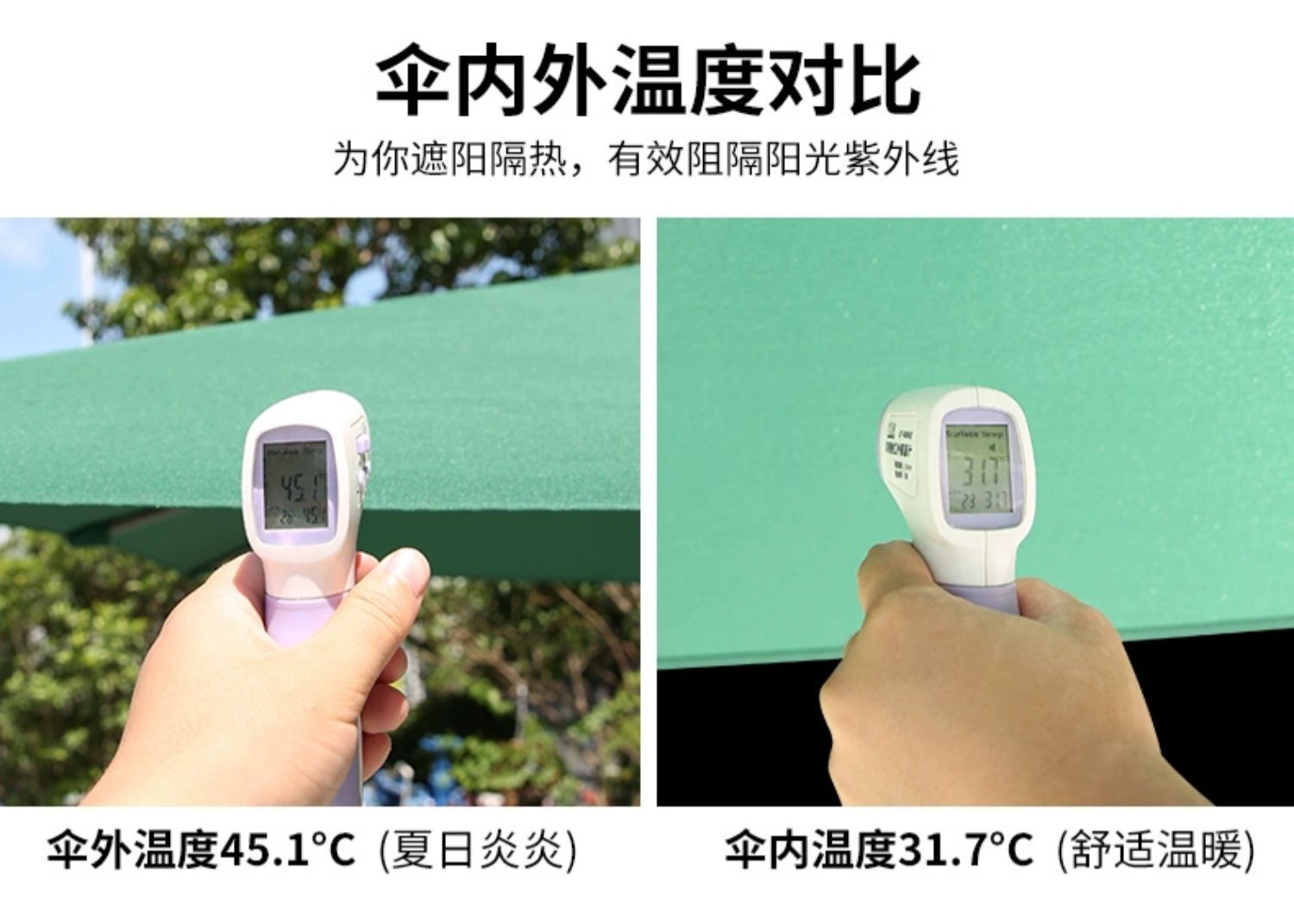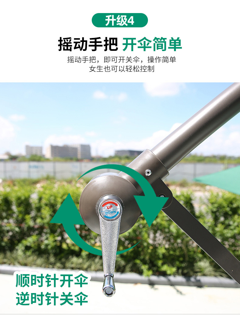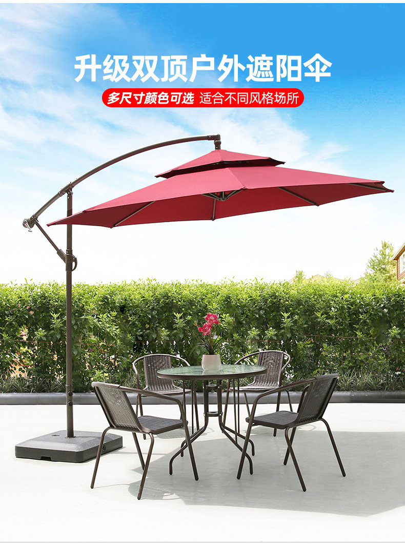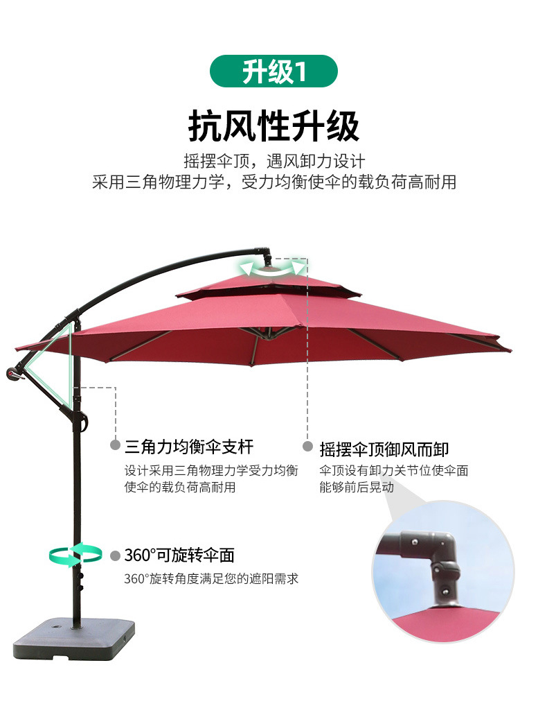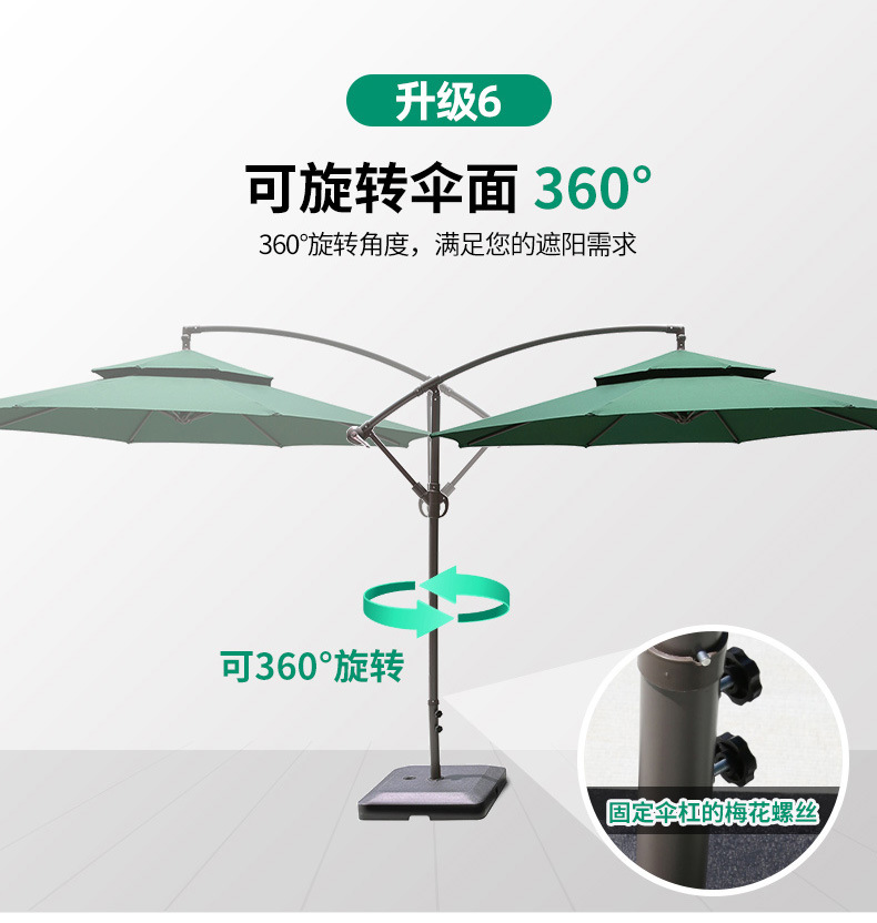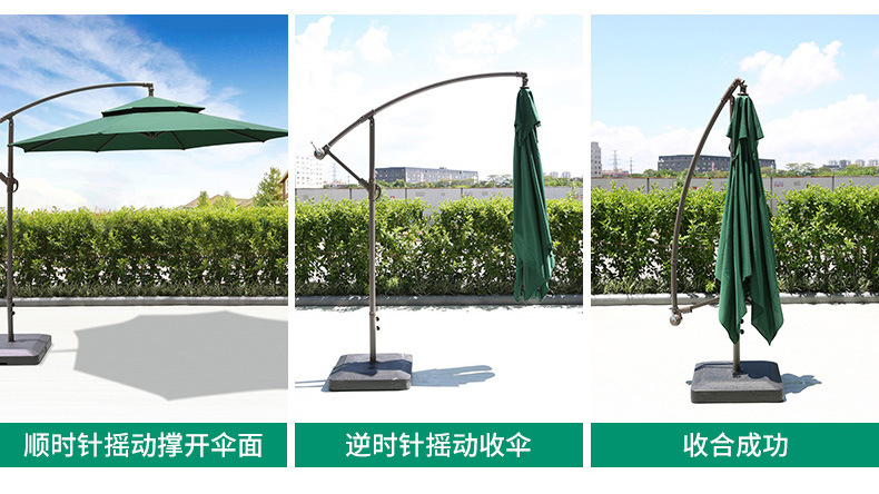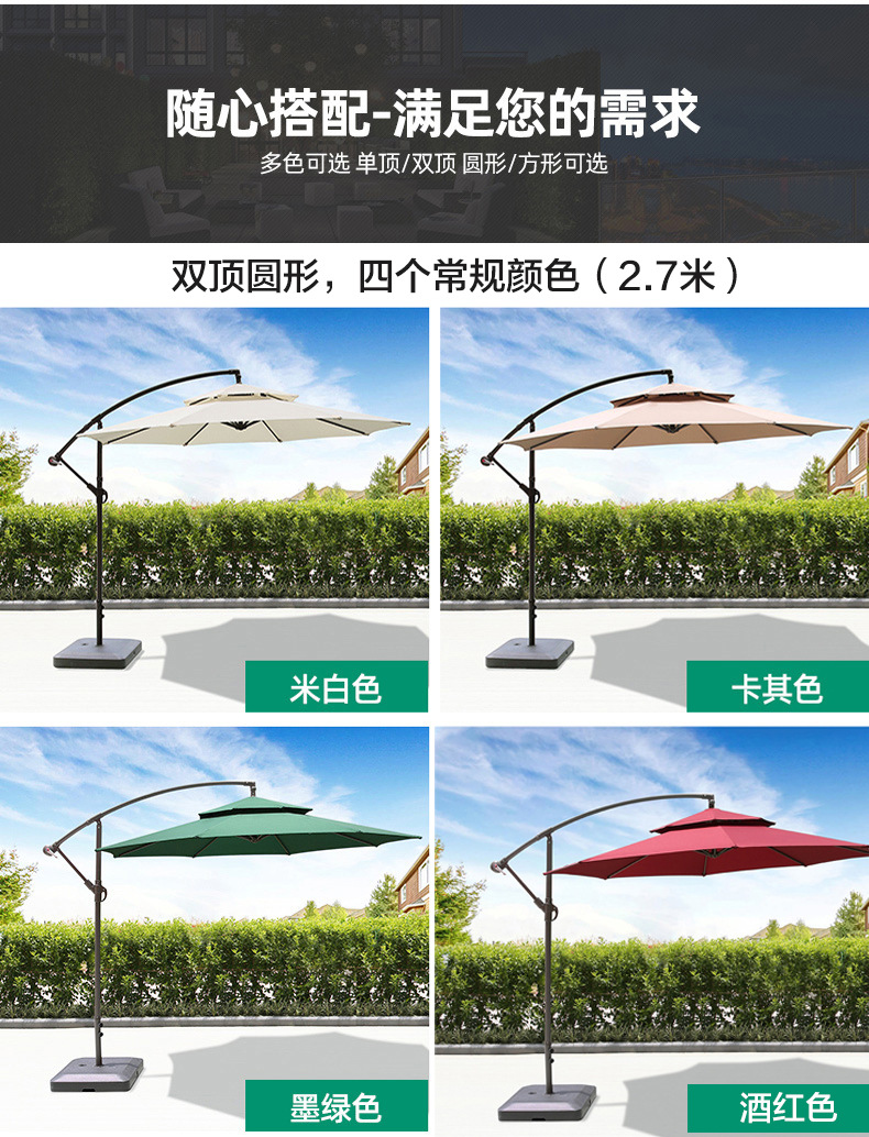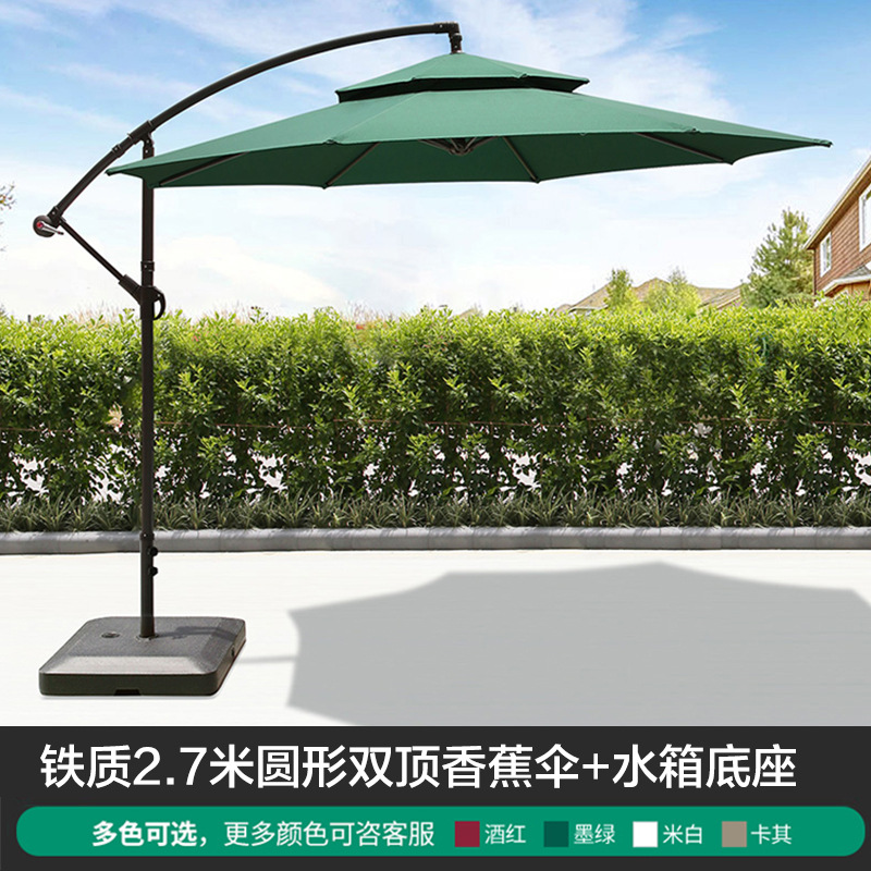• 대형 물 탱크베이스가있는 아이언 라운드 2.7m 더블 탑 바나나 우산 (다크 그린)