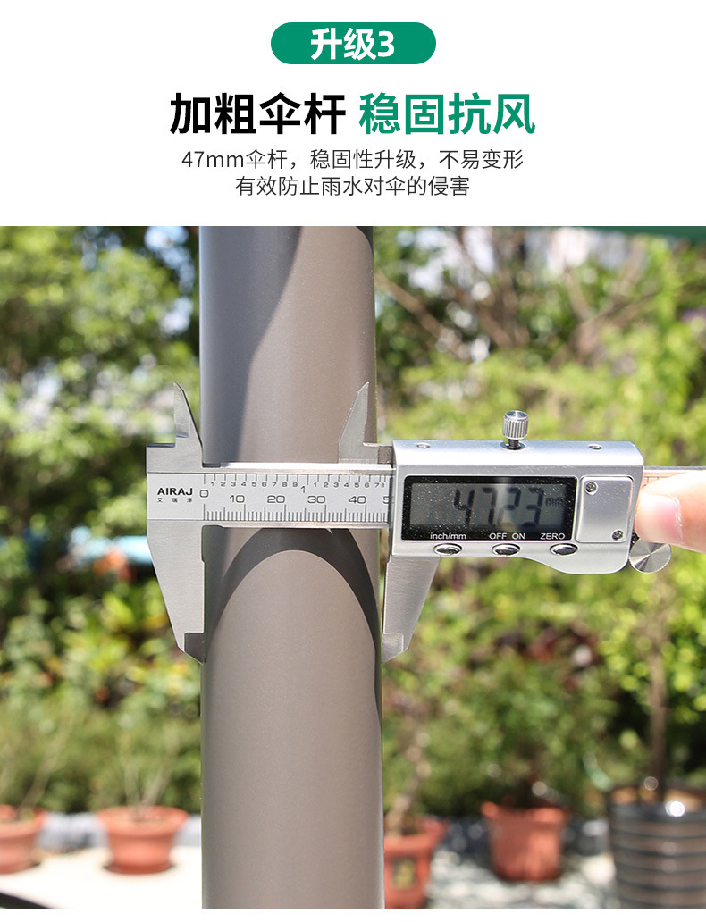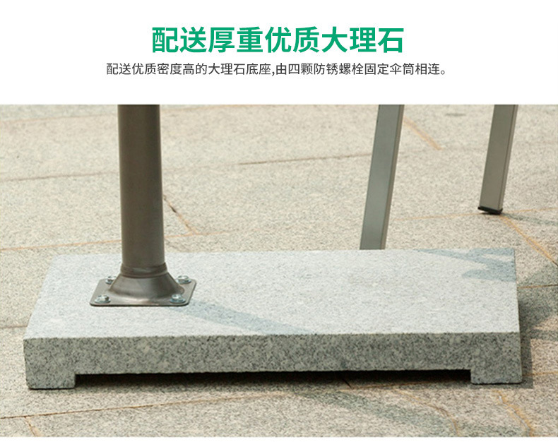 • 알루미늄 라운드 2.7m 싱글 탑 바나나 우산 대리석 바닥 (다크 그린)