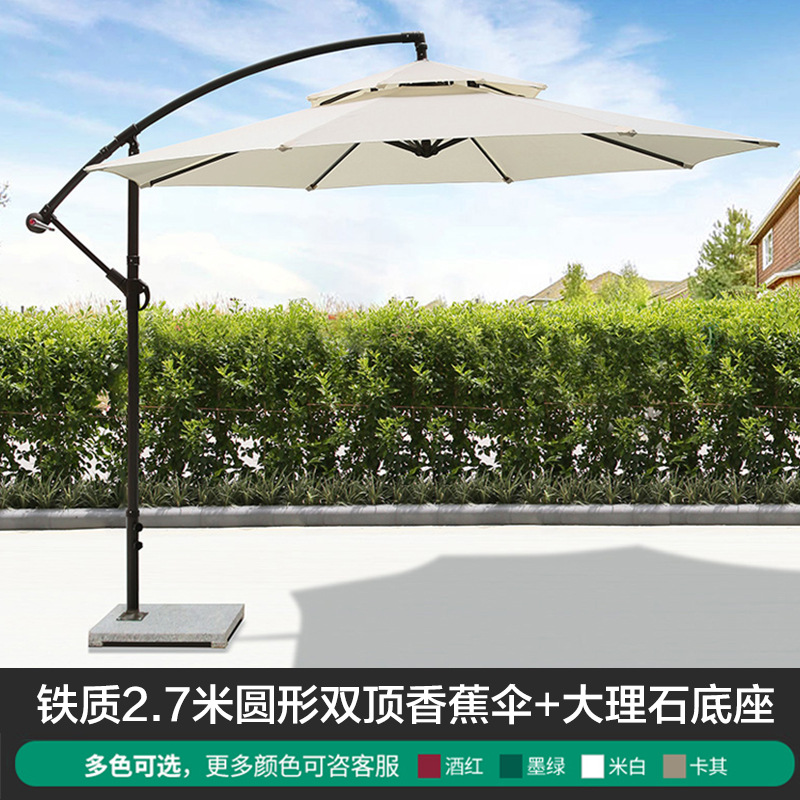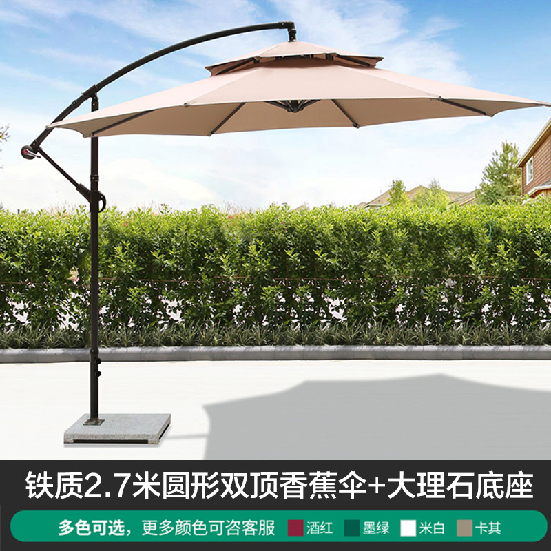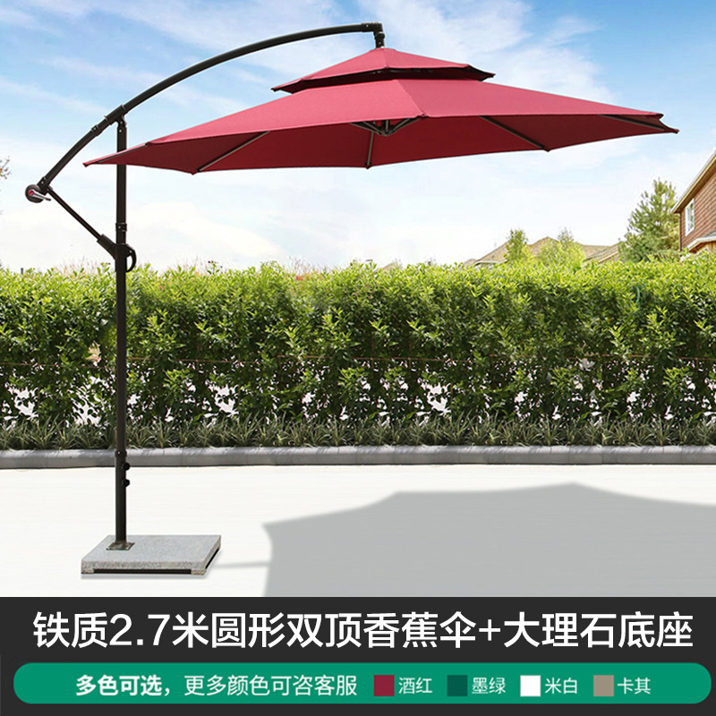 • 대리석베이스가있는 아이언 라운드 2.7m 더블 탑 바나나 우산 (버건디)