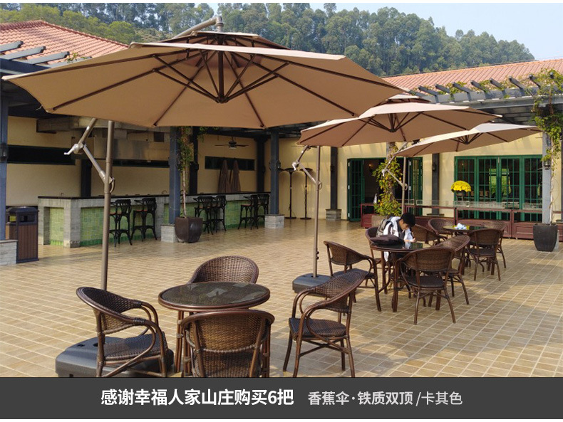 • 대리석베이스가있는 아이언 라운드 2.7m 더블 탑 바나나 우산 (카키)