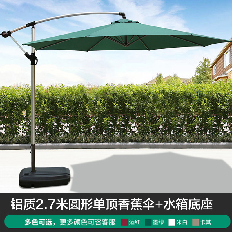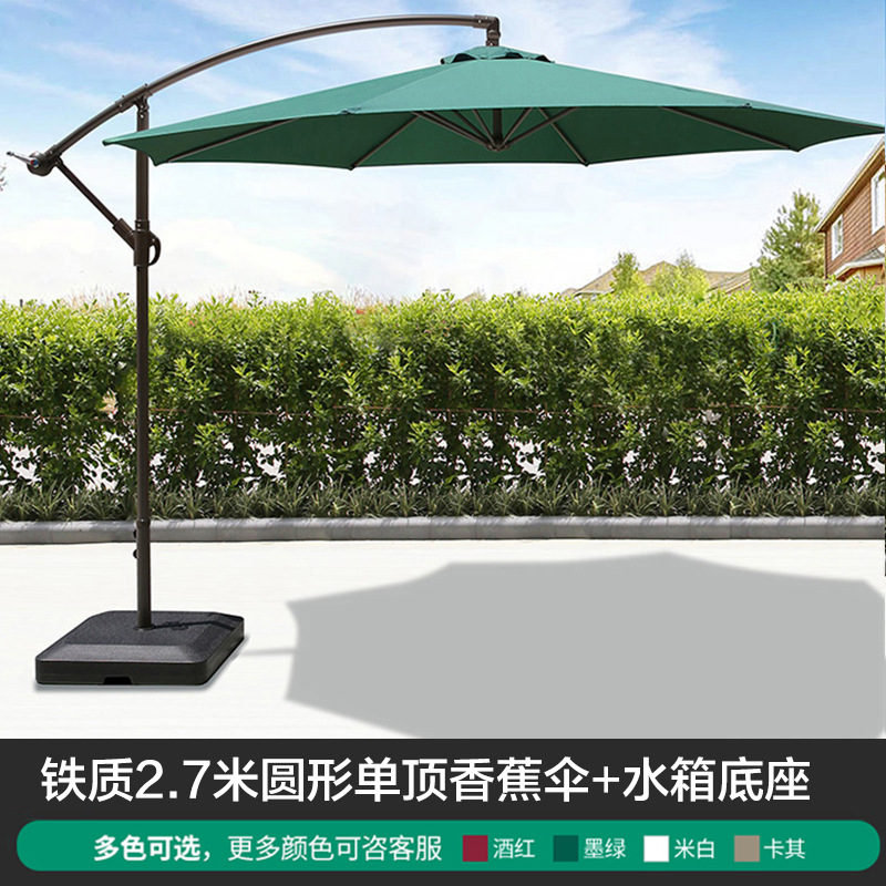 • 물 탱크베이스가있는 아이언 라운드 2.7m 싱글 탑 바나나 우산 (다크 그린)