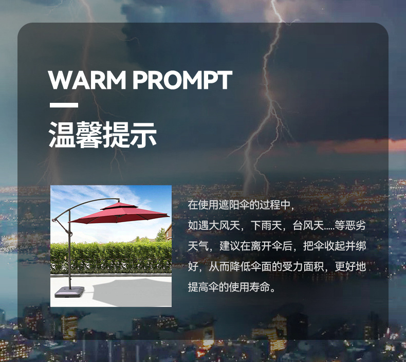 • 아이언 라운드 2.7m 더블 탑 바나나 우산 (베이지 색)
