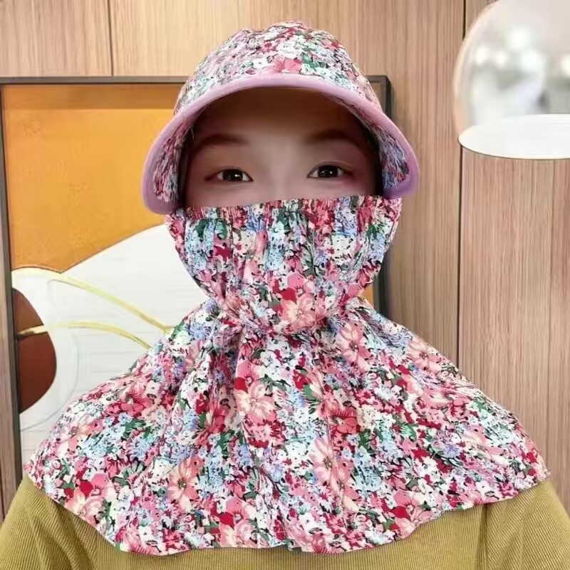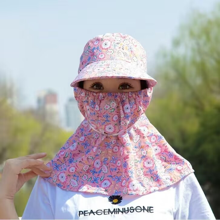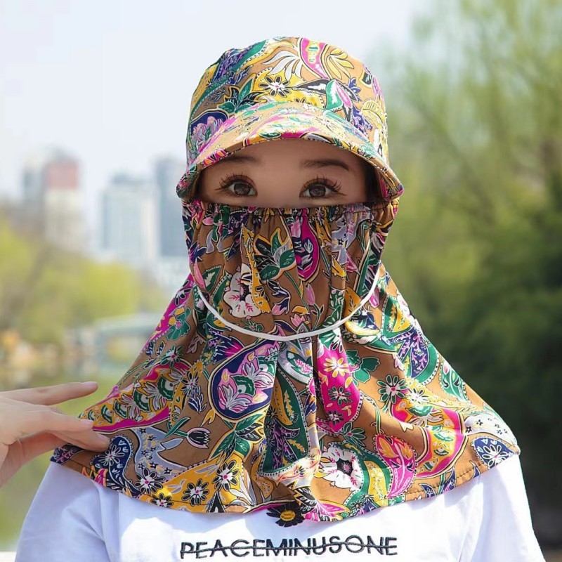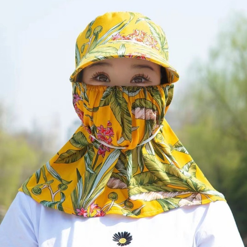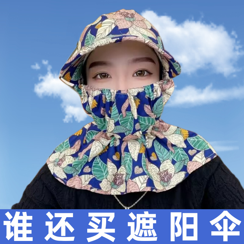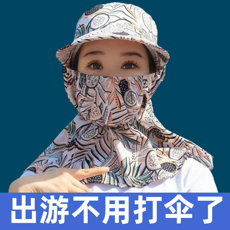 태양 모자 여름 여성 태양 모자 커버 얼굴 차 따기 모자 통기성 큰 브림 숄 모자 마스크 통합 태양 모자스토어 가기