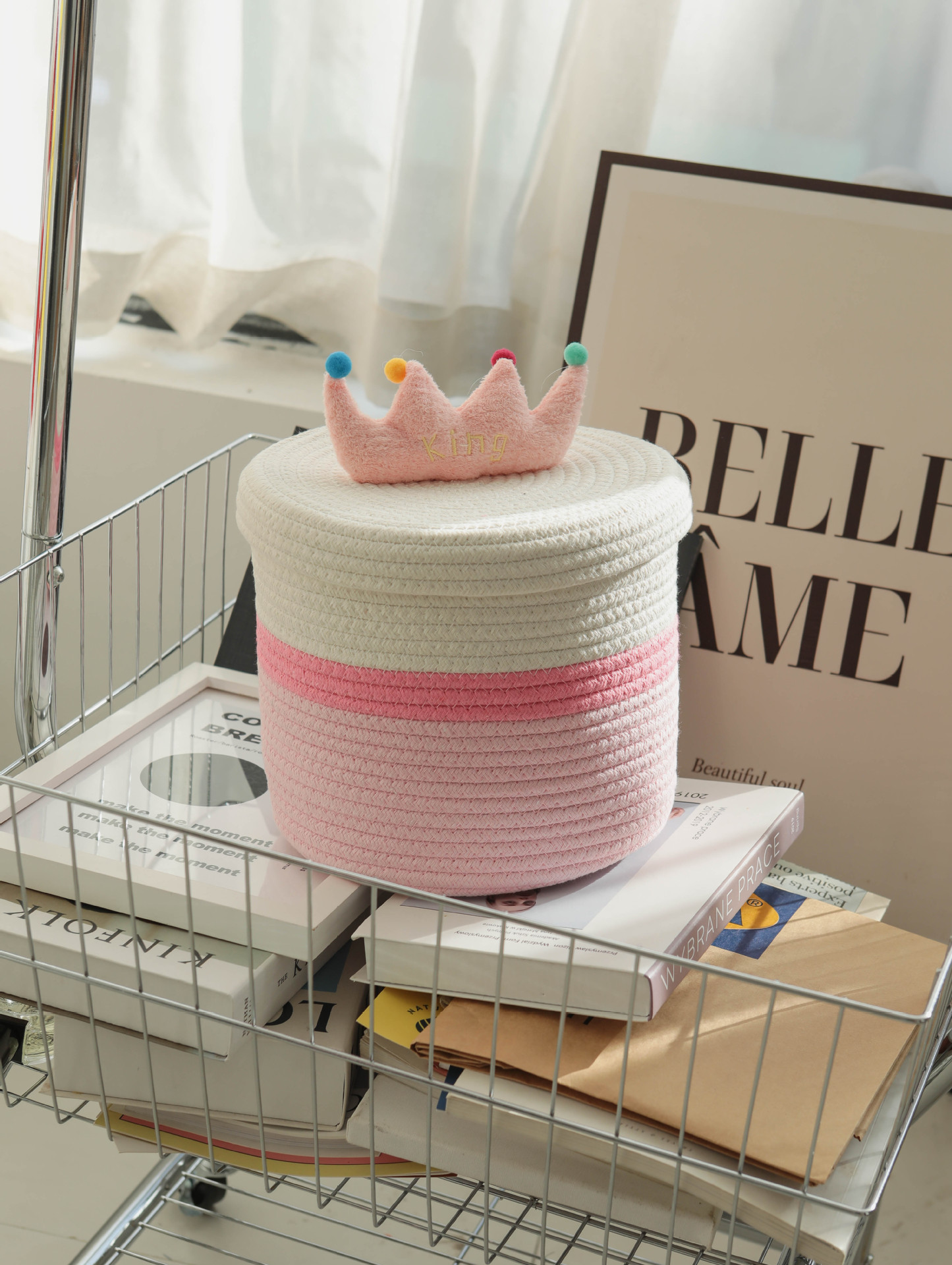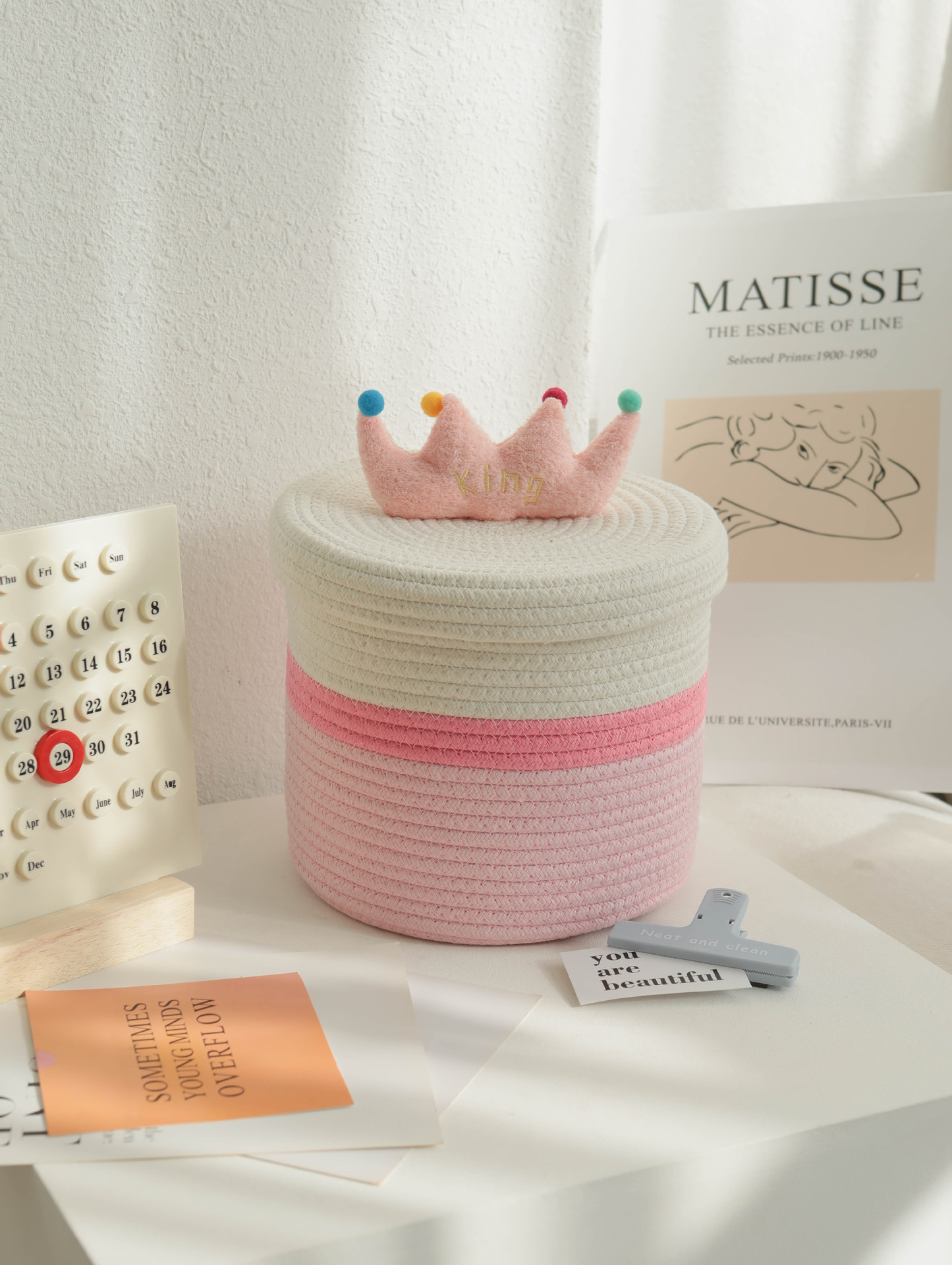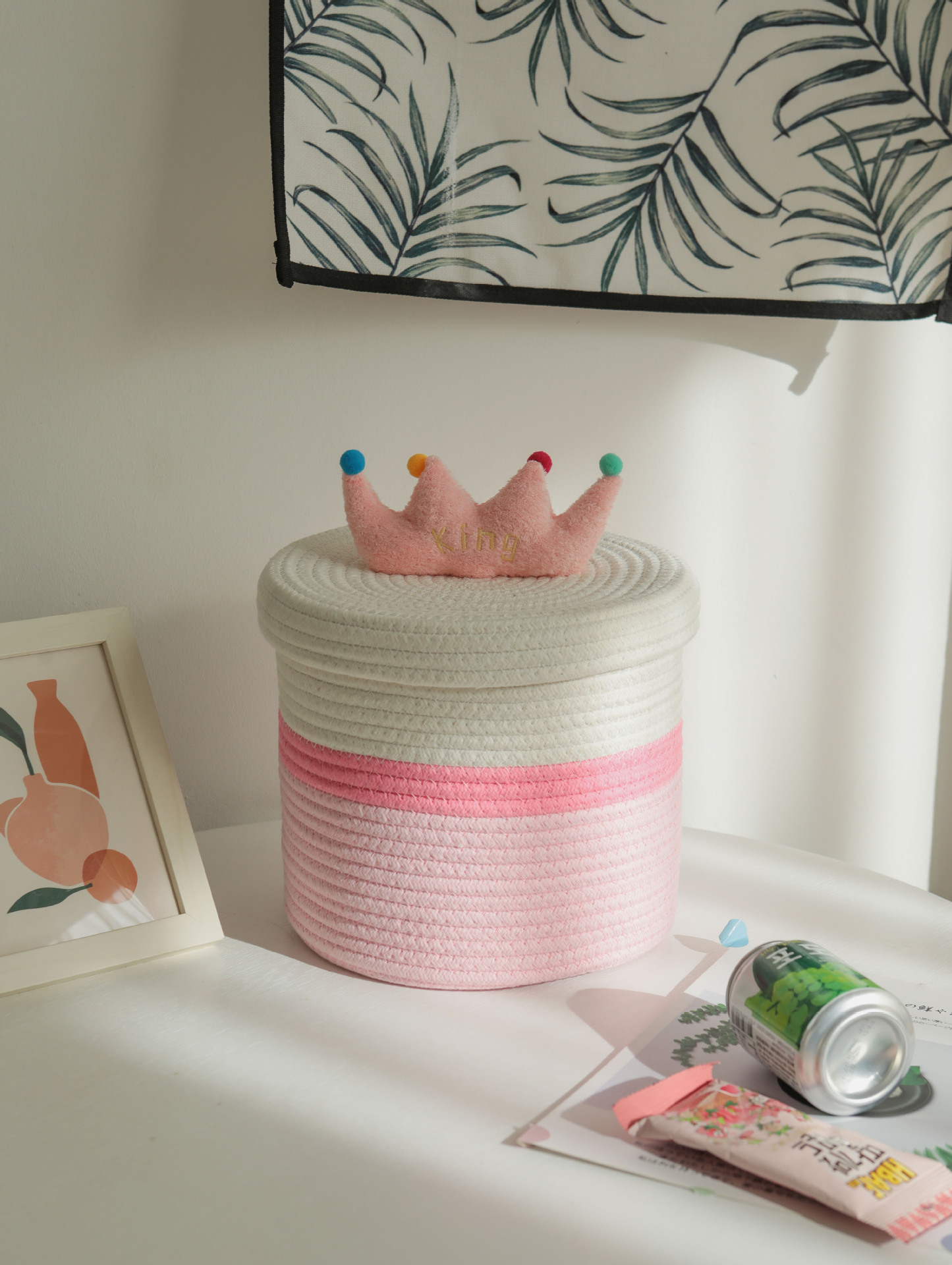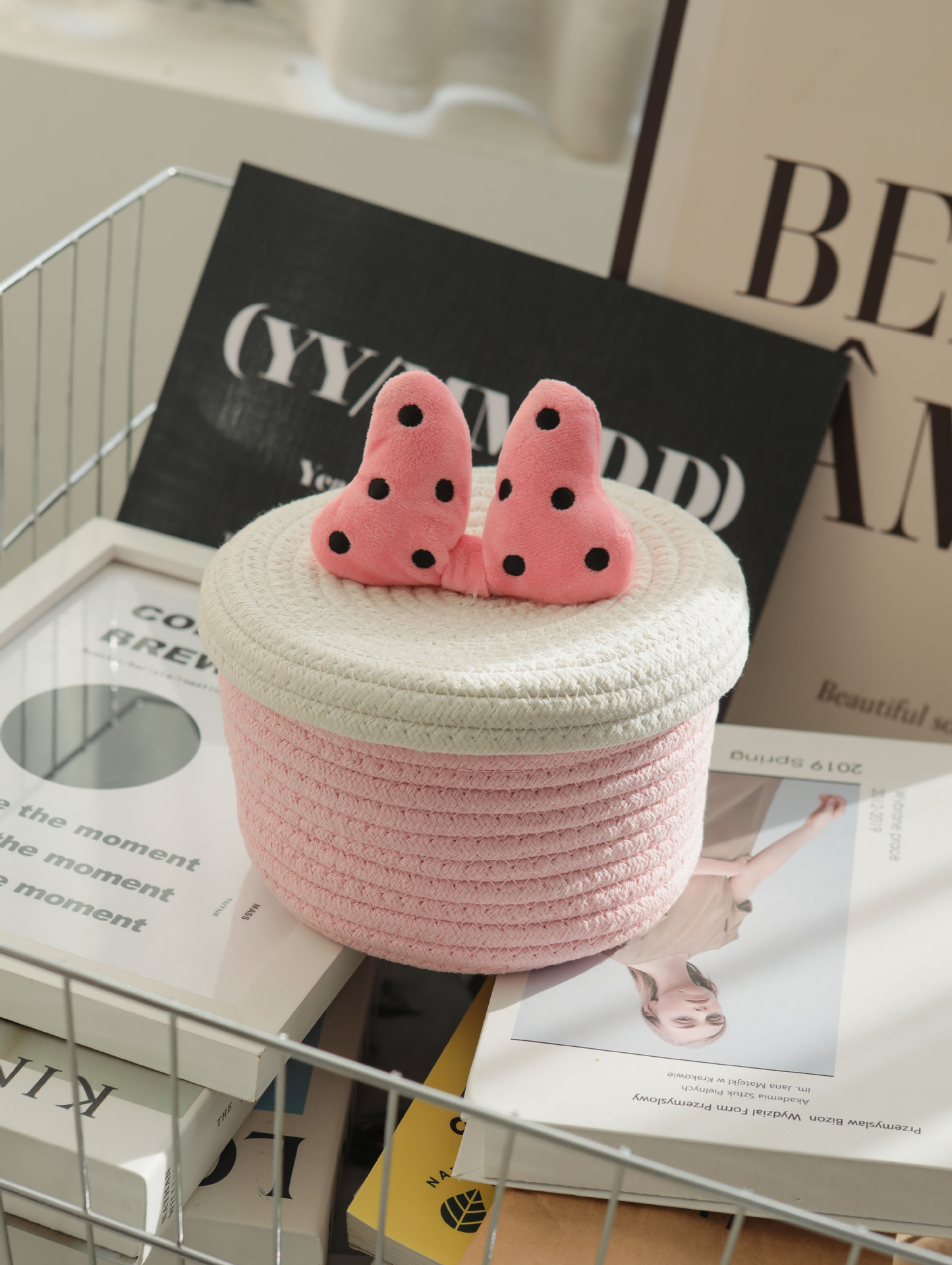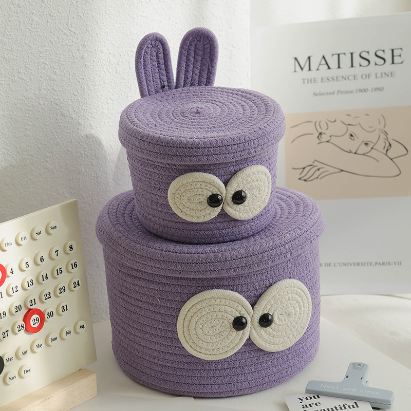 Bowknot 데스크탑 코튼 로프 보관 바구니 귀여운 스타일 보관 바구니 뚜껑 짠 저장 상자 제조 업체 재고