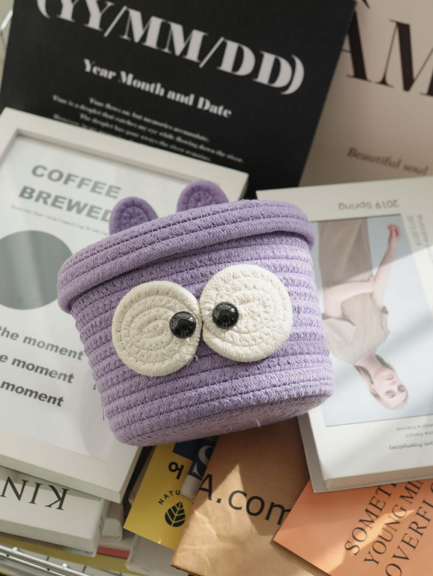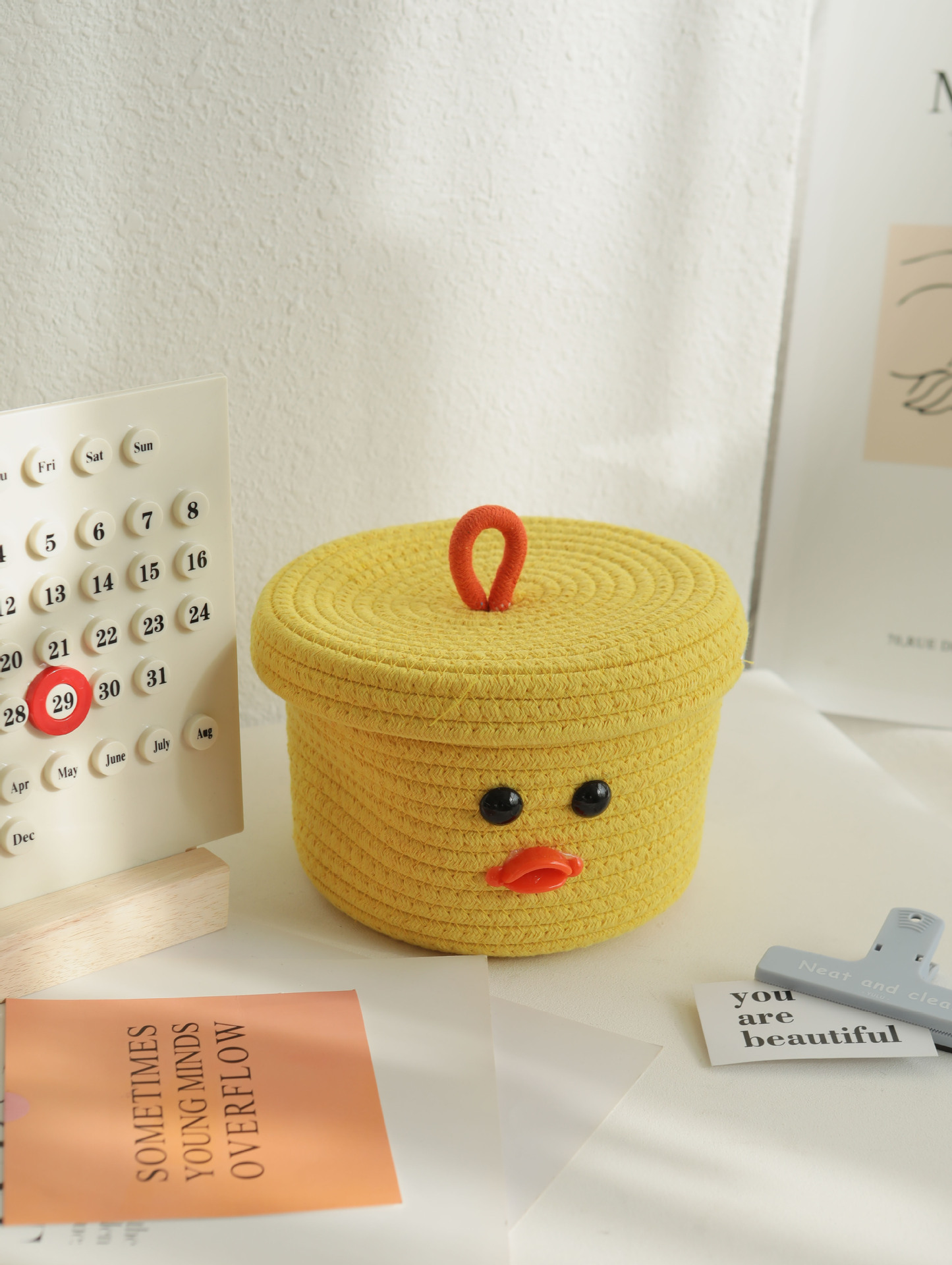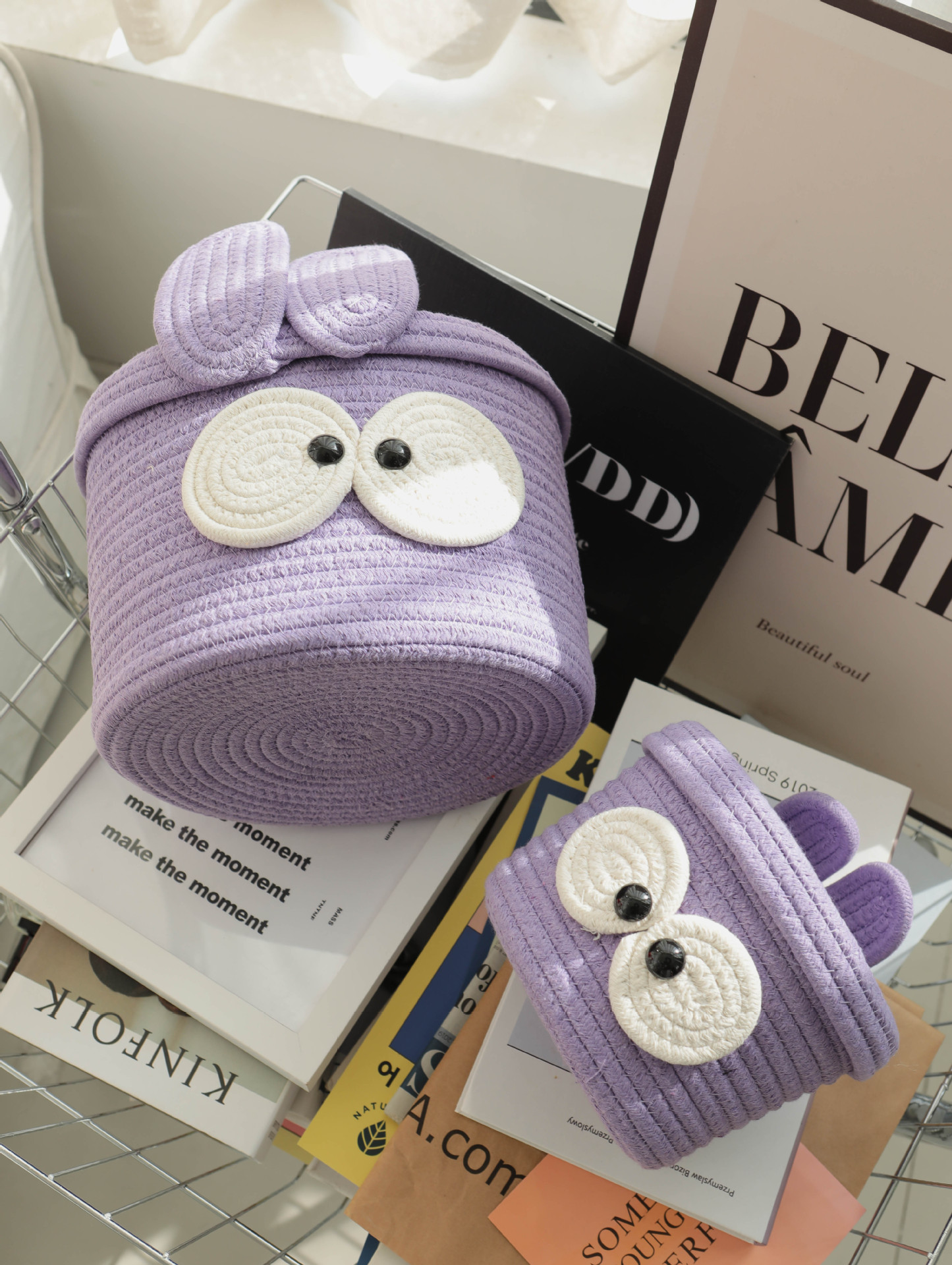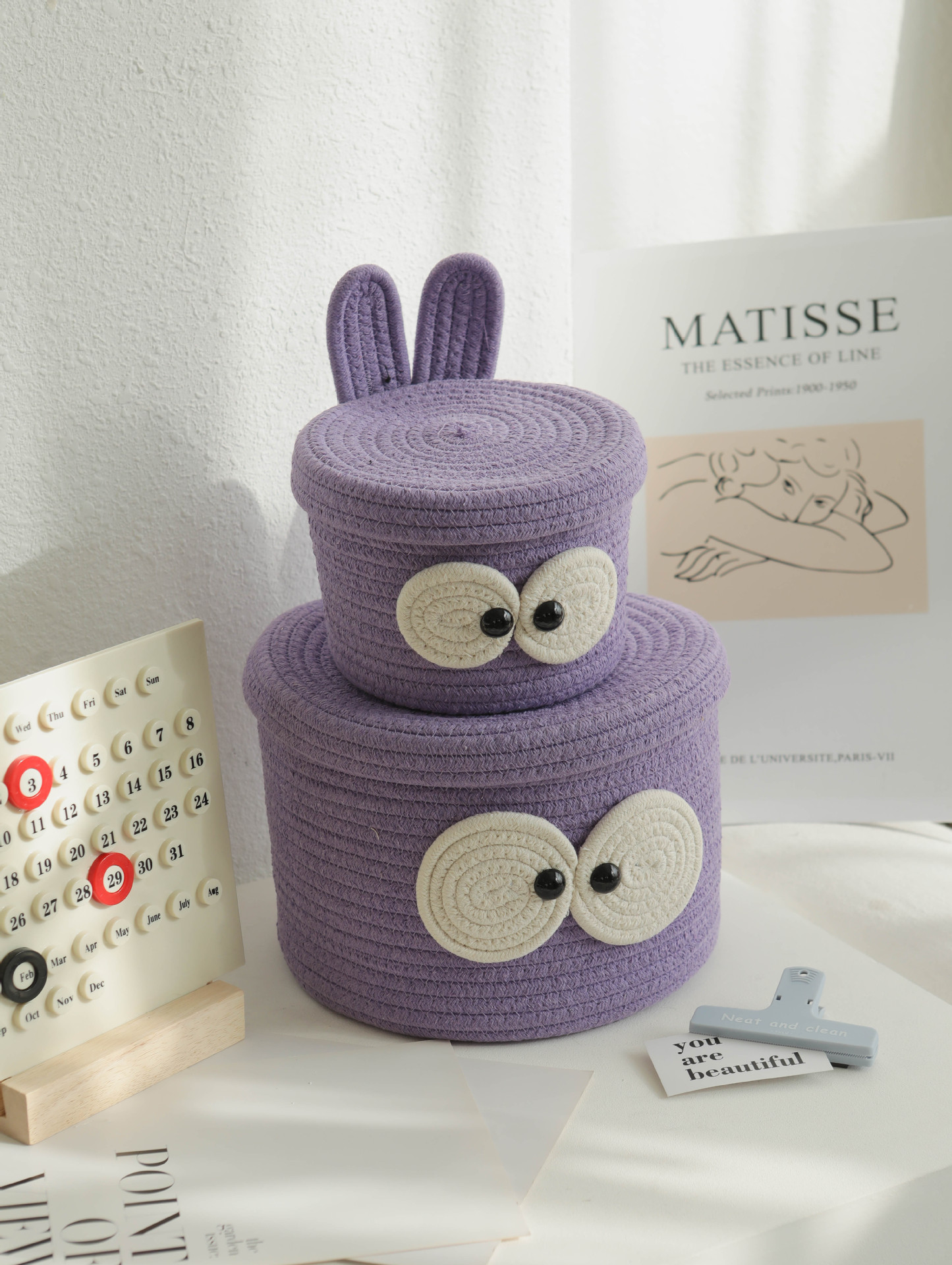 Bowknot 데스크탑 코튼 로프 보관 바구니 귀여운 스타일 보관 바구니 뚜껑 짠 저장 상자 제조 업체 재고스토어 가기