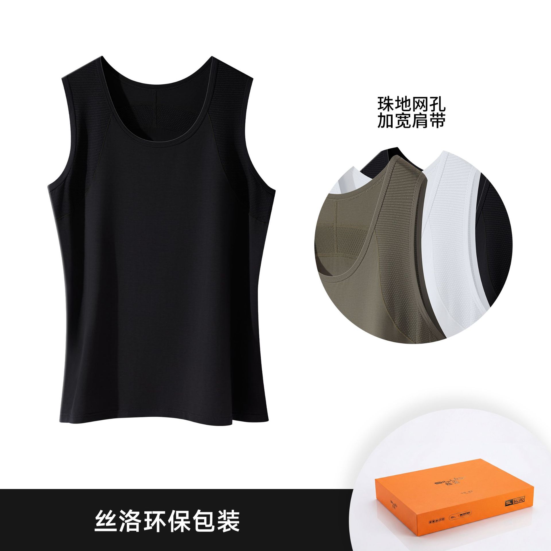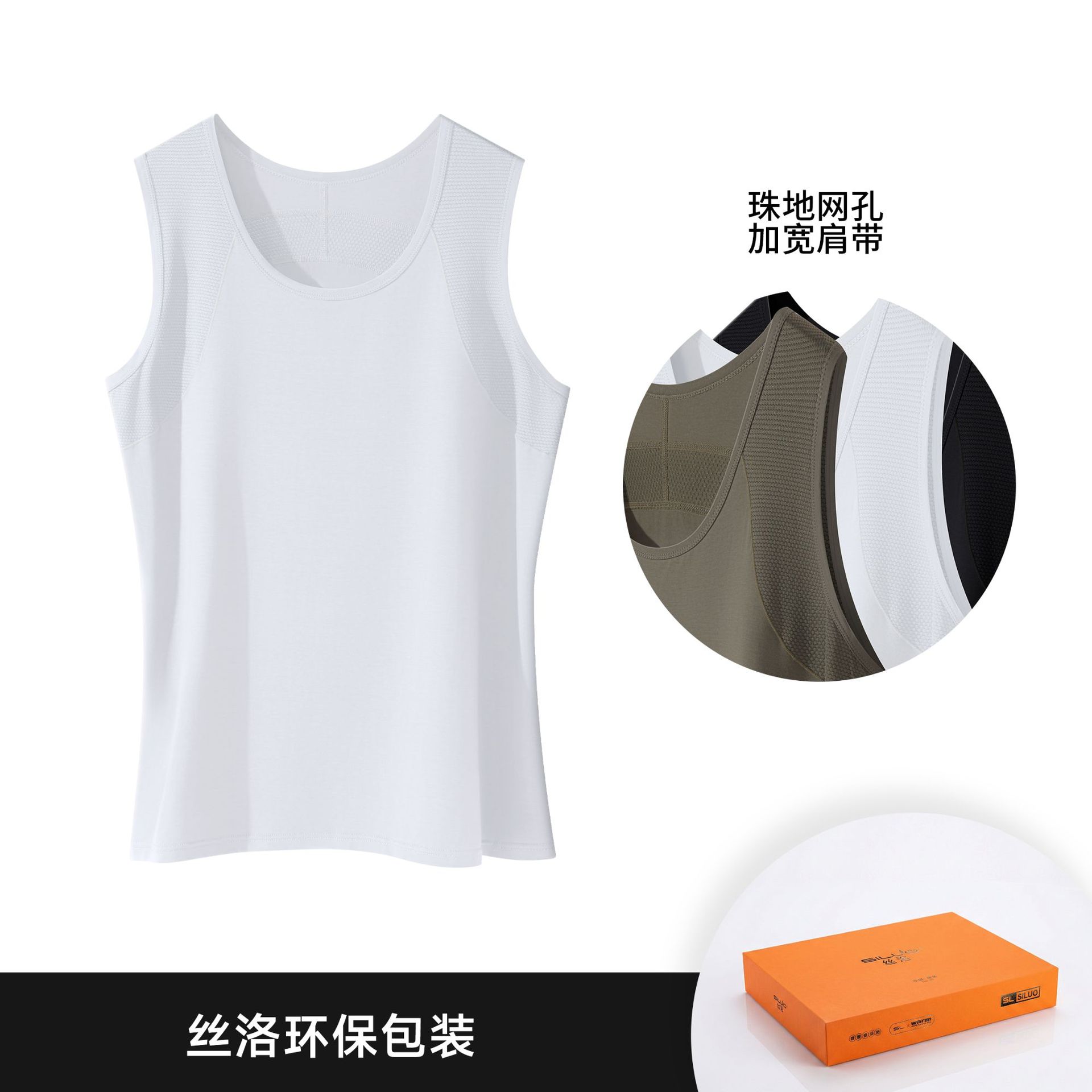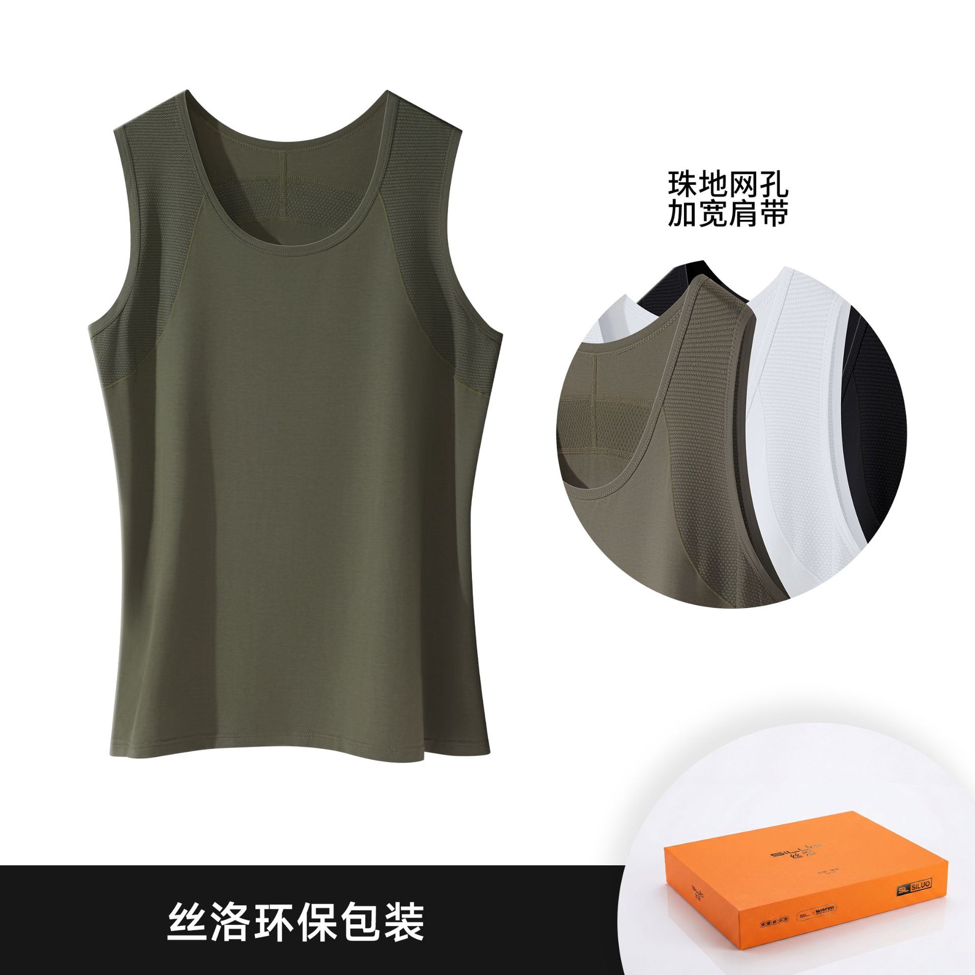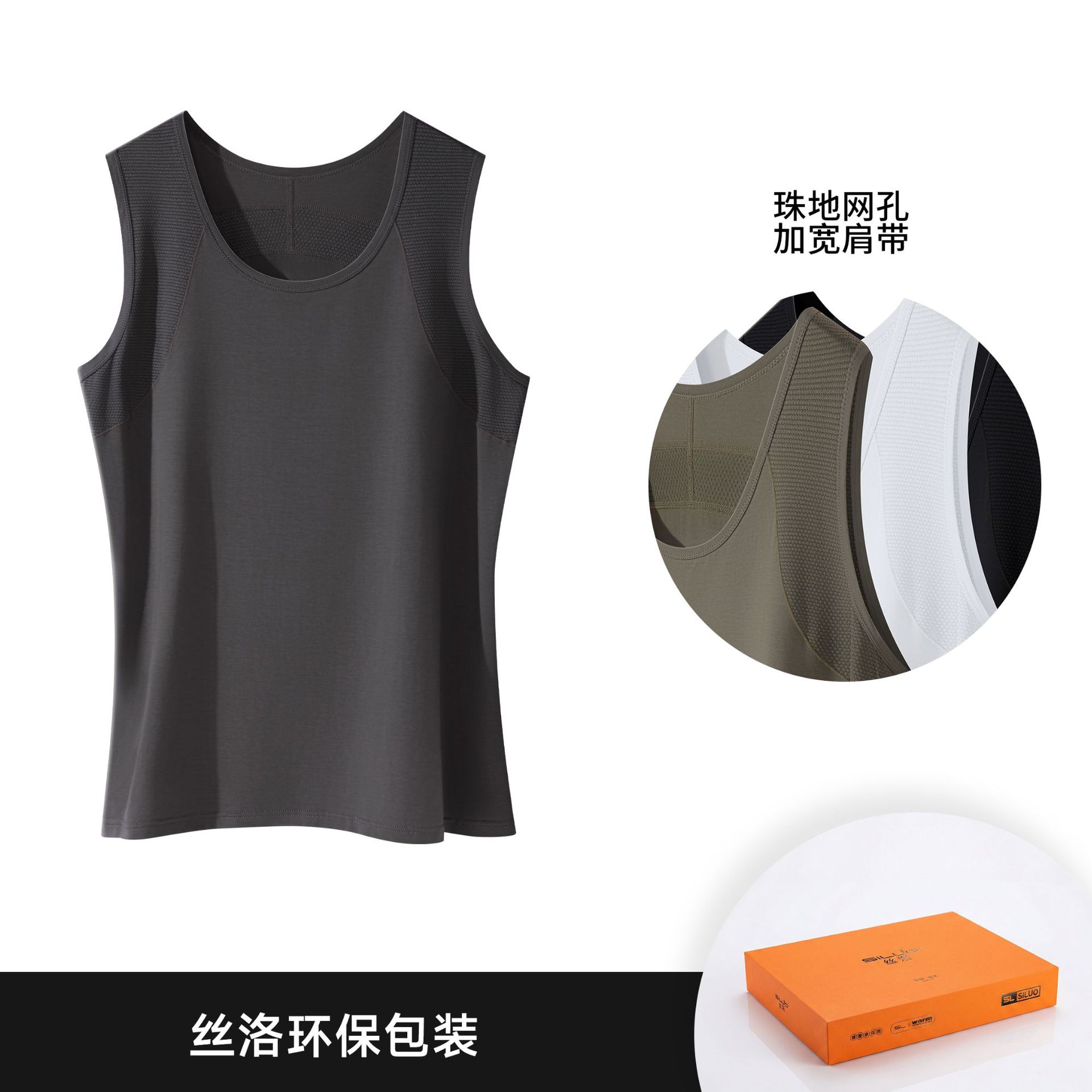 남성용 스포츠 스플라이스 와이드 숄더 조끼, 무봉제 통기성 메쉬, 가볍고 편안하며 부드러운 아이스 실크 탑
