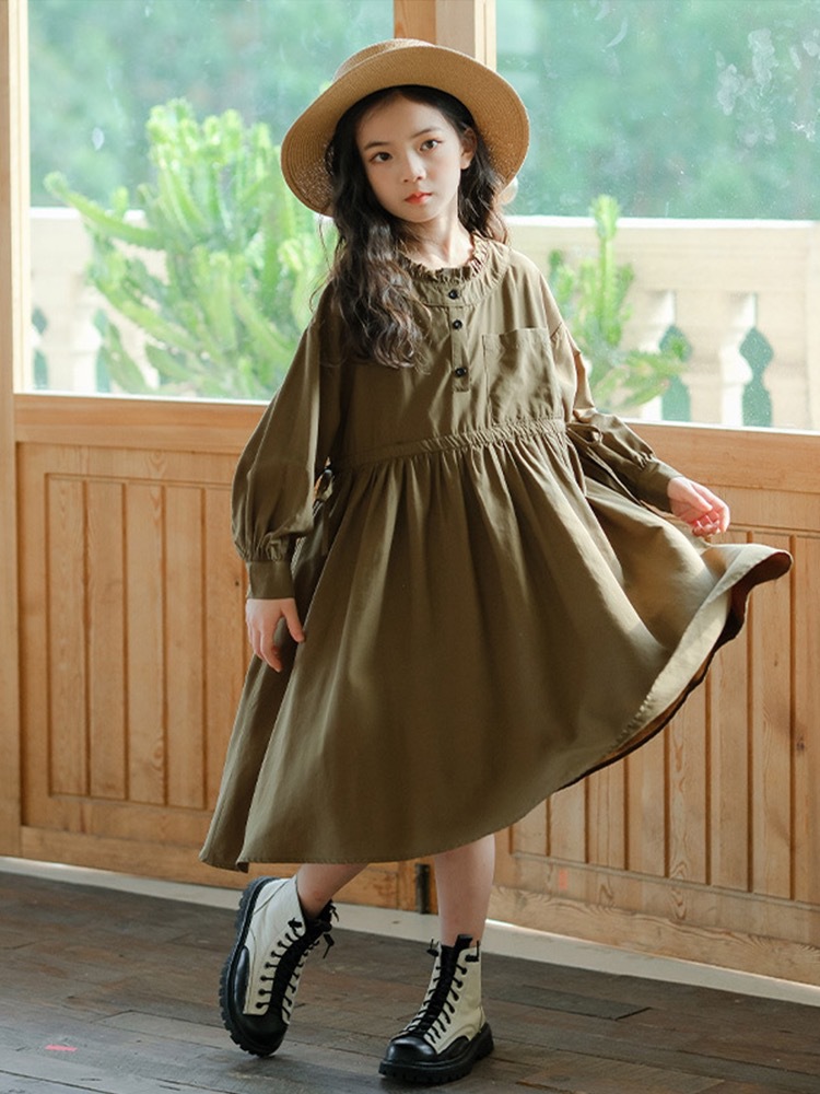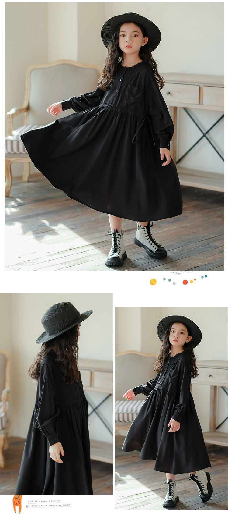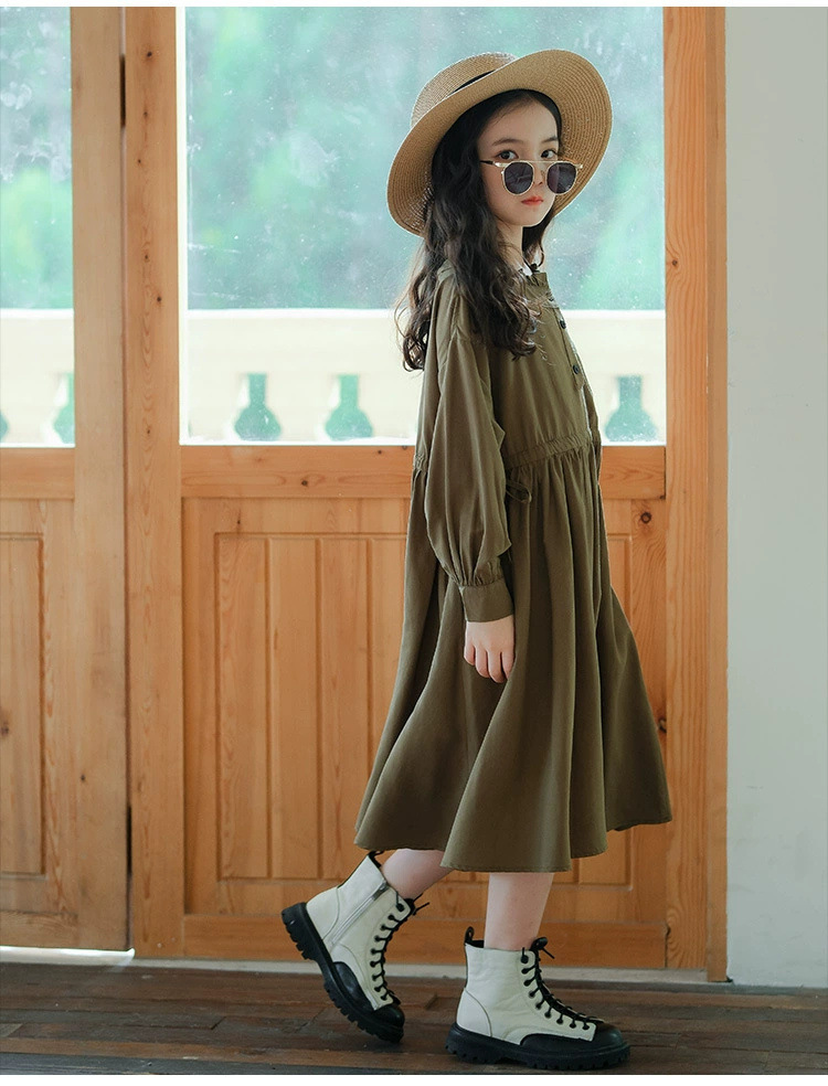 소녀의 원피스 봄과 가을 2024 새로운 스타일의 어린이 서양식 봄 의류 미디어와 큰 아이들의 얇은 긴 소매 모리 허리 타이트 스커트스토어 가기