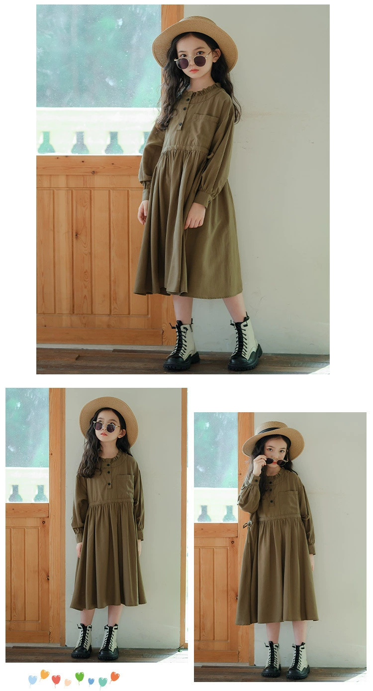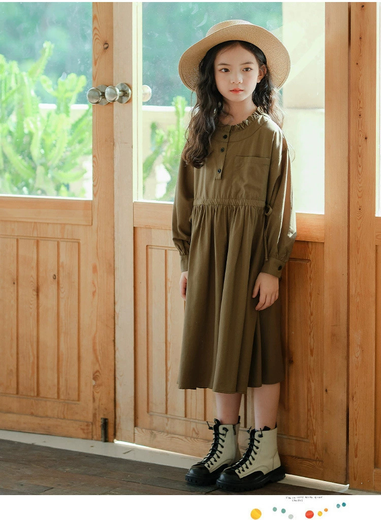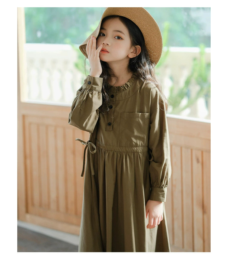 소녀의 원피스 봄과 가을 2024 새로운 스타일의 어린이 서양식 봄 의류 미디어와 큰 아이들의 얇은 긴 소매 모리 허리 타이트 스커트
