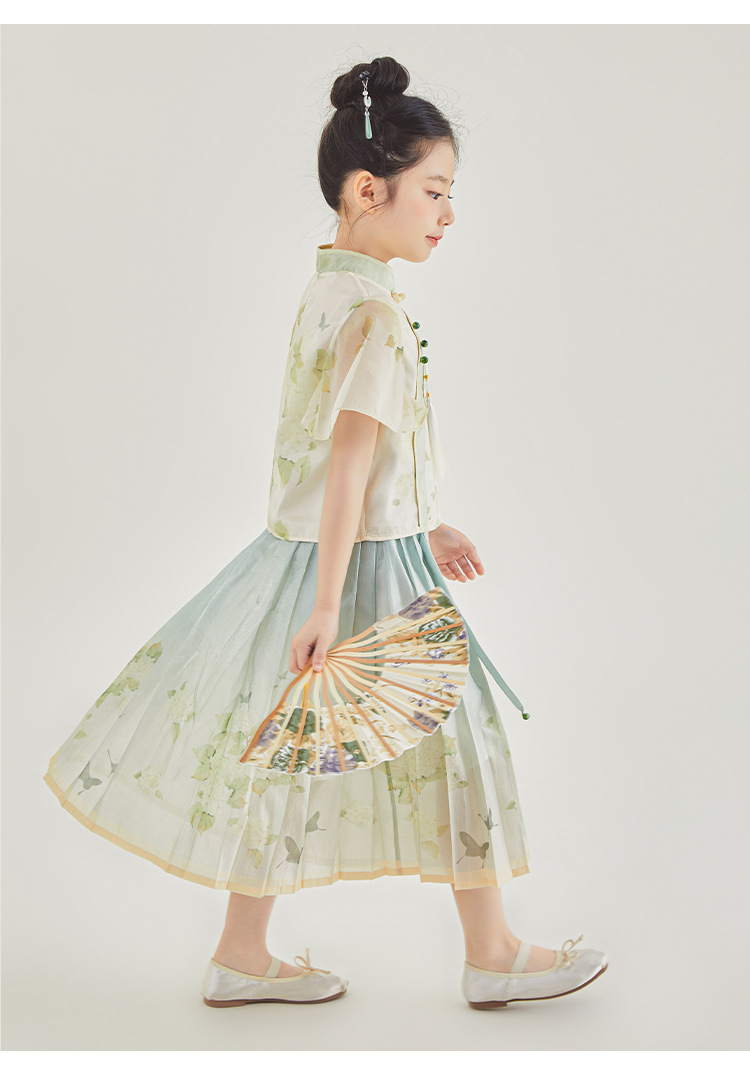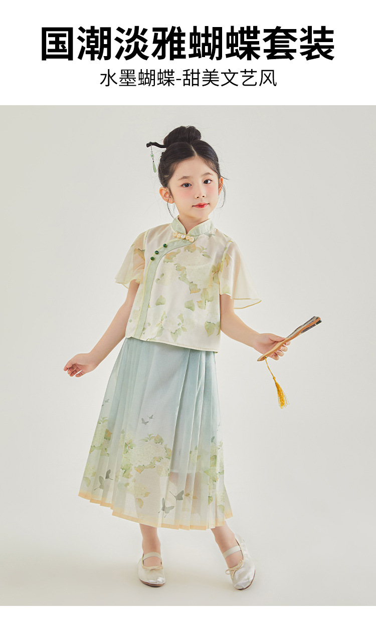 여자 정장 2025 여름 새로운 중국 스타일 반팔 말 얼굴 치마 아동 의류 투피스 세트 도매 Nili 캐주얼스토어 가기