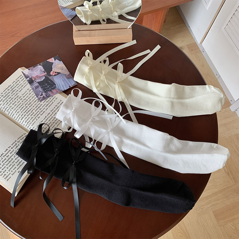 흰색 종아리 양말 여성 달콤한 레이스 업 활 양말, 봄과 여름 다목적 일본 jk 스타일 Lolita 스타킹스토어 가기