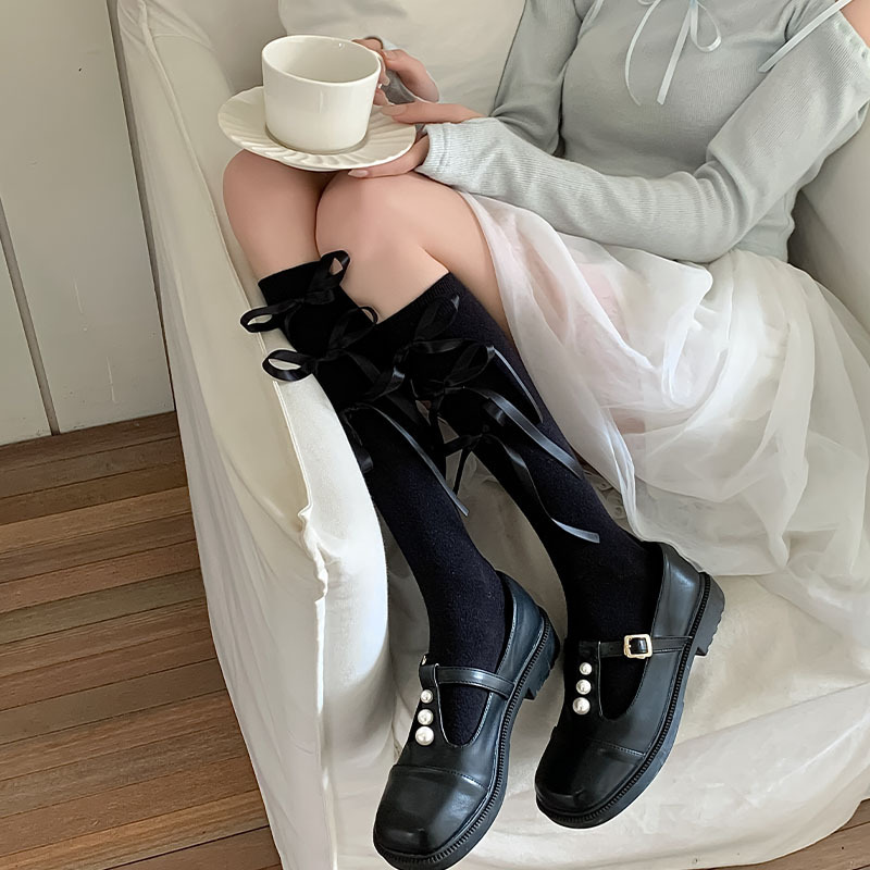 흰색 종아리 양말 여성 달콤한 레이스 업 활 양말, 봄과 여름 다목적 일본 jk 스타일 Lolita 스타킹