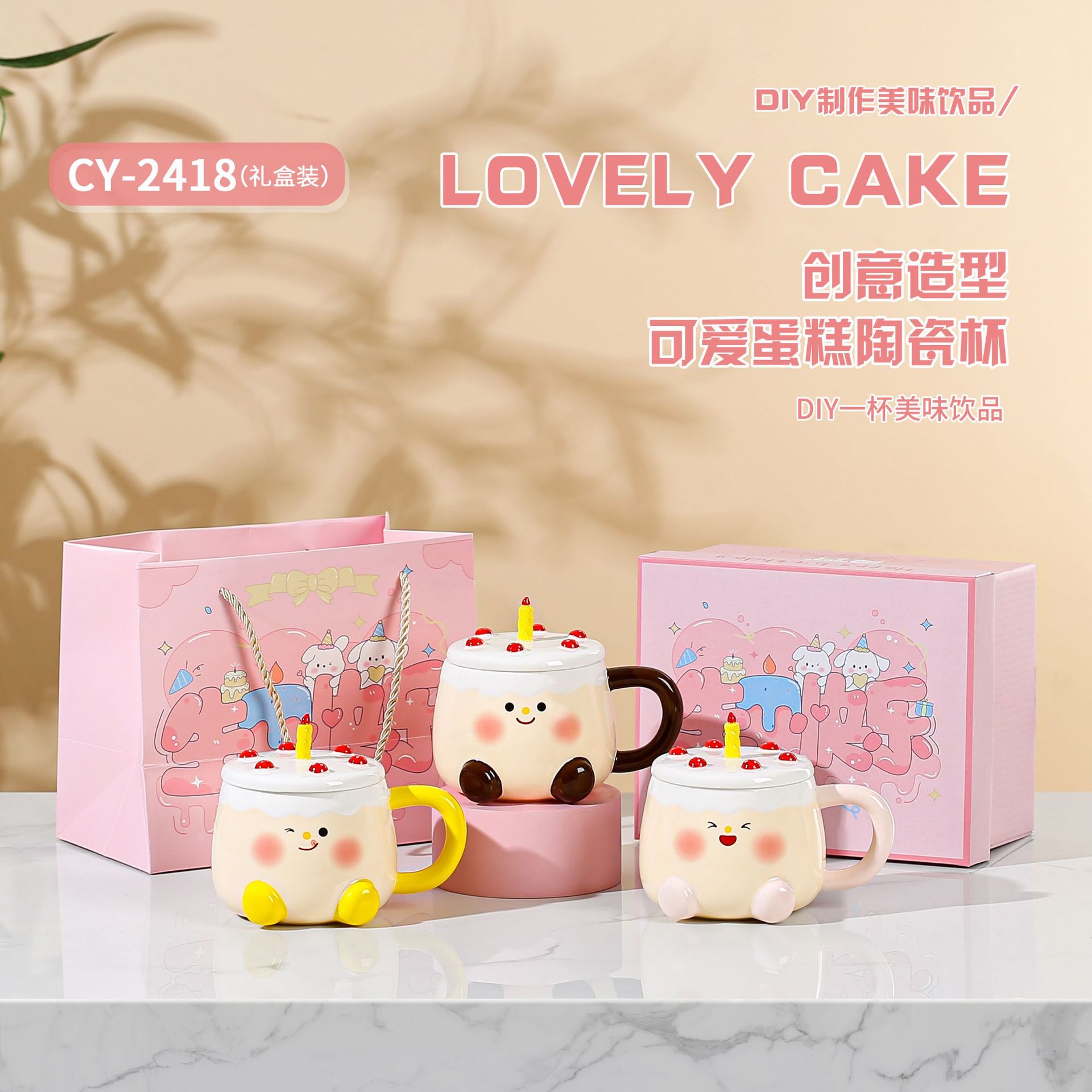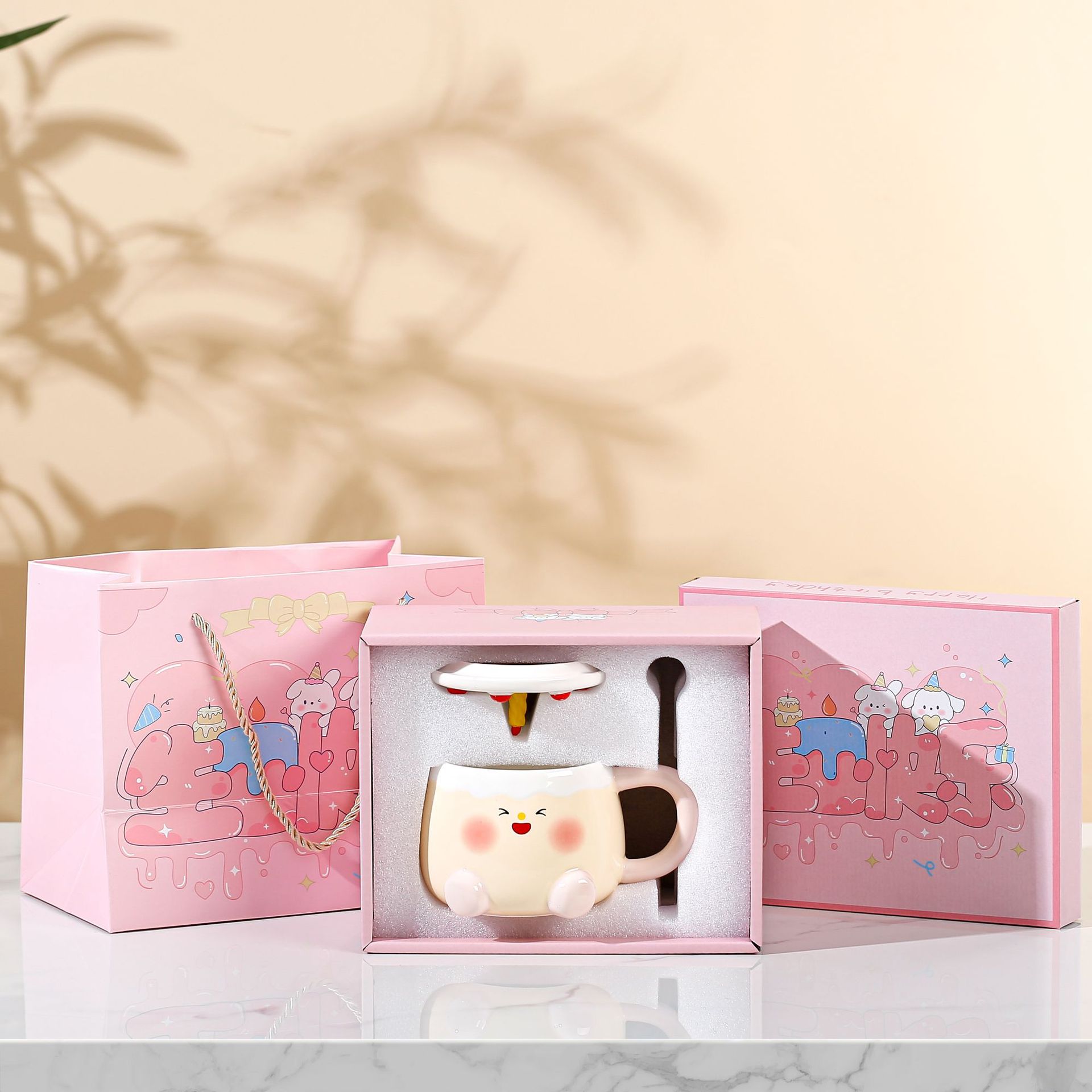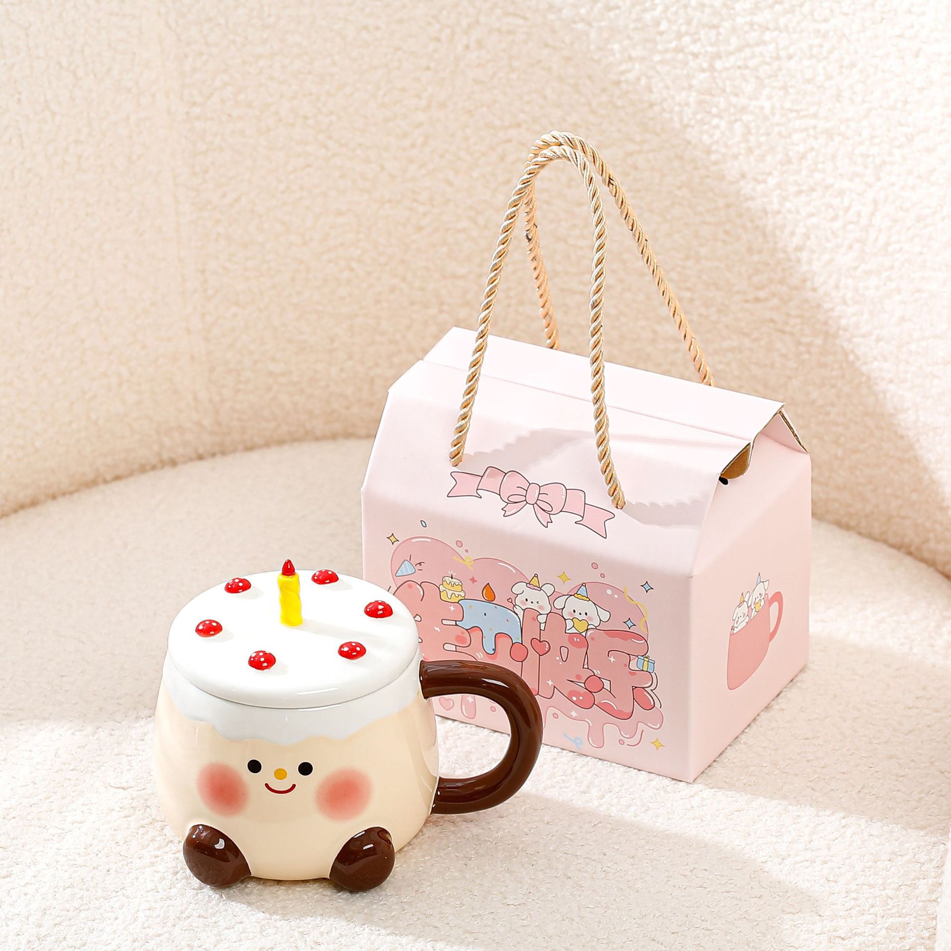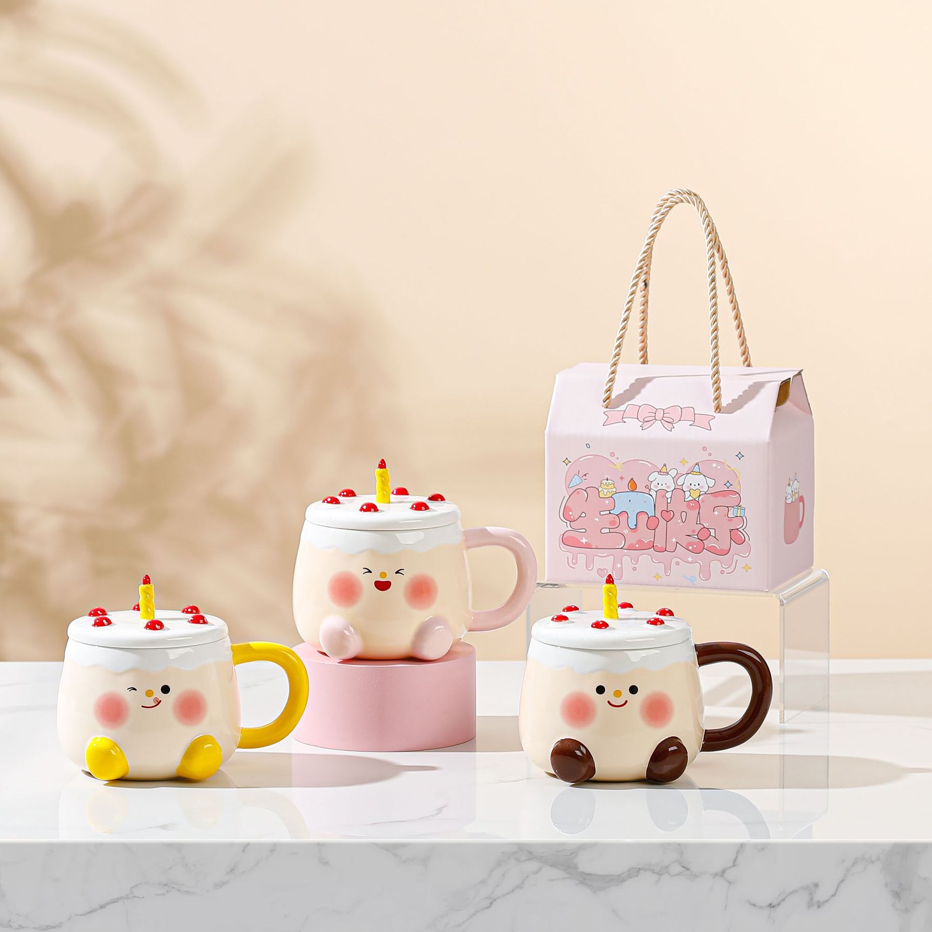 생일 선물 세라믹 컵 높은 찾고 선물 상자 가정용 찻잔 뚜껑 귀여운 케이크 컵 아기 선물스토어 가기