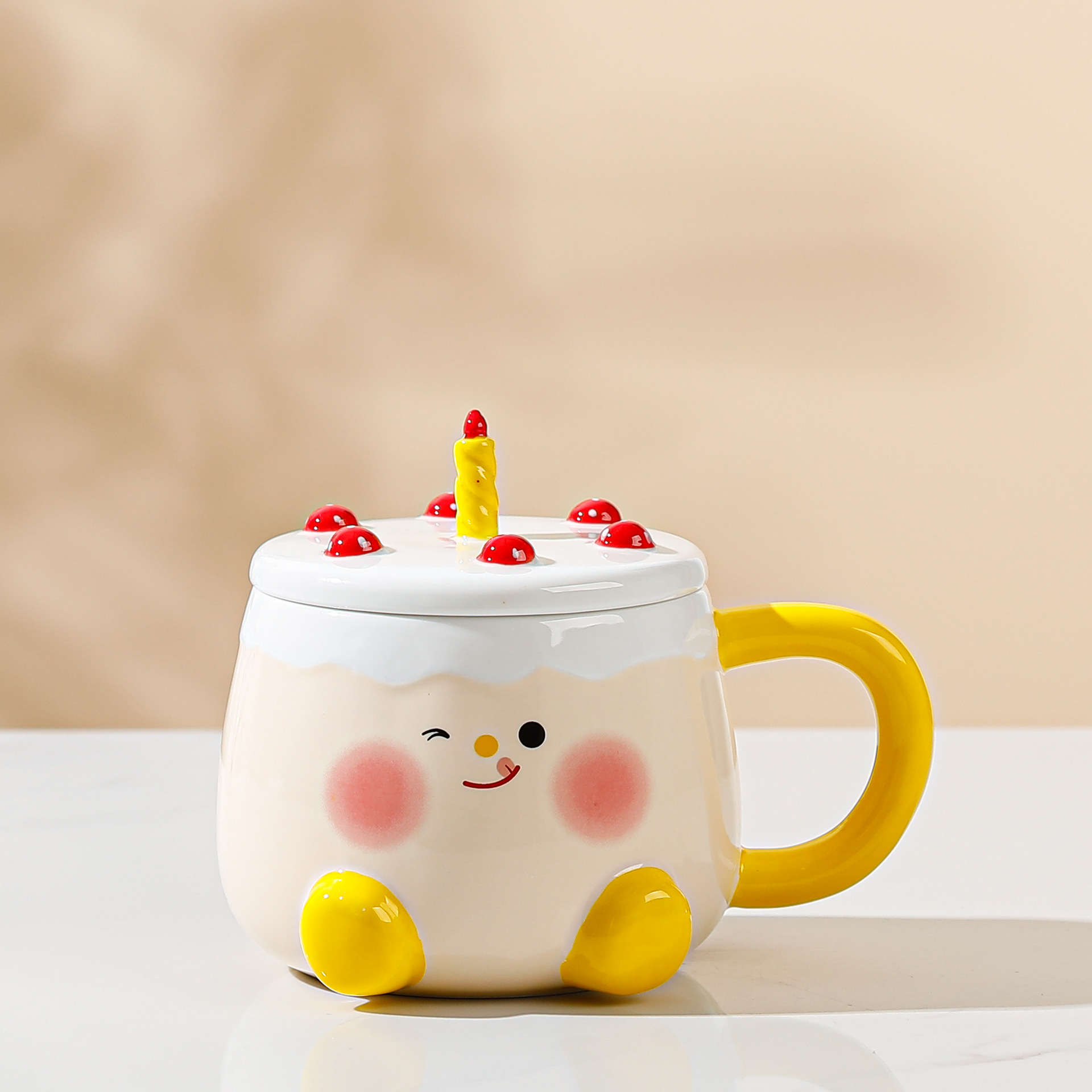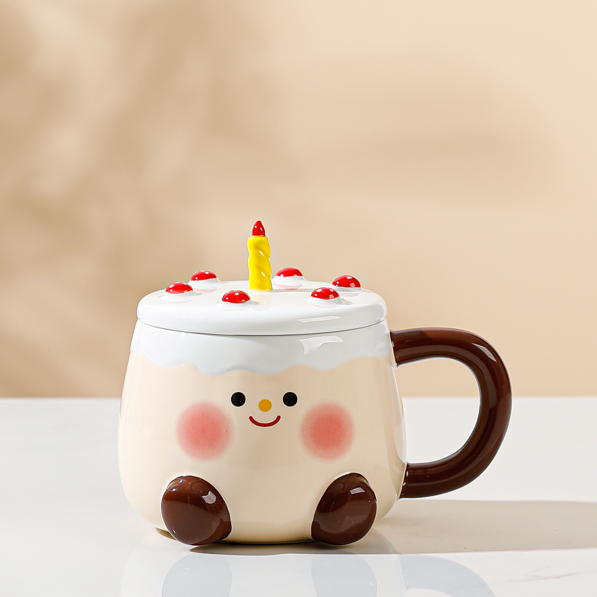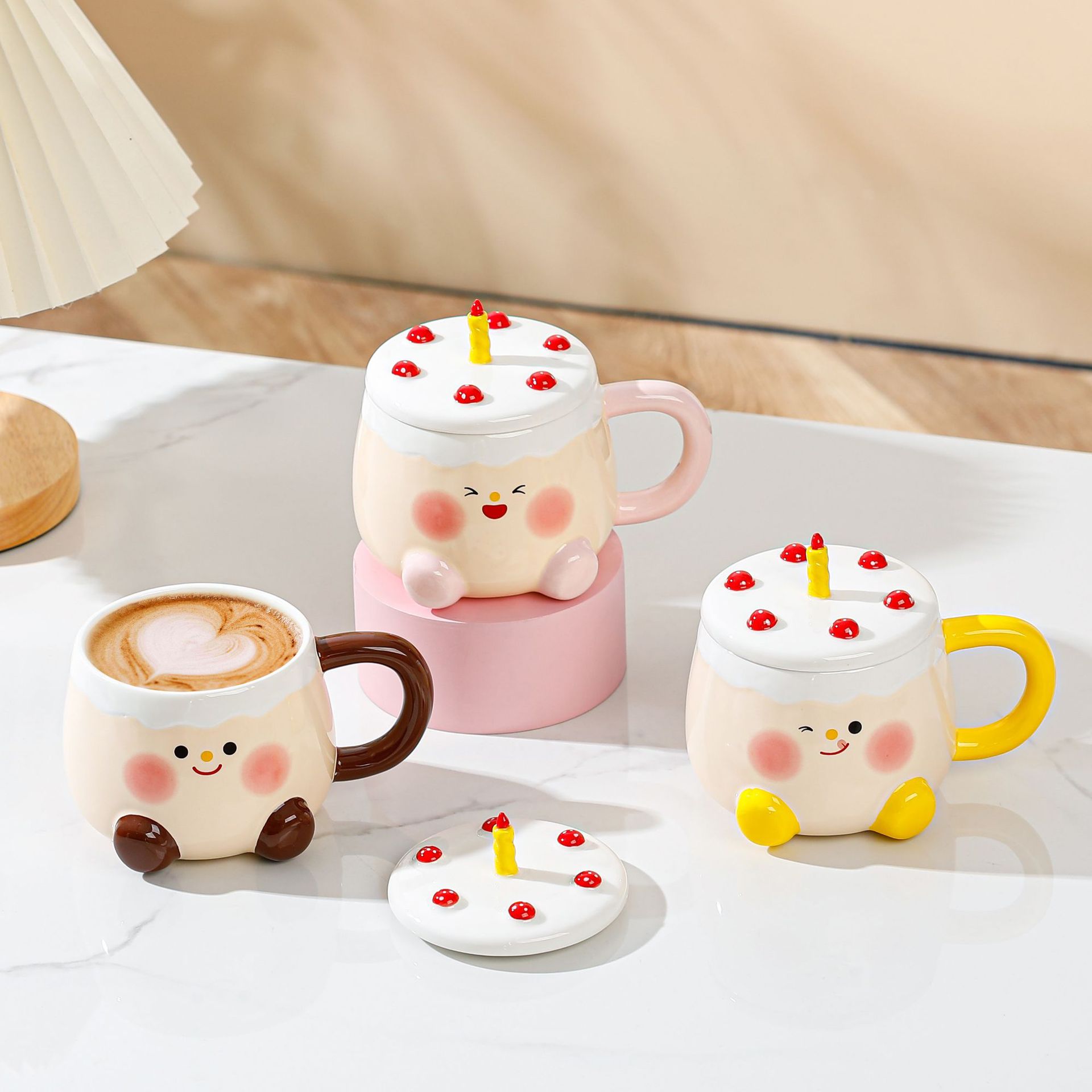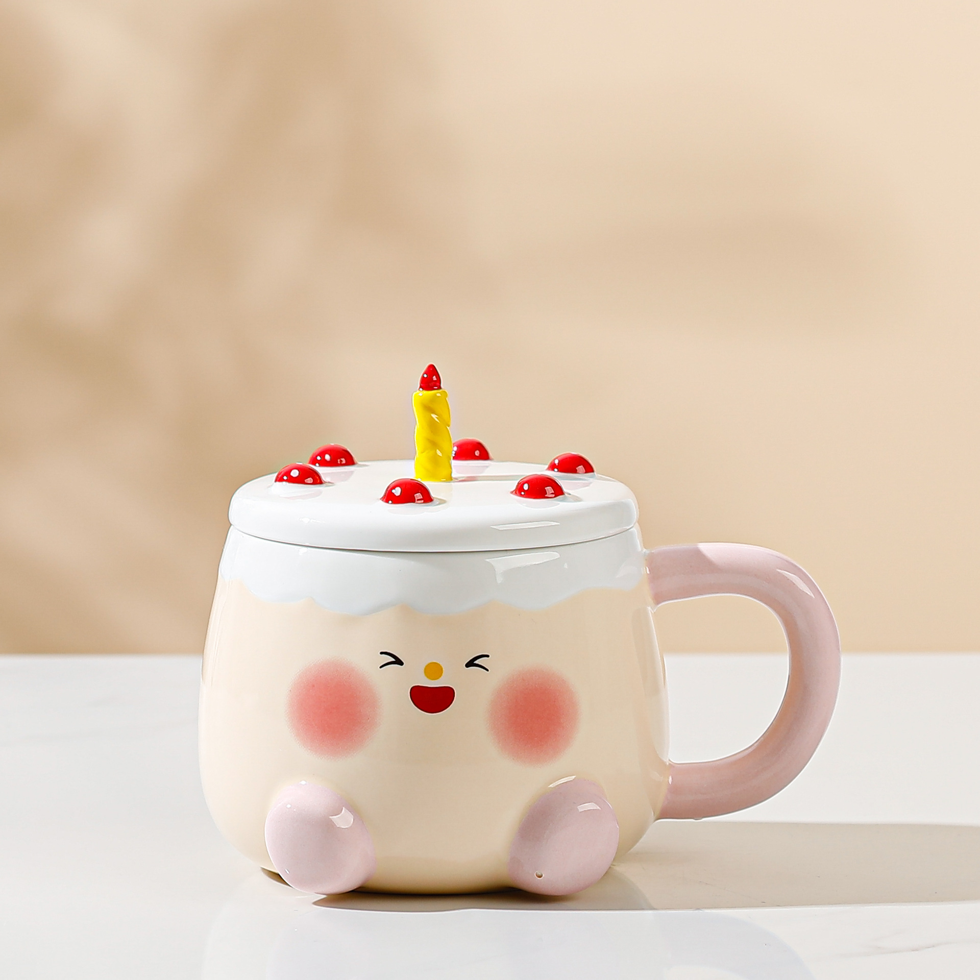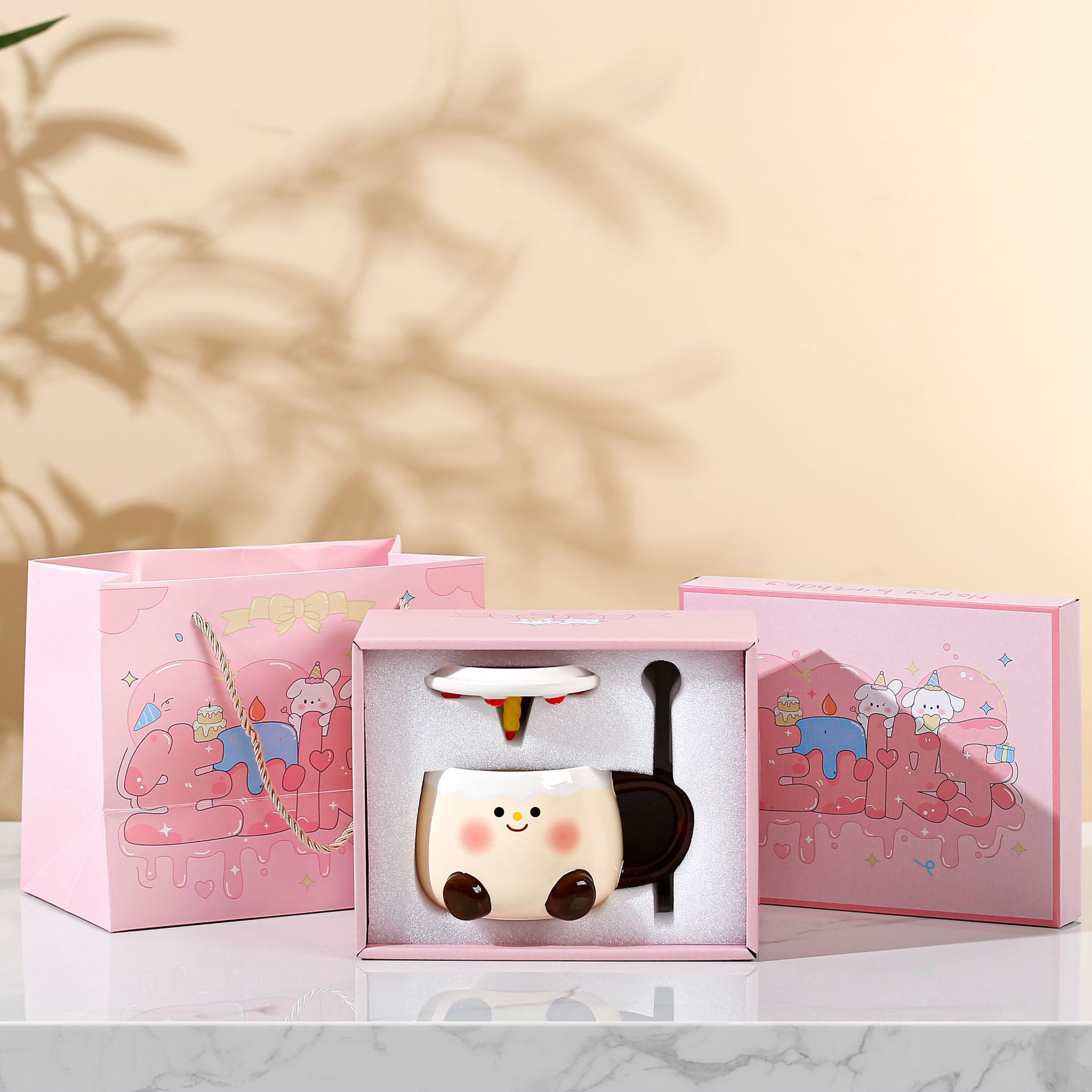 생일 선물 세라믹 컵 높은 찾고 선물 상자 가정용 찻잔 뚜껑 귀여운 케이크 컵 아기 선물스토어 가기