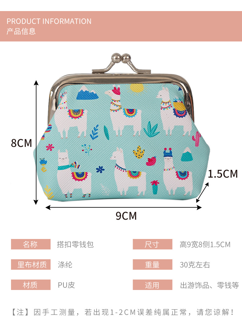 재고 도매 유럽과 미국의 패션 알파카 여성 동물 버클 동전 지갑 키 케이스 보석 가방 작은 선물스토어 가기