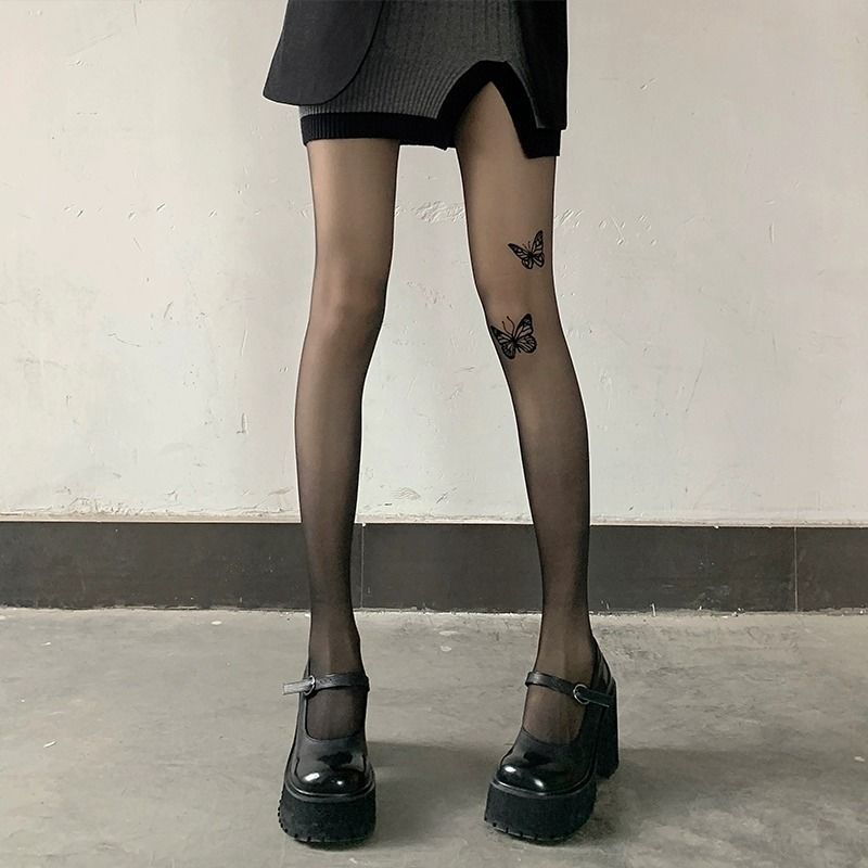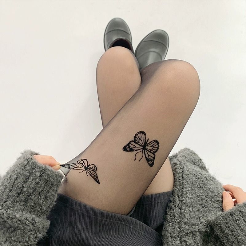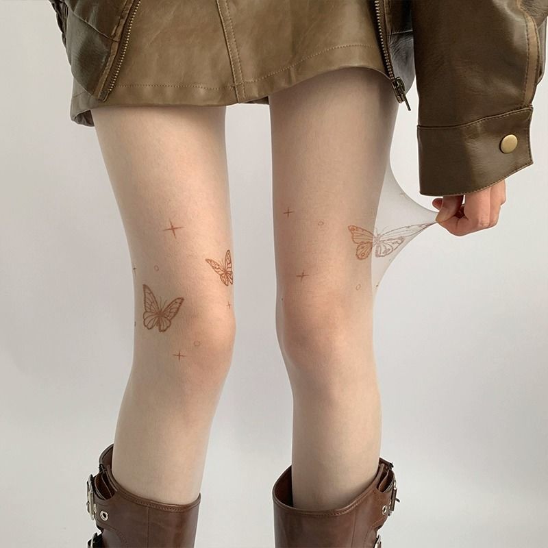 큰 나비 2024 피부색 새로운 스타킹 흰색 순수 스타일 여성 봄과 가을 팬티 스타킹 흰색 실크 프린트 레깅스스토어 가기