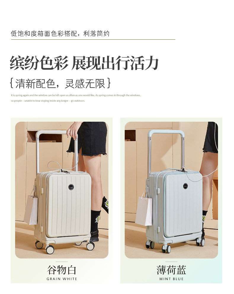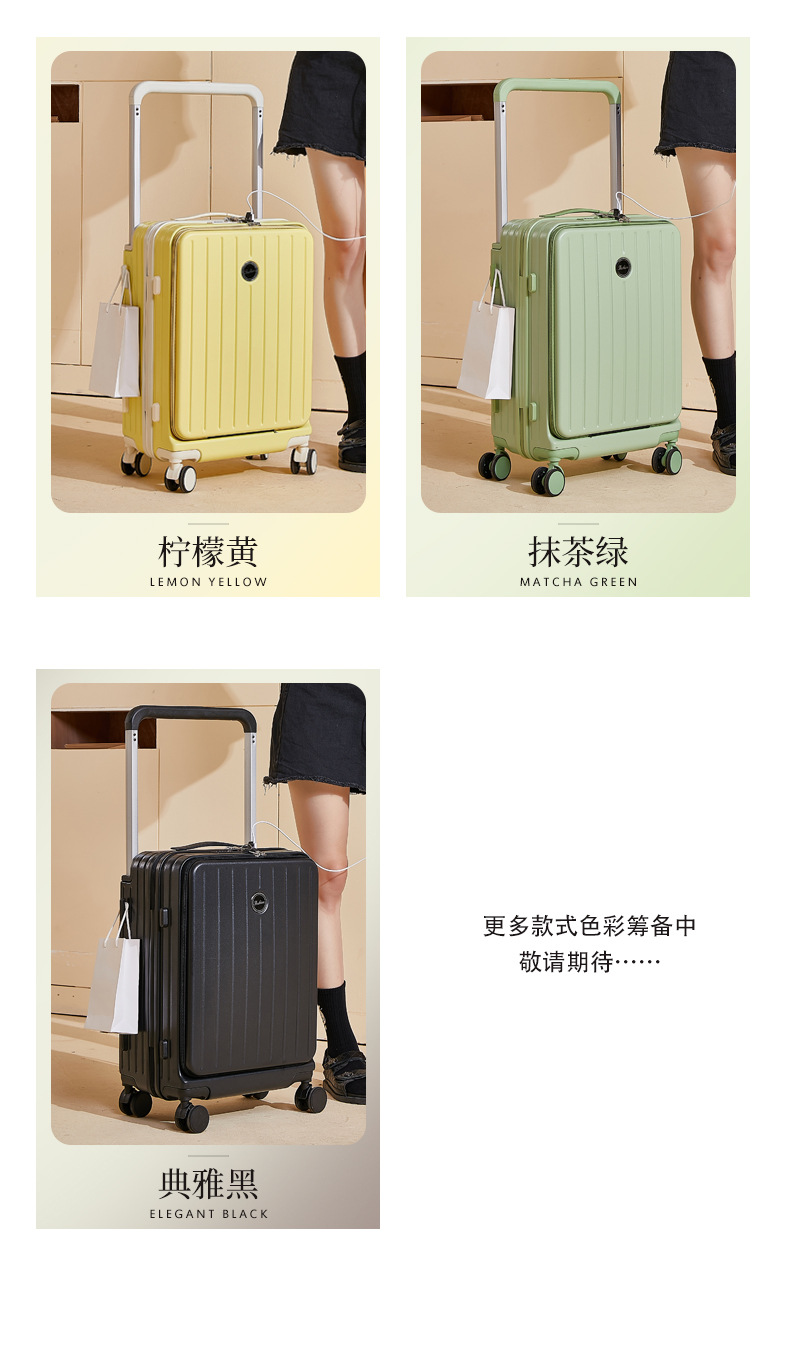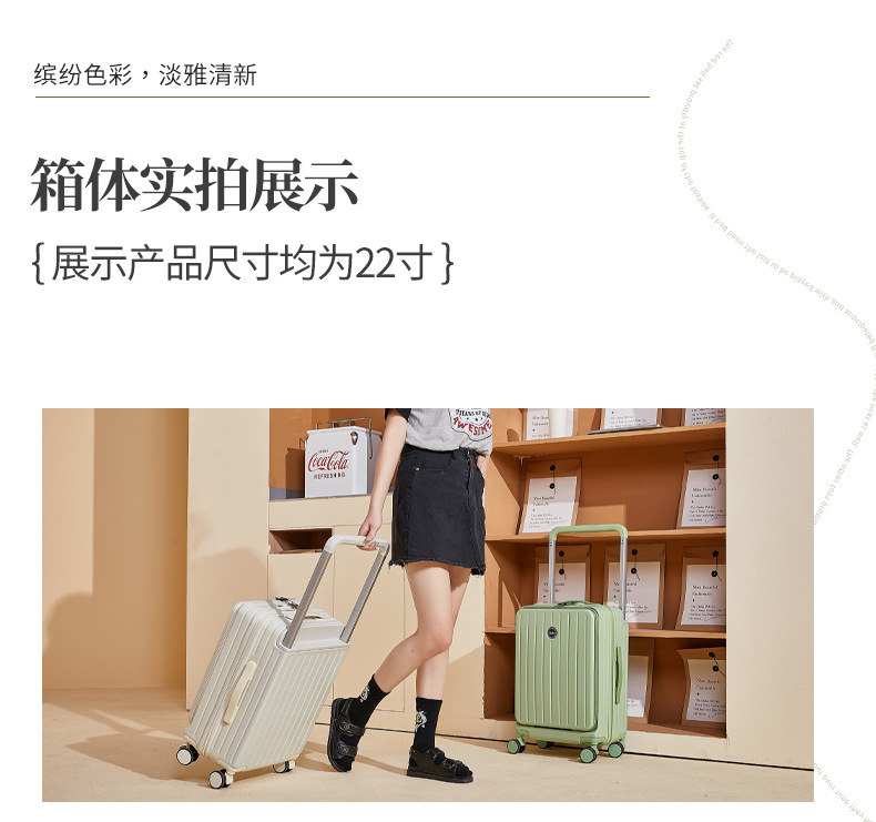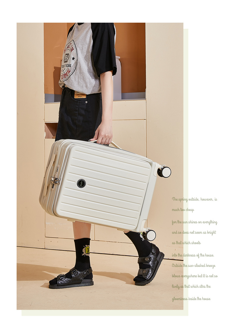 넓은 트롤리 수하물 여성 전면 개방 다기능 높은 모양의 탑승 상자 24 인치 남성 비밀번호 여행 가방스토어 가기