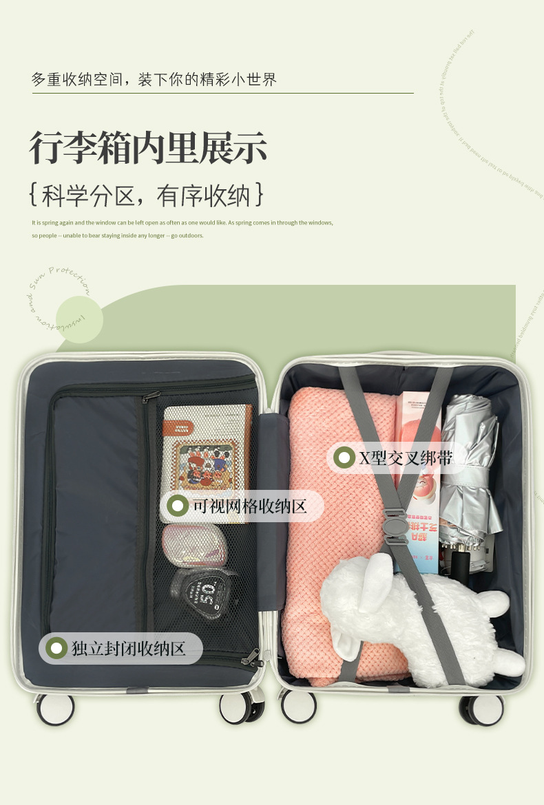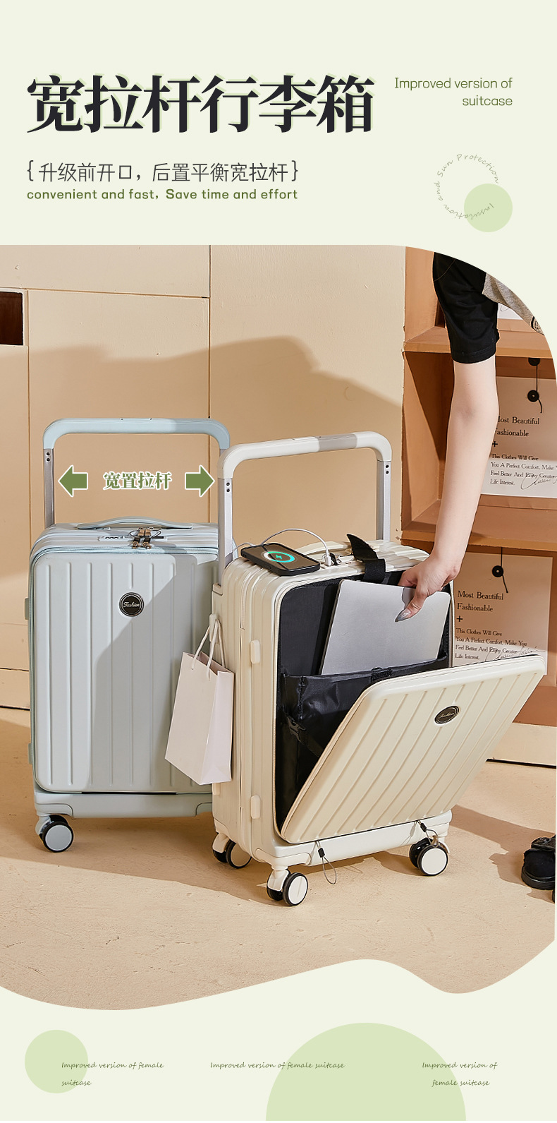 넓은 트롤리 수하물 여성 전면 개방 다기능 높은 모양의 탑승 상자 24 인치 남성 비밀번호 여행 가방