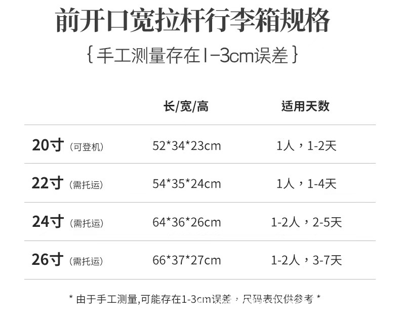 • 20 인치 (탑승 기준에 따라-상자가 파손되어 무료로 교체 됨)