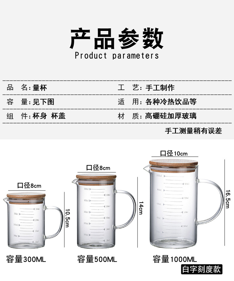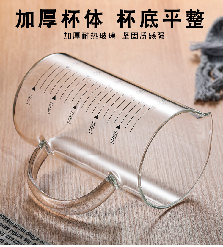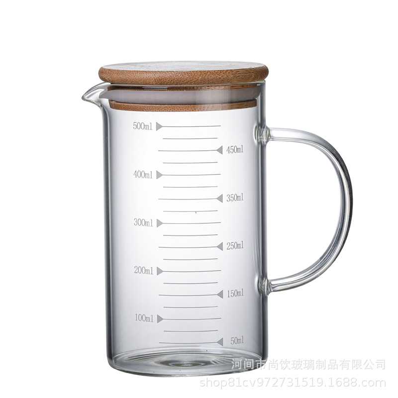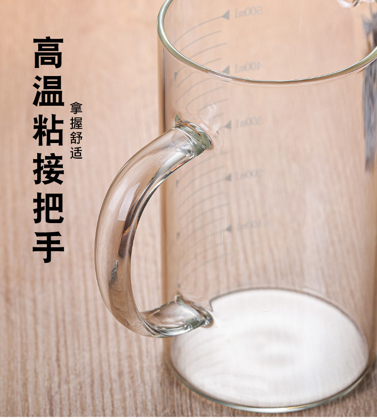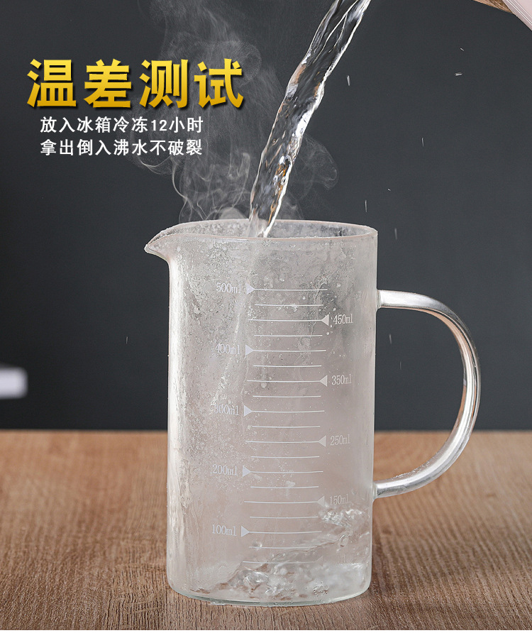 저온 내성 유리 측정 컵 스케일 주방 용품 대용량 물 컵 뚜껑과 손잡이 붕규산염 측정 컵