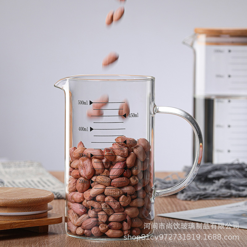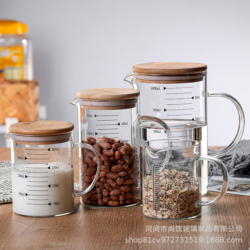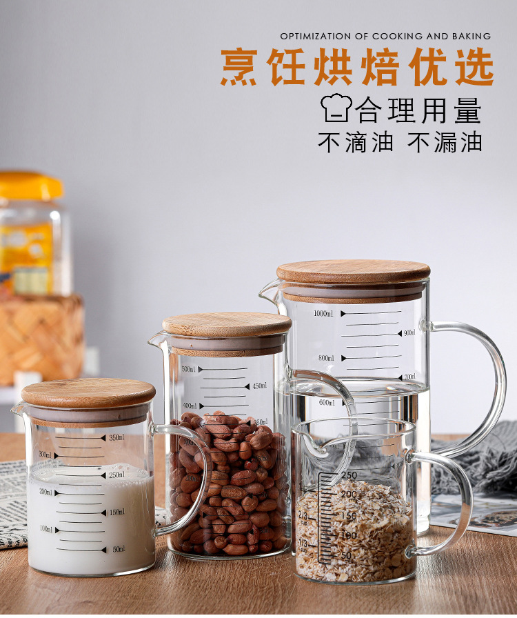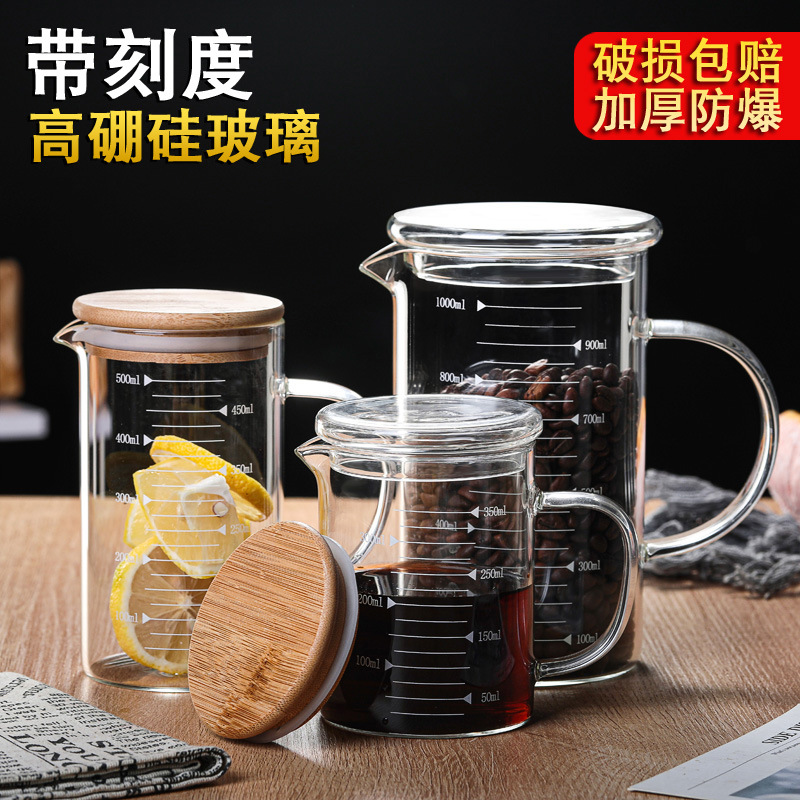 저온 내성 유리 측정 컵 스케일 주방 용품 대용량 물 컵 뚜껑과 손잡이 붕규산염 측정 컵스토어 가기