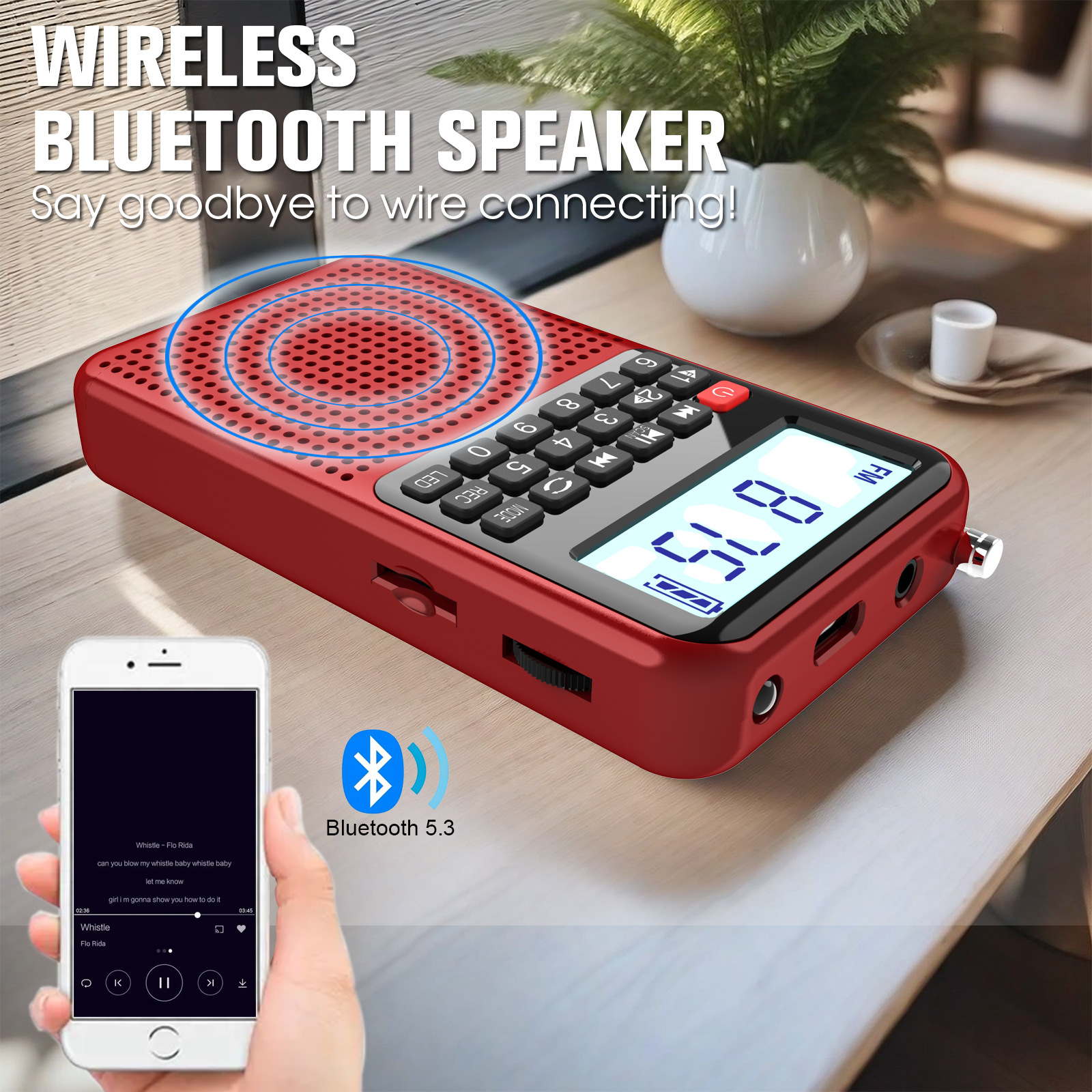 해피 동반 L-628 라디오 충전식 카드 슬롯 오디오 블루투스 플레이어 휴대용 디지털 대형 스피커