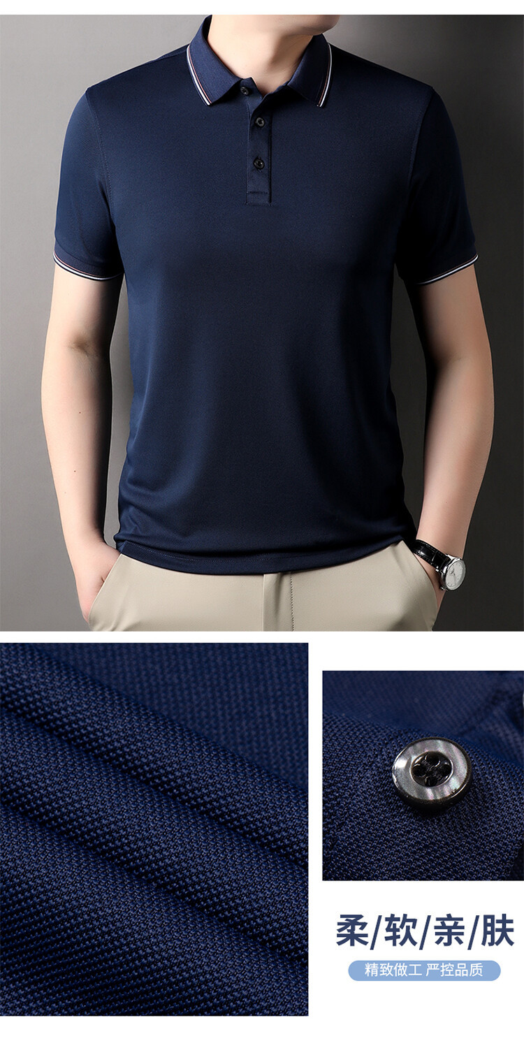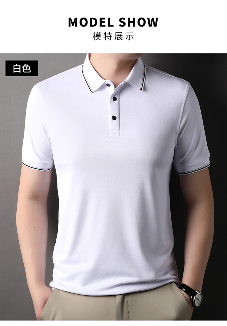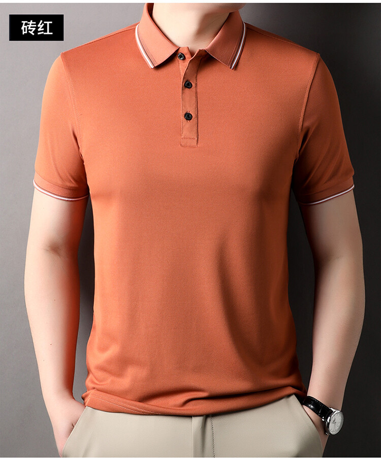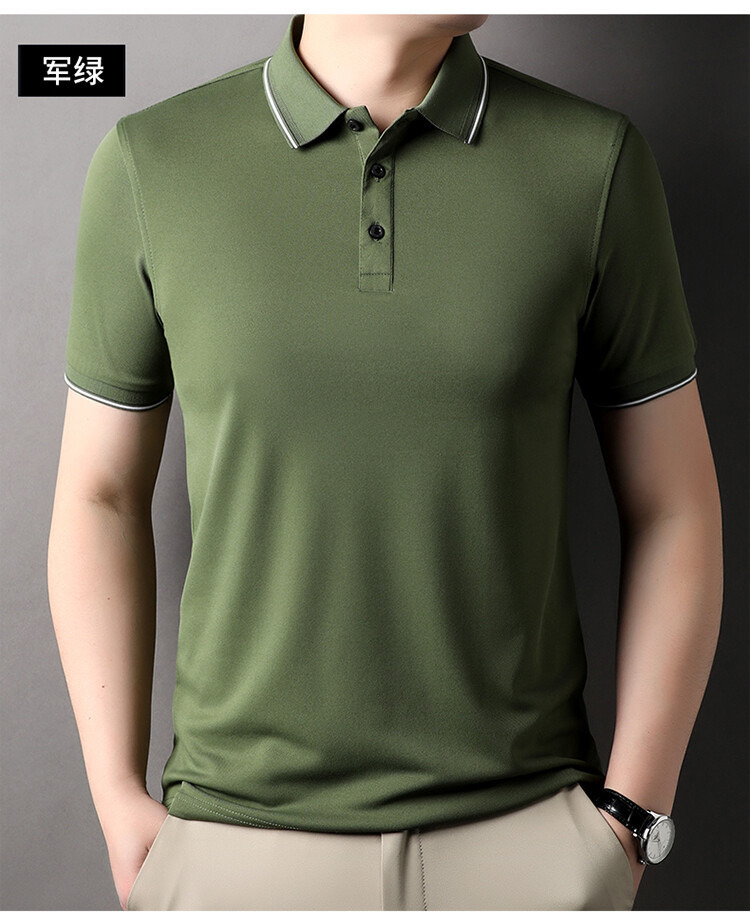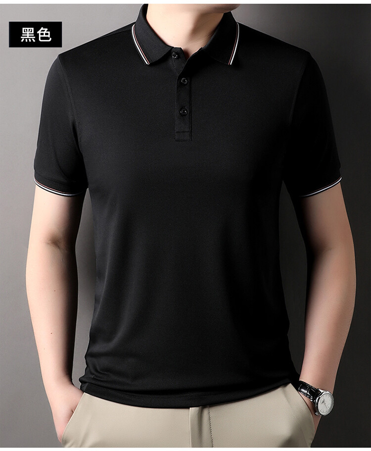 2024 여름 캐주얼 폴로 셔츠 남성용 옷깃 반팔 티셔츠 젊고 중년 남성용 느슨한 단색 반소매 티셔츠