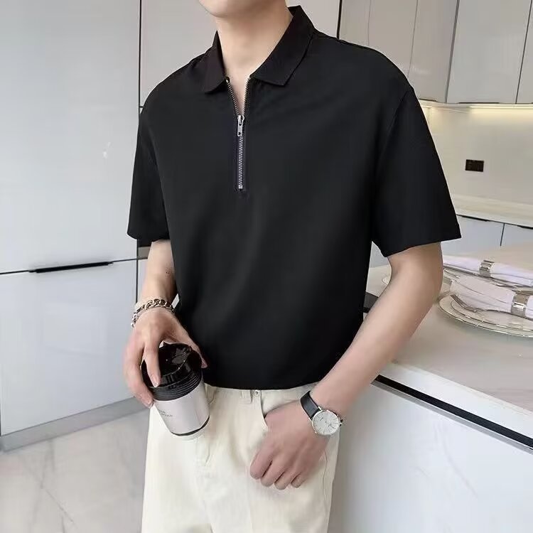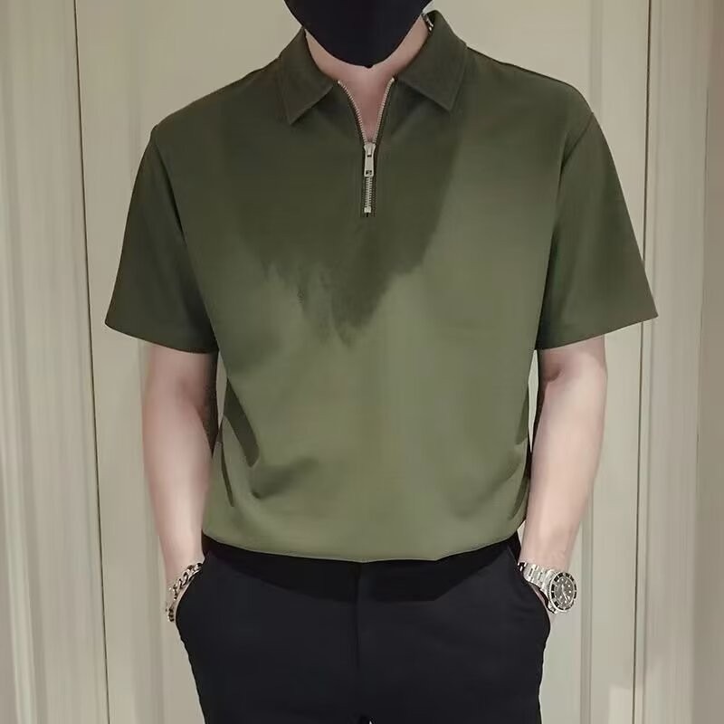 트렌디 한 브랜드 남성 폴로 셔츠 여름 짧은 소매 2024 새로운 패션 남성 캐주얼 비즈니스 옷깃 하프 지퍼 탑