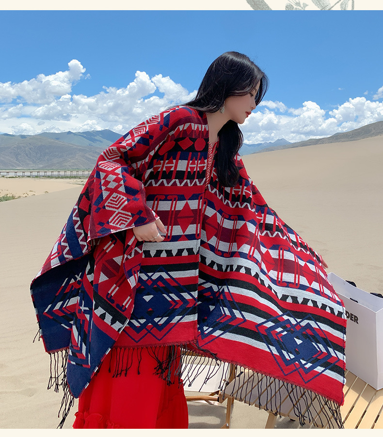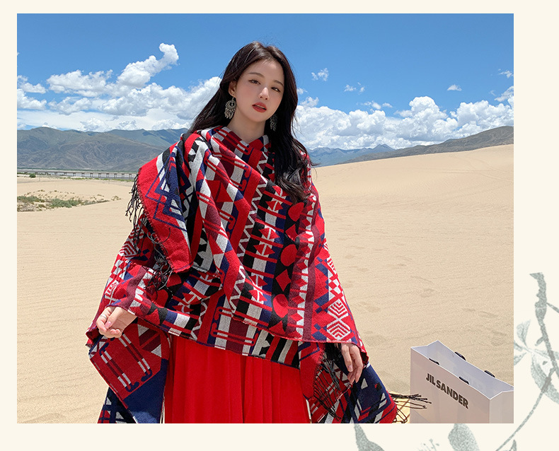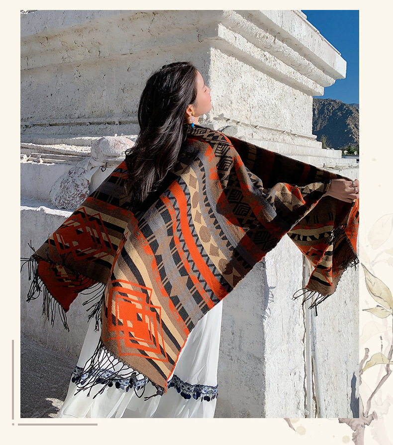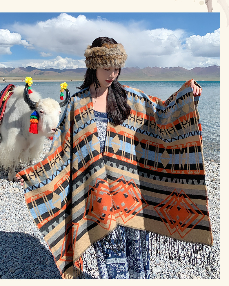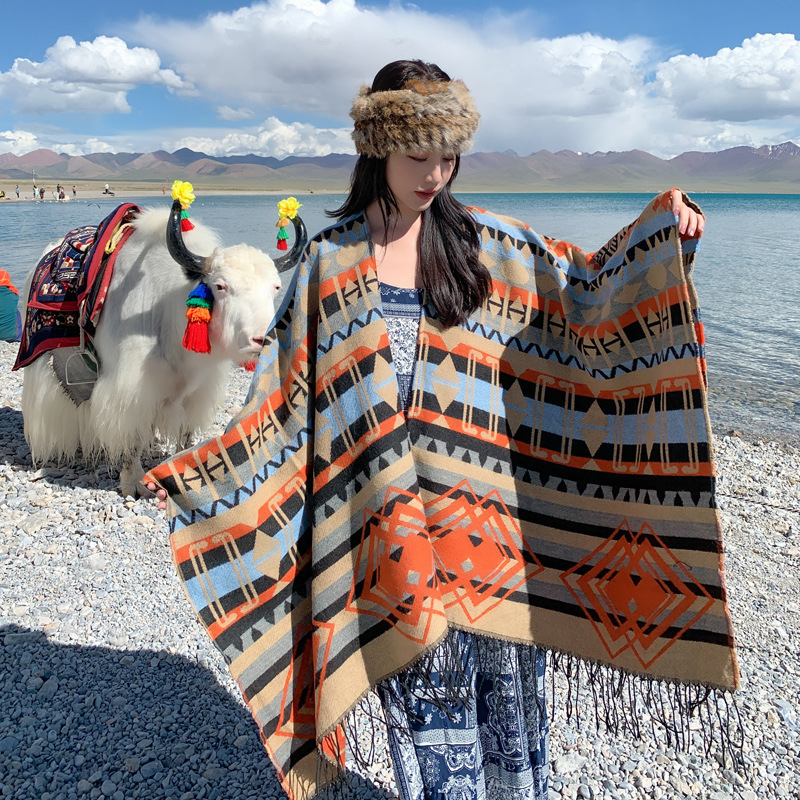 민족 스타일 따뜻한 두꺼운 보시 술 목도리 신장 티베트 여행 사진 망토 망토 이중 사용 스카프스토어 가기
