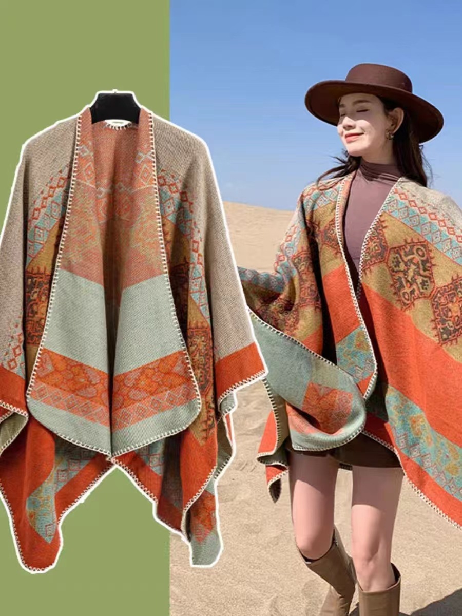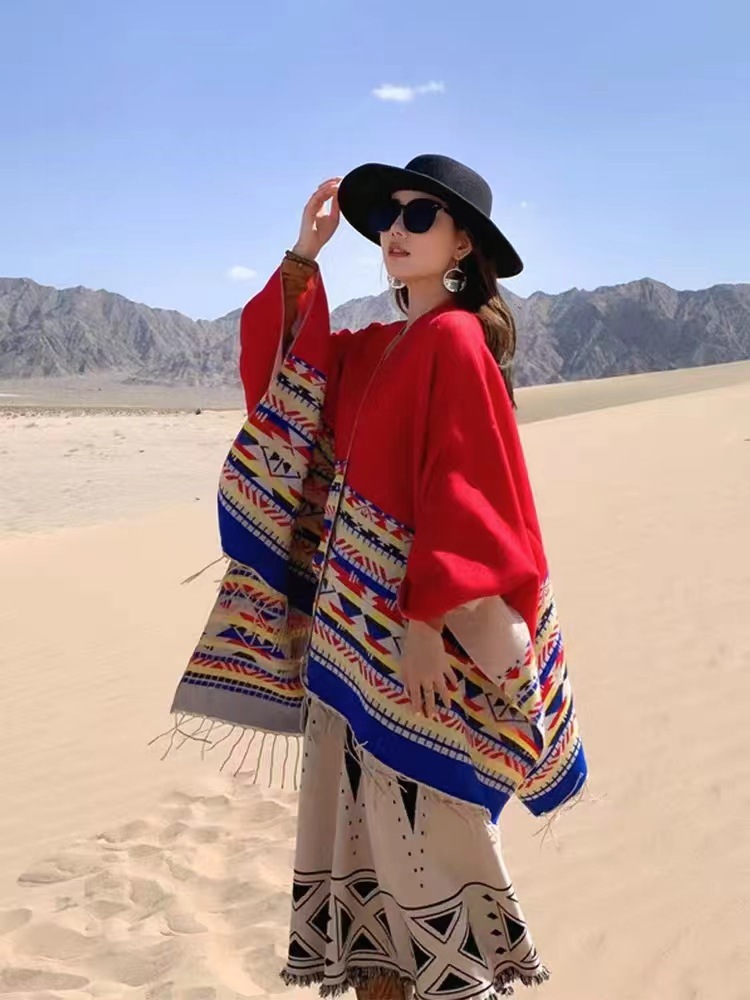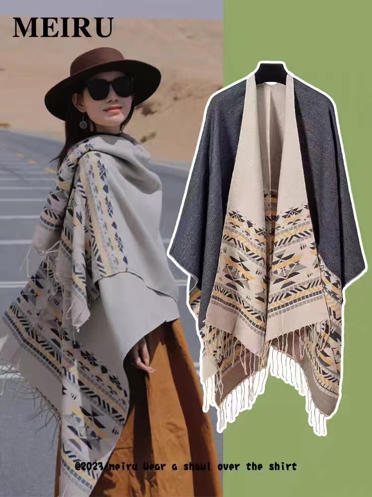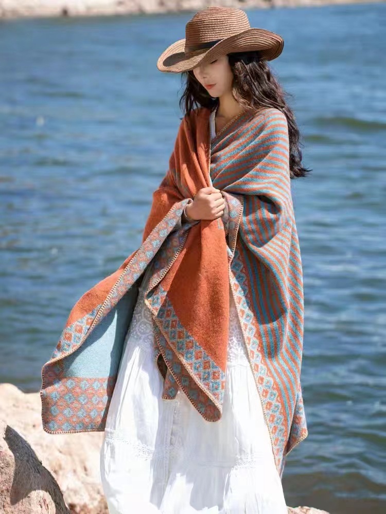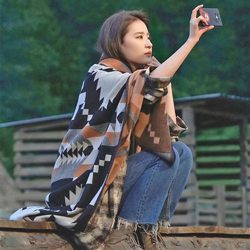 민족 스타일 따뜻한 두꺼운 보시 술 목도리 신장 티베트 여행 사진 망토 망토 이중 사용 스카프스토어 가기