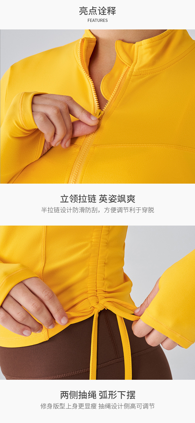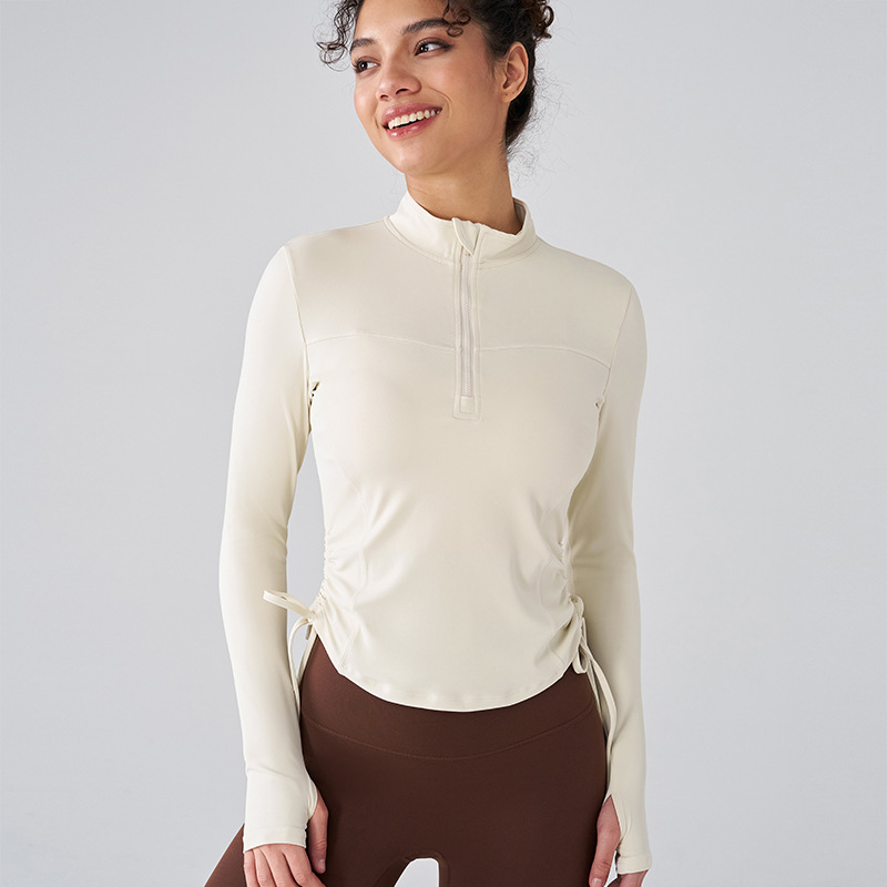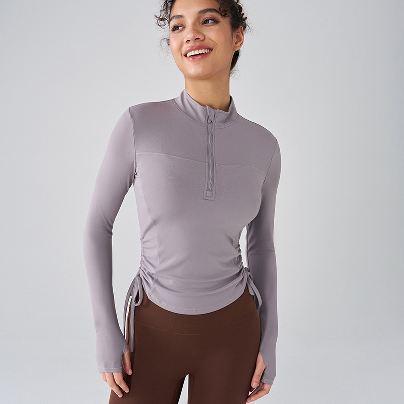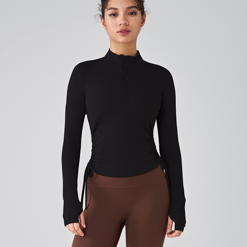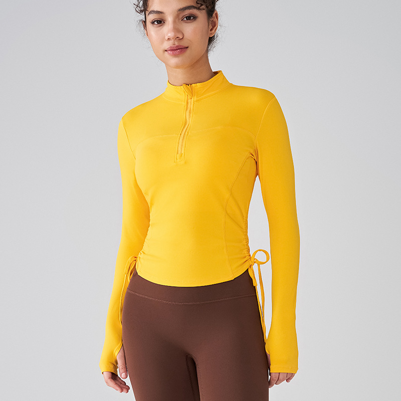 반 지퍼 드로 스트링 운동 의류 최고 여성 스탠드 칼라 슬림 슬리밍 요가 옷 긴소매 야외 달리기 스포츠 재킷