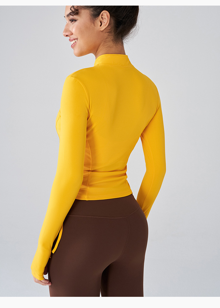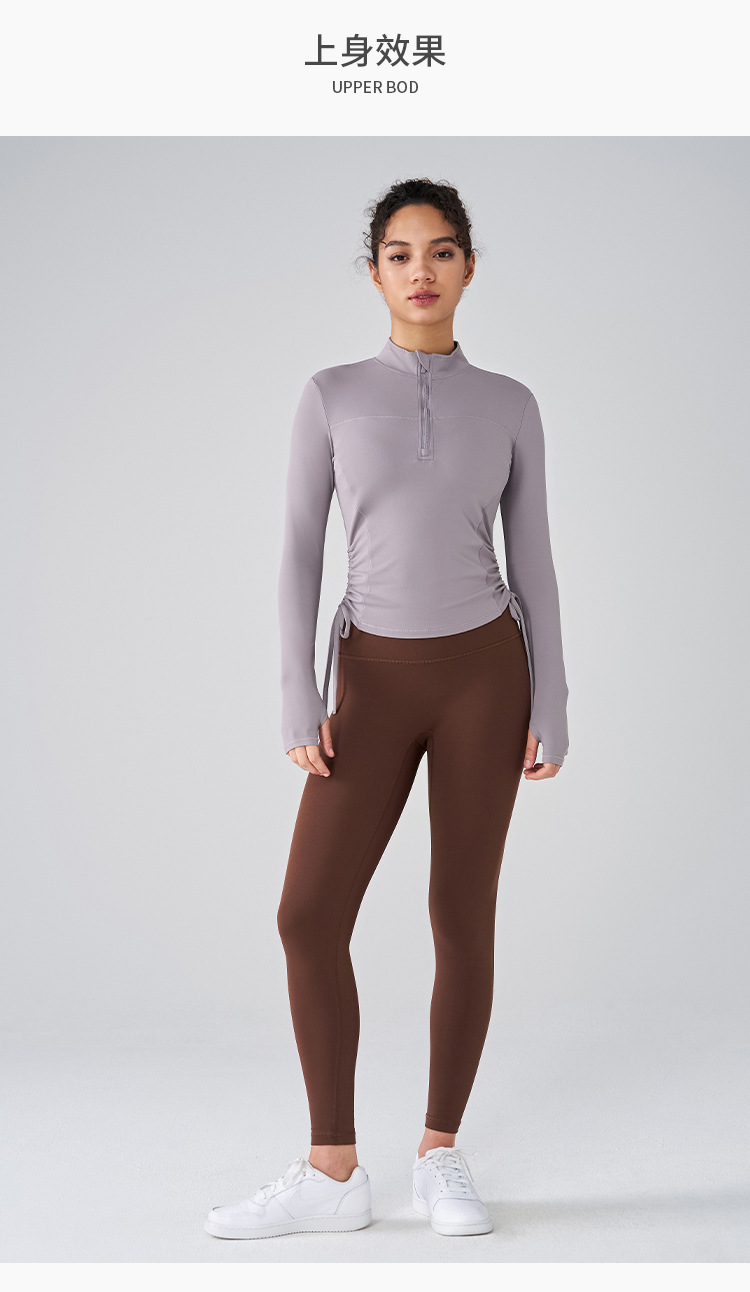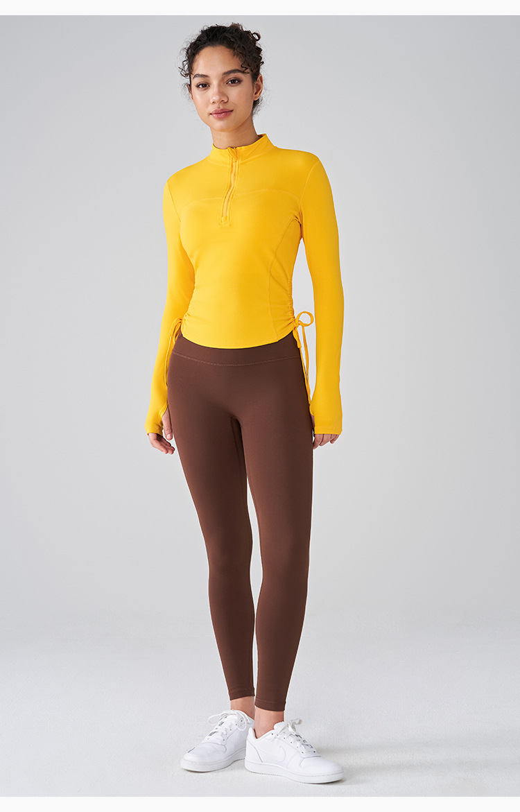 반 지퍼 드로 스트링 운동 의류 최고 여성 스탠드 칼라 슬림 슬리밍 요가 옷 긴소매 야외 달리기 스포츠 재킷