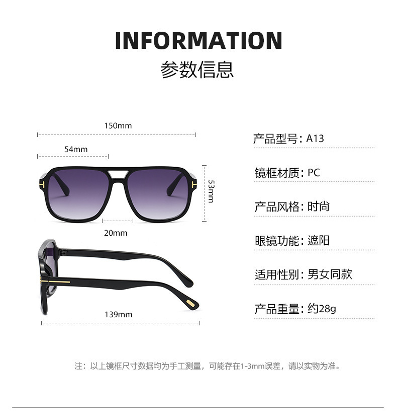 2023 새로운 더블 빔 국경 패션 선글라스 국경 간 트렌드 선글라스 레트로 T-워드 남성과 여성의 패션 선글라스