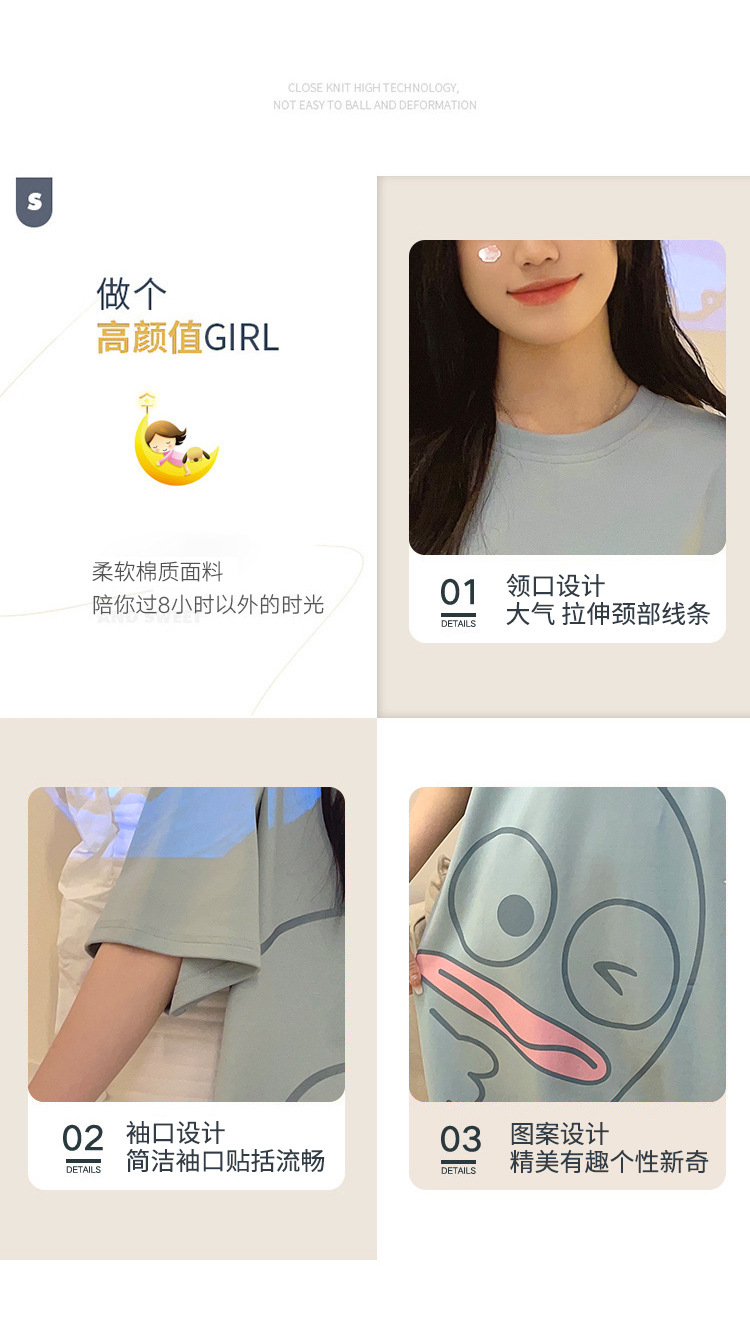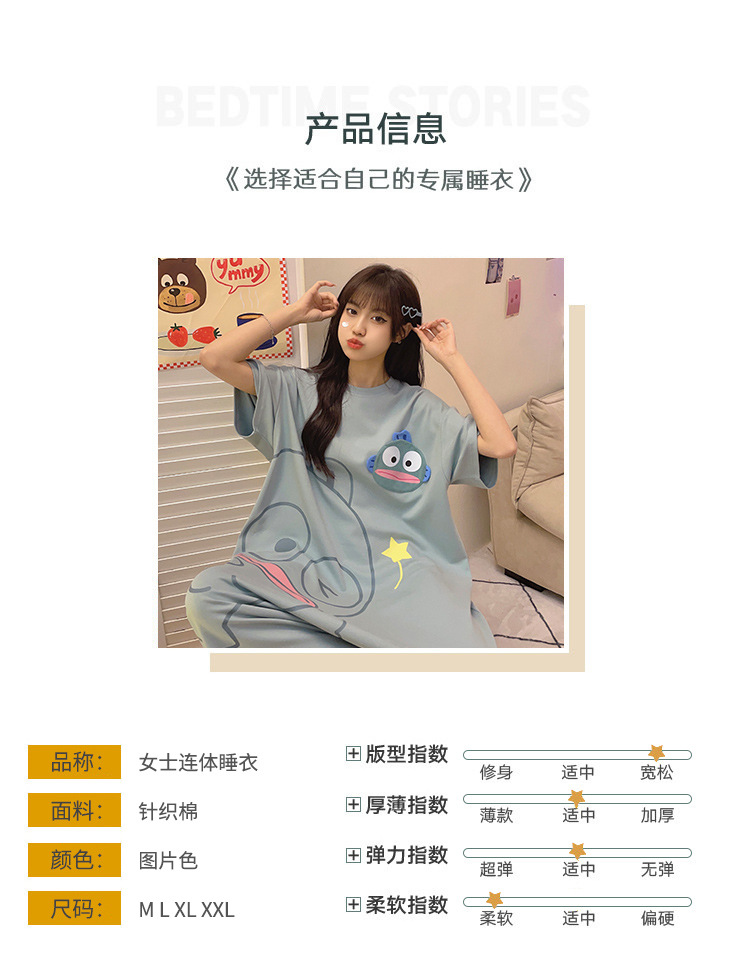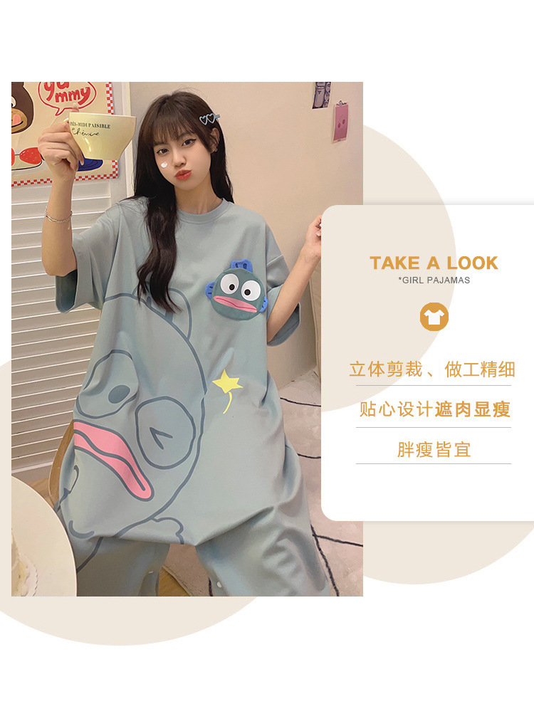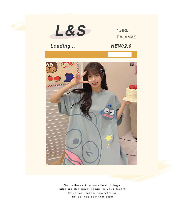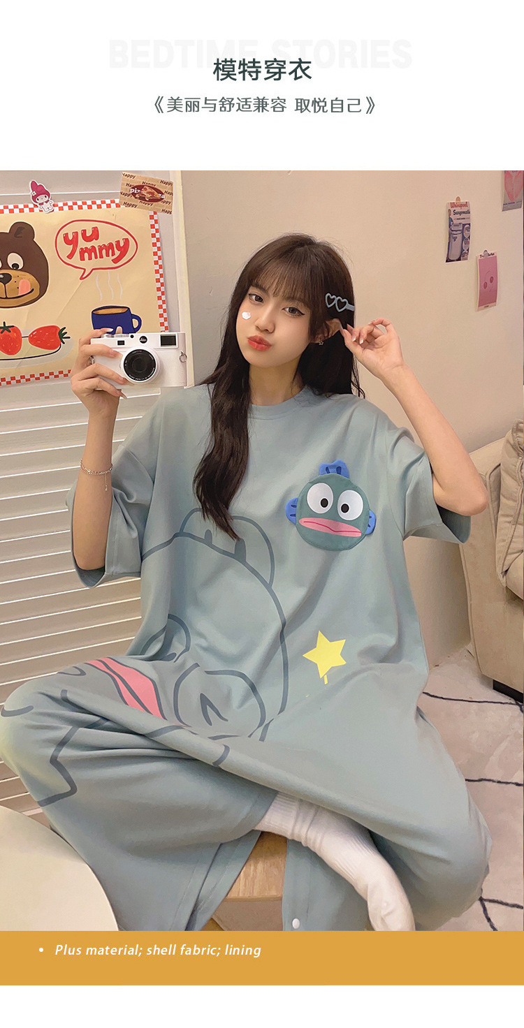 Handton 못생긴 물고기 원피스 잠옷 여성의 여름 얇은면 반팔 만화 플러스 사이즈 느슨한 큰 입 생선 홈 크로스 보더스토어 가기