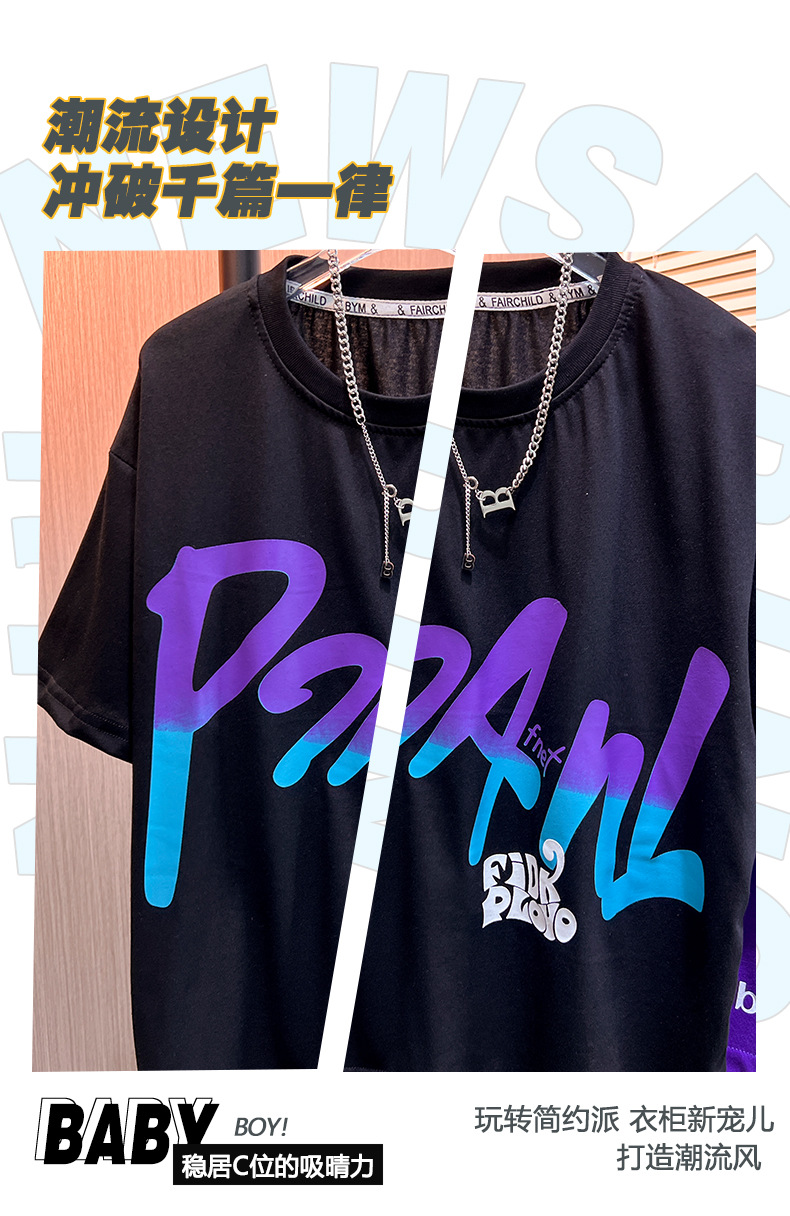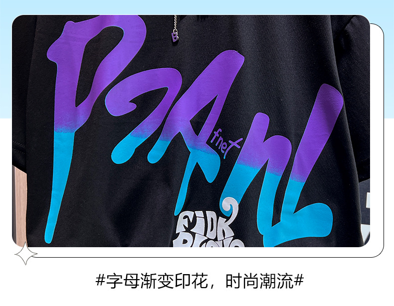 어린이 여름 새로운 2024 캐주얼 짧은 소매 세트 남성 중형 및 대형 어린이의 세련된 프린트 라운드 넥 스포츠 t 투피스 세트스토어 가기