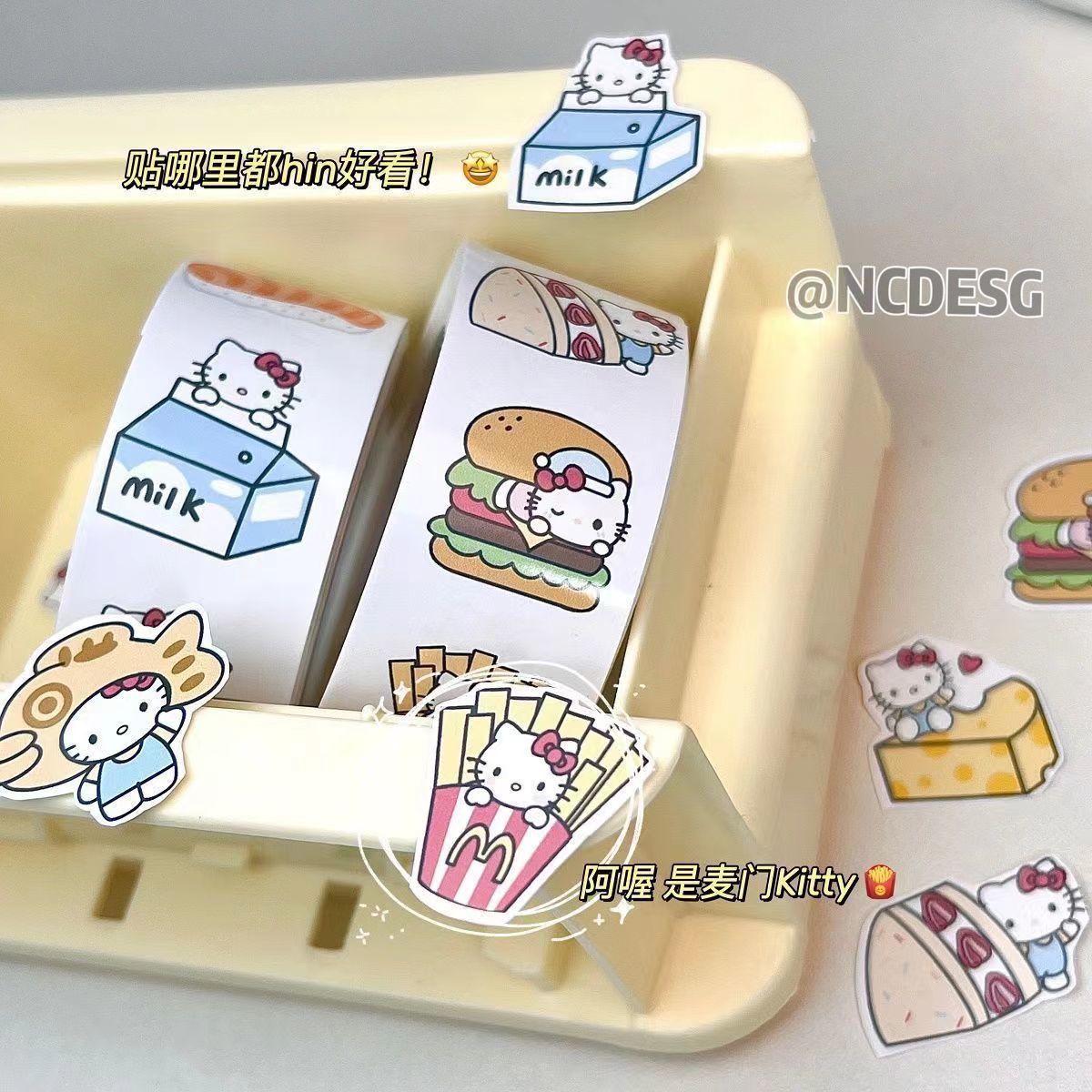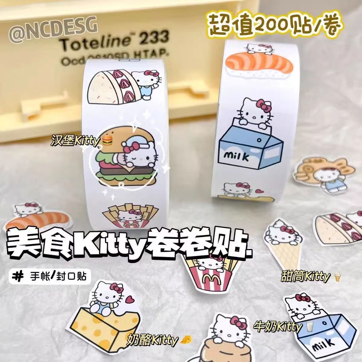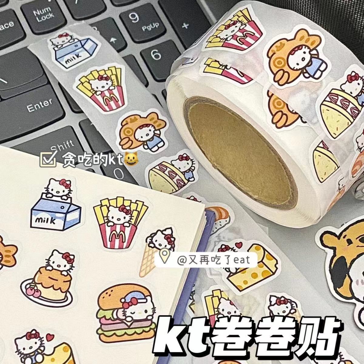 만화 귀여운 음식 키티 롤 스티커 주변 스티커 높은 모양의 산리오 스티커 방수 DIY 전화 케이스스토어 가기